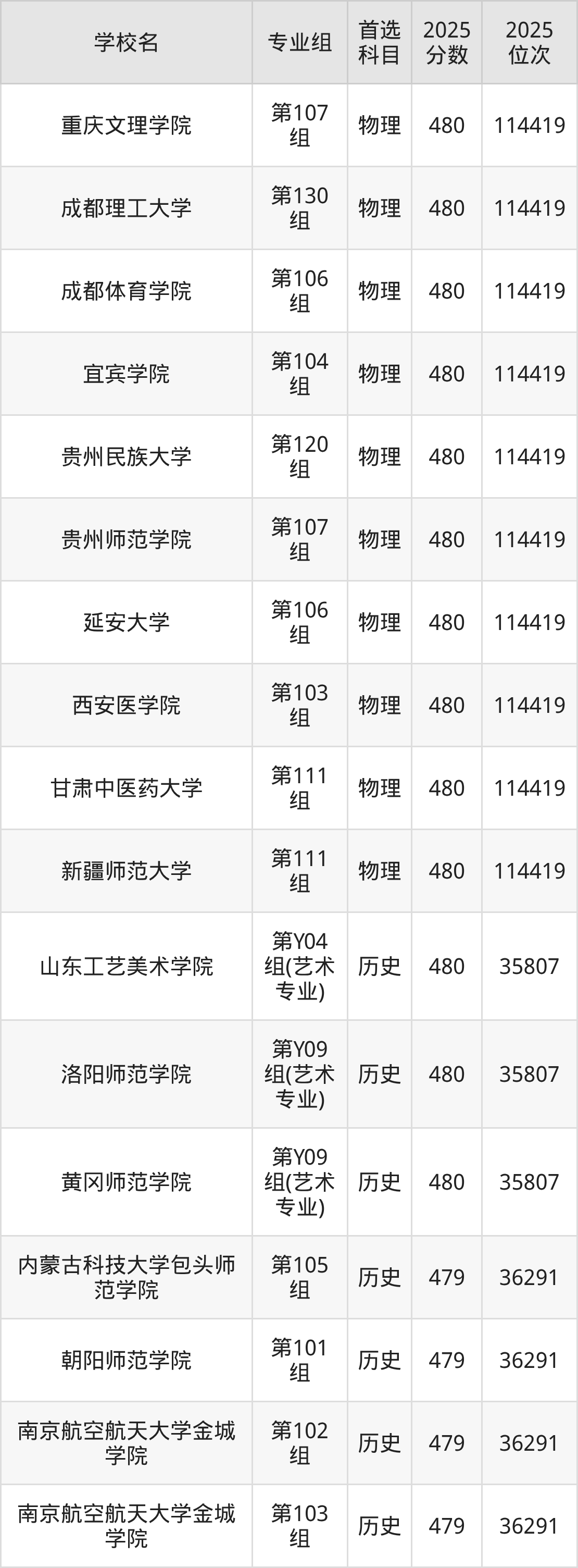 下面老师将以上文整理的其中两个省份为例,为大家具体展示481分左右能上的本科大学名单。