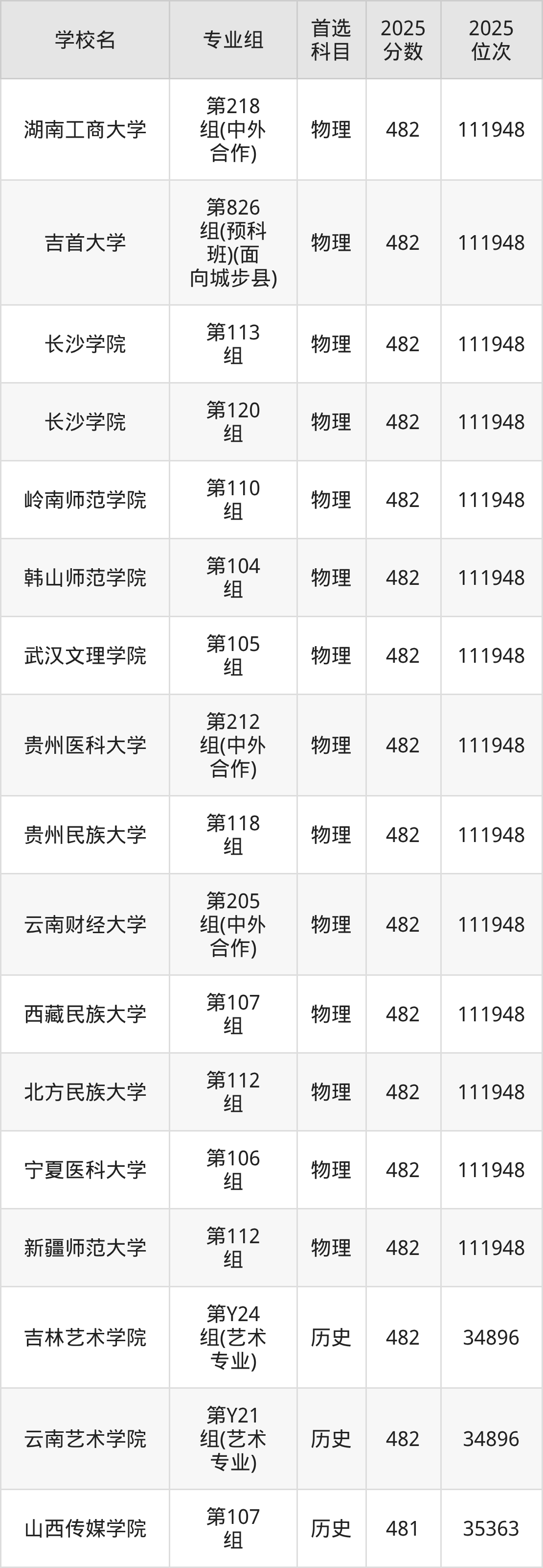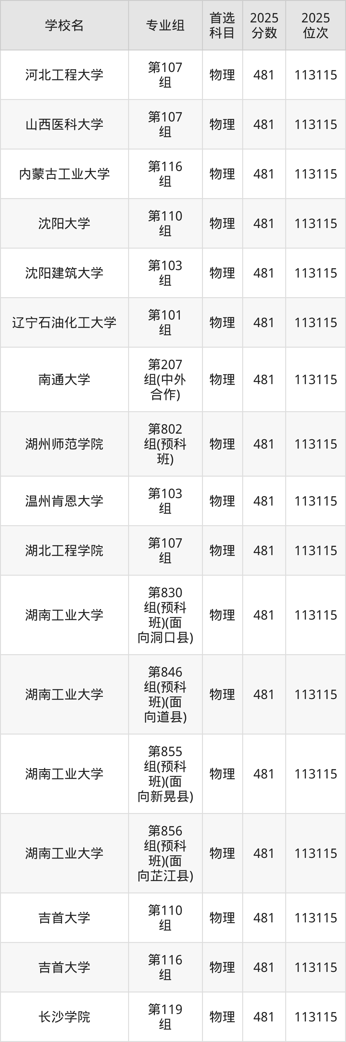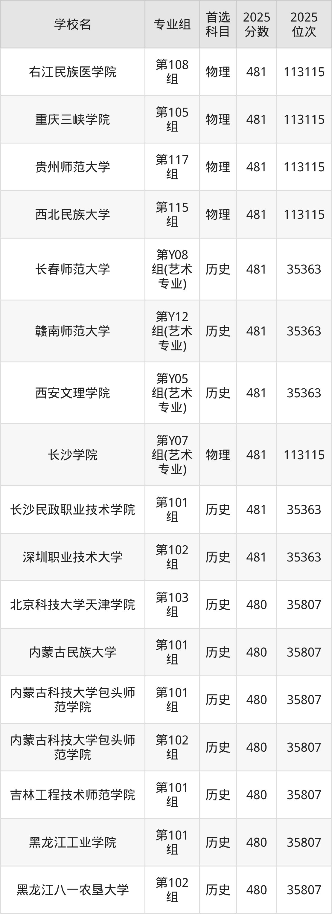 湖南高考历史类481分对应的位次排名是35363名,物理类481分对应的位次排名是113115名,因此建议2026年位次排在这附近的同学考虑这些大学。
