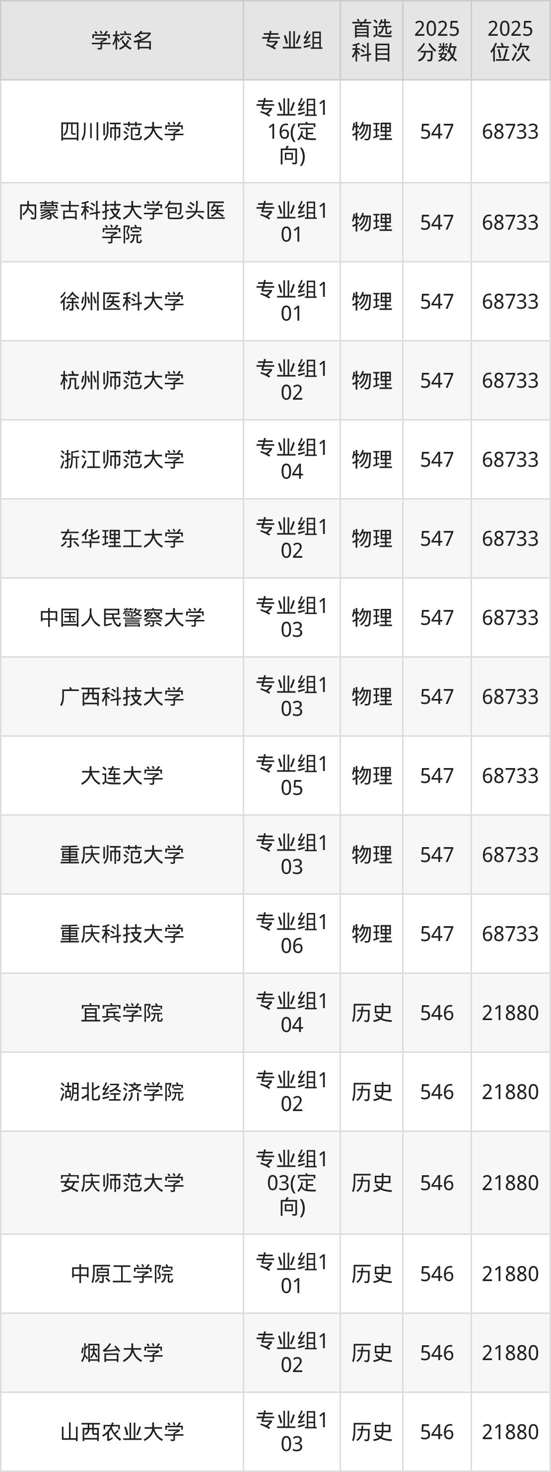 2025年在四川高考历史类录取分数线是545分的大学有防灾科技学院、河南工程学院、西南民族大学、上海应用技术大学、江苏第二师范学院、重庆文理学院、绵阳师范学院、浙江师范大学、江西中医药大学、贵州师范大学等。物理类录取分数线是545分的大学有贵州师范大学、安庆师范大学、海南师范大学、右江民族医学院、新疆大学、四川师范大学、成都体育学院、河南大学、华北理工大学、河南财经政法大学等。