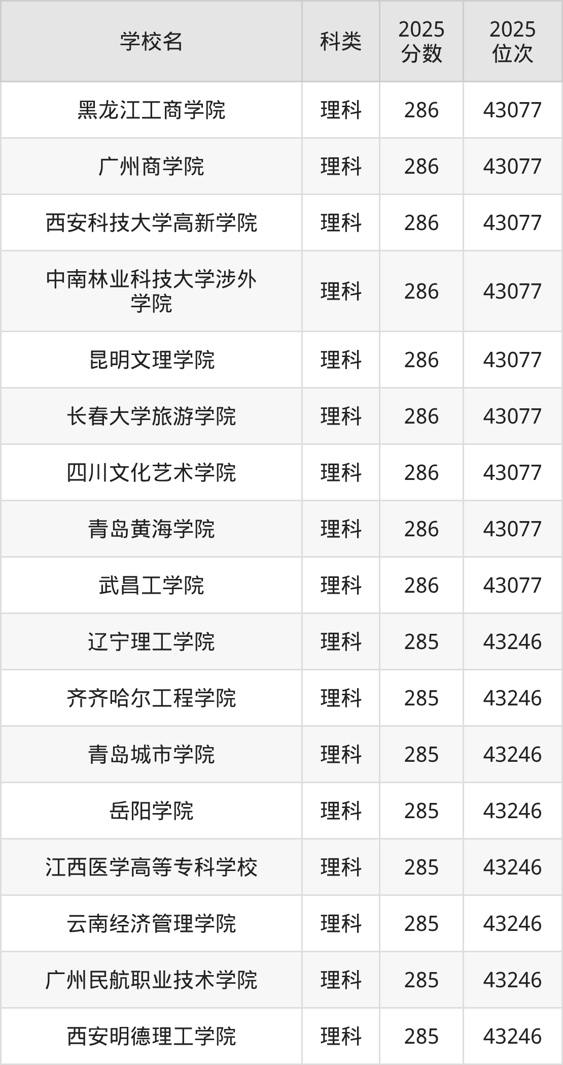 新疆理科286分对应的位次排名是43077名,因此建议2026年位次排在这附近的考生考虑这些大学。
