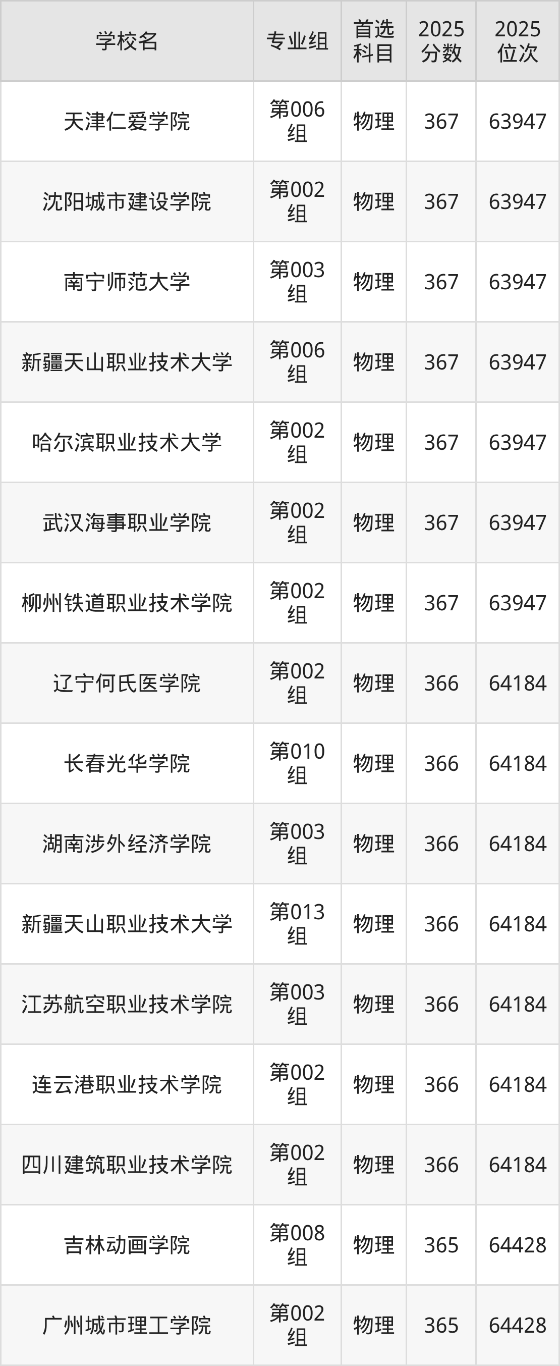 365分可以冲一冲的大学:天津仁爱学院367分、沈阳城市建设学院367分、南宁师范大学367分、新疆天山职业技术大学367分等;