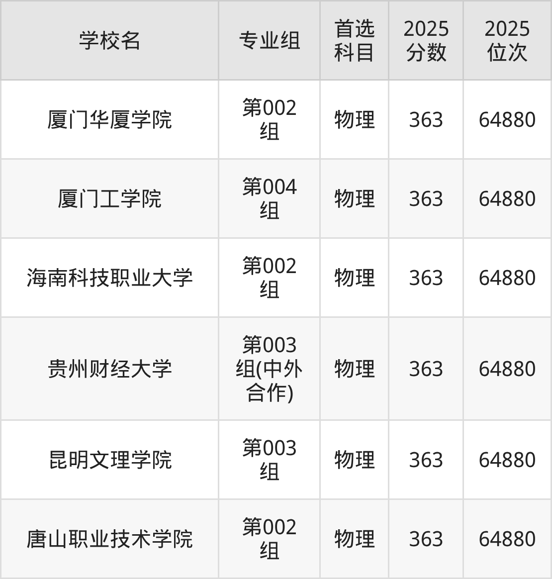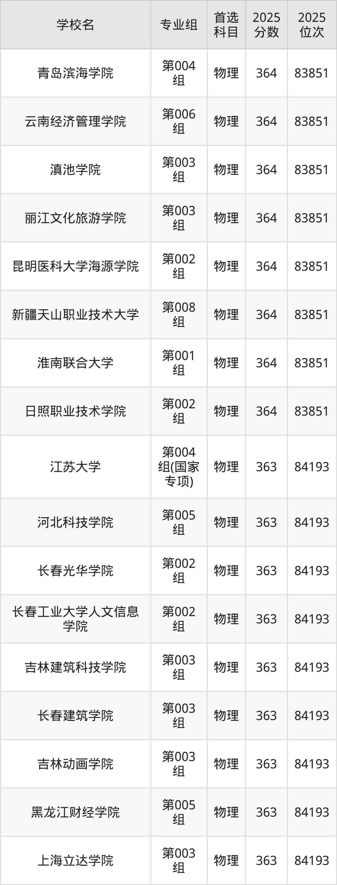 吉林物理类365分对应的位次排名是64428名,因此建议2026年位次排在这附近的考生考虑这些大学。