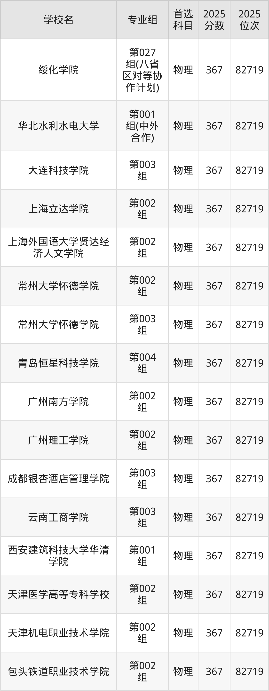 365分可以冲一冲的大学:绥化学院367分、华北水利水电大学367分、大连科技学院367分、上海立达学院367分等;