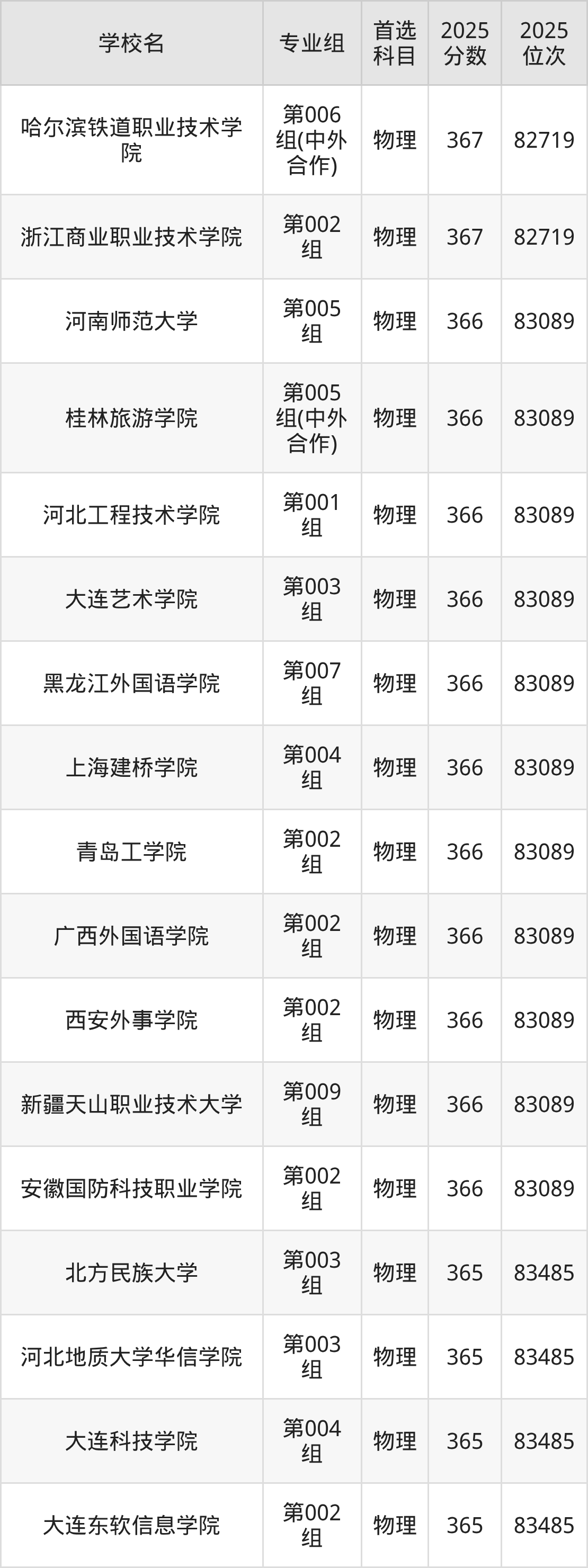 黑龙江物理类365分对应的位次排名是83485名,因此建议2026年位次排在这附近的考生考虑这些大学。