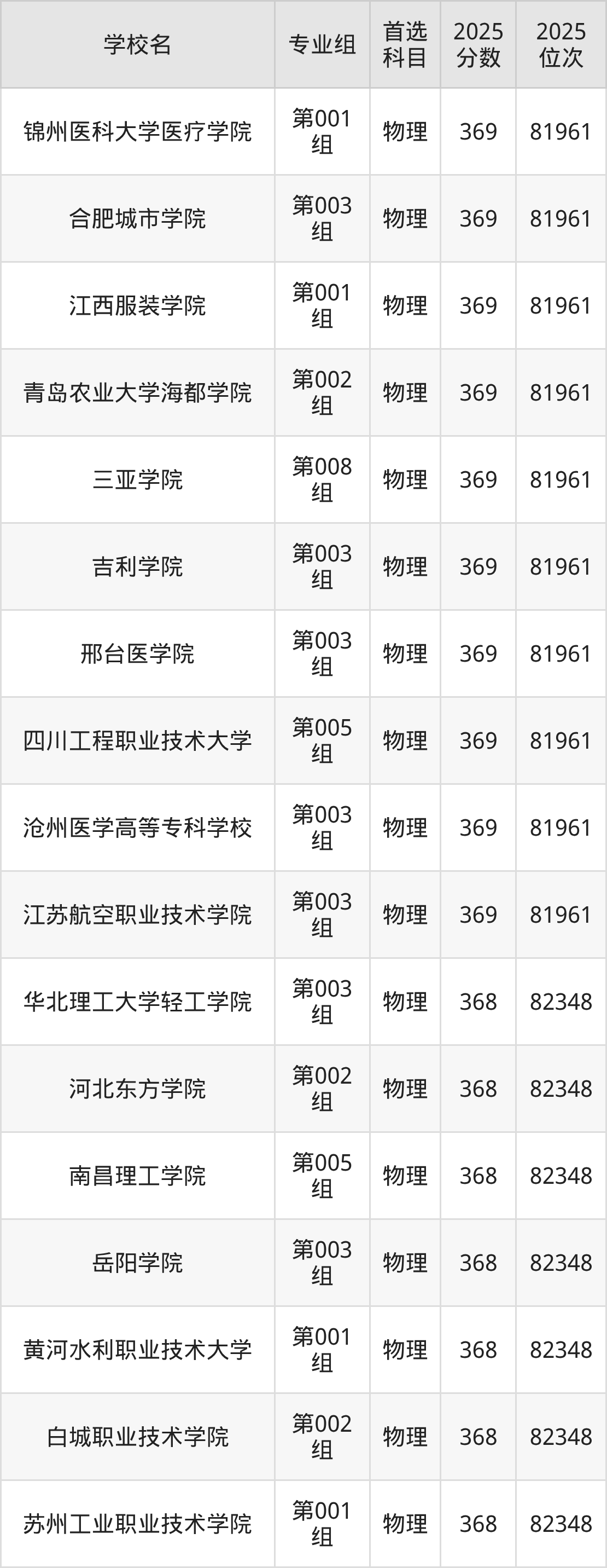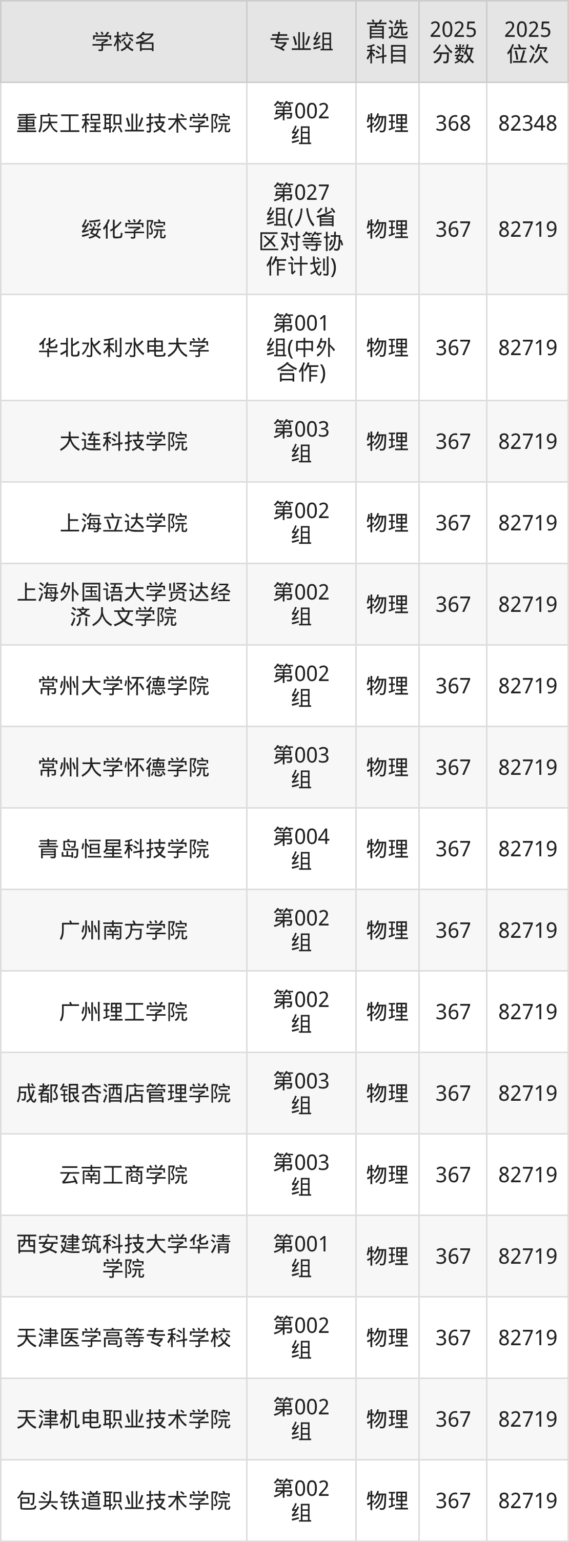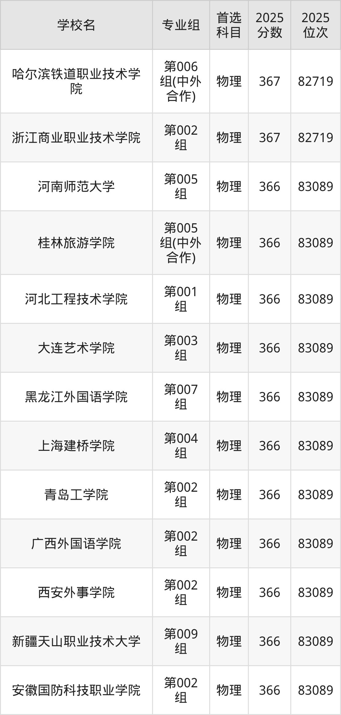 黑龙江物理类368分对应的位次排名是82348名,因此建议2026年位次排在这附近的考生考虑这些大学。