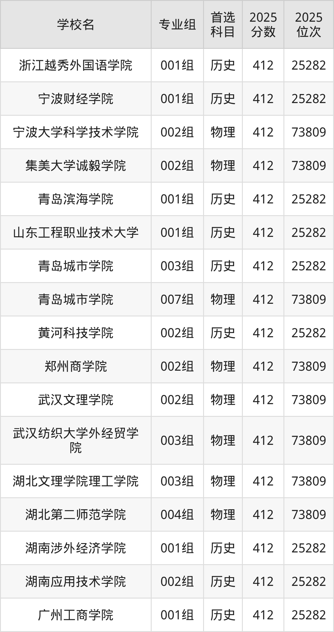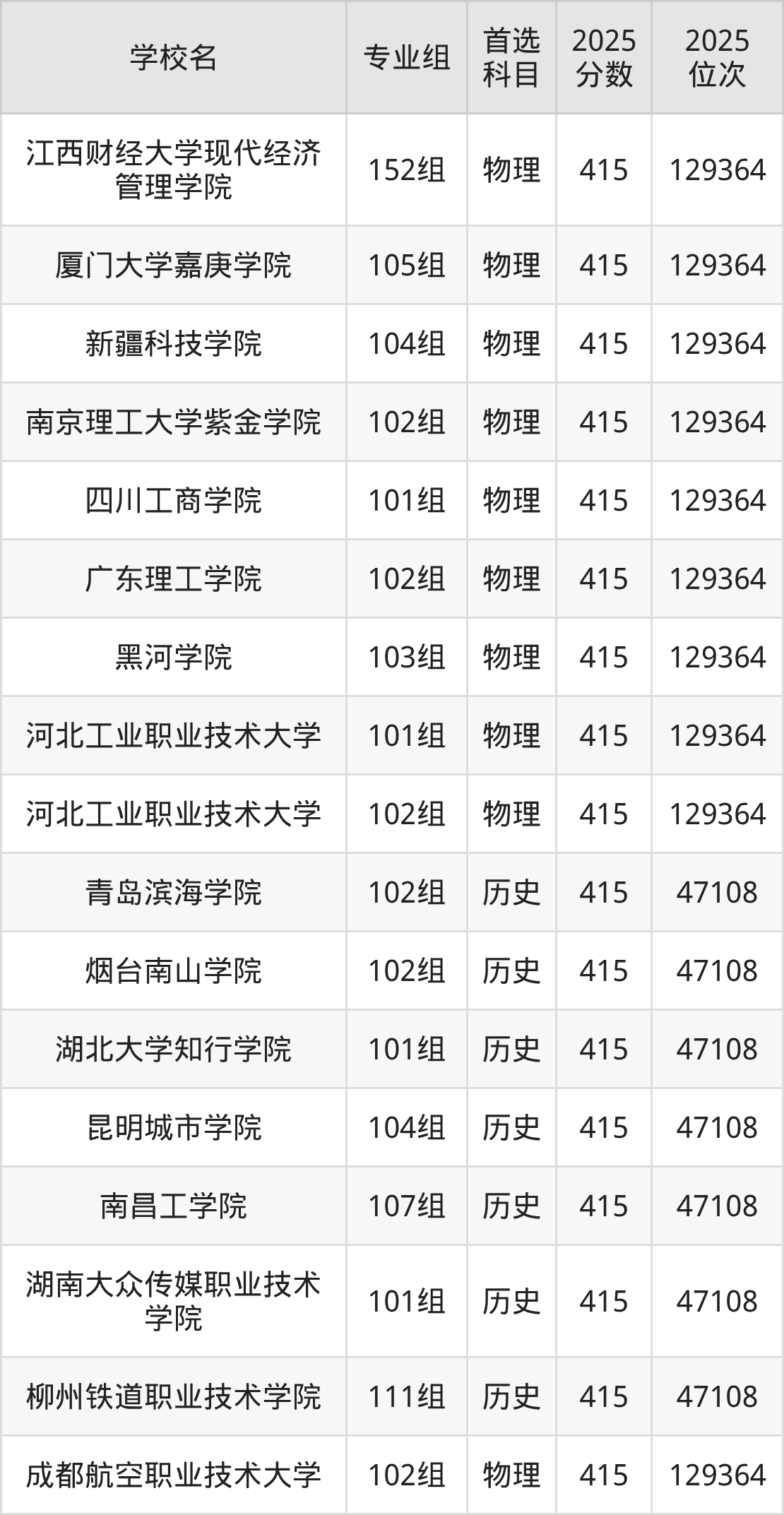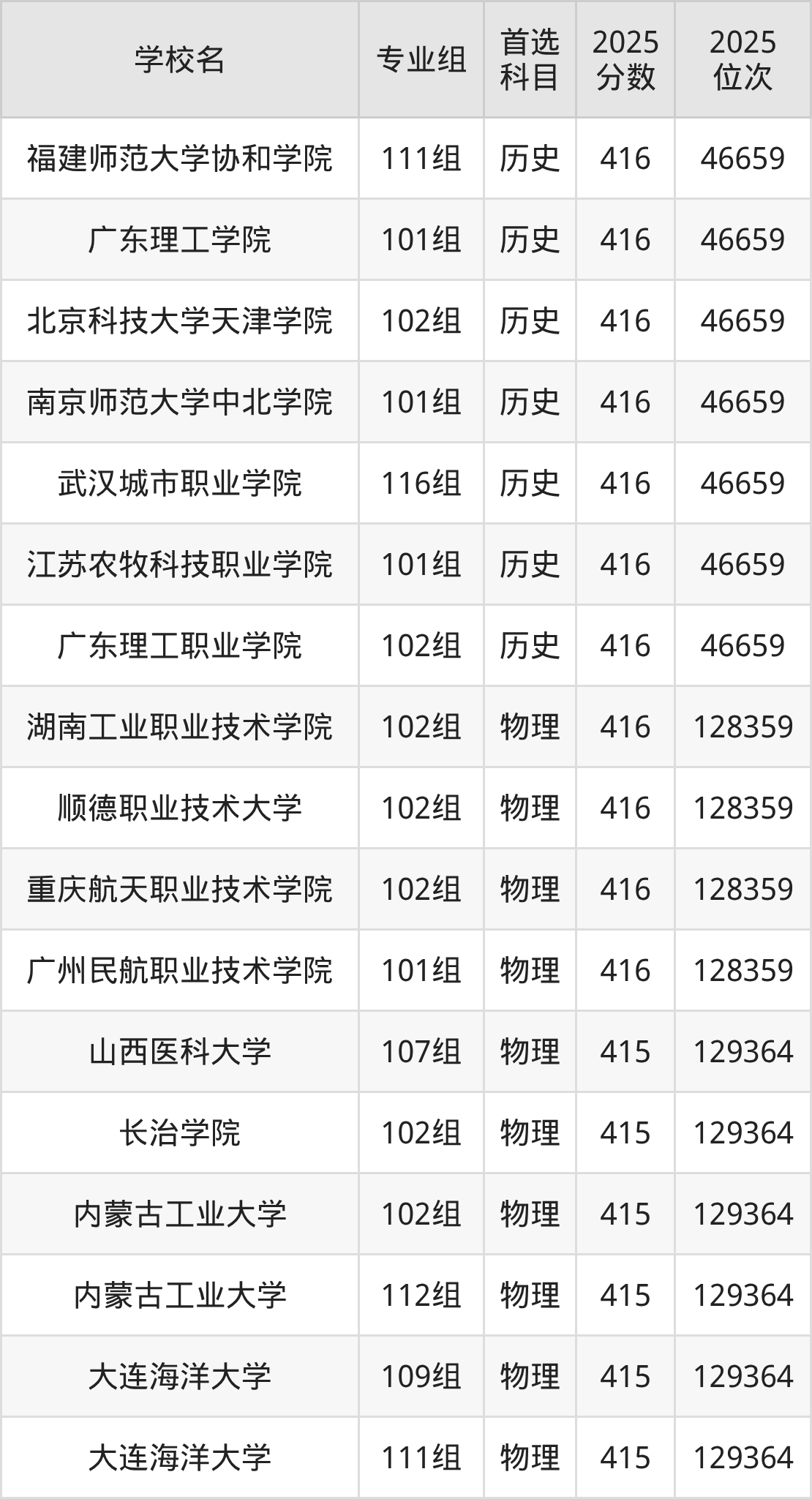 下面老师将以上文整理的其中两个省份为例,为大家具体展示414分左右能上的本科大学名单。