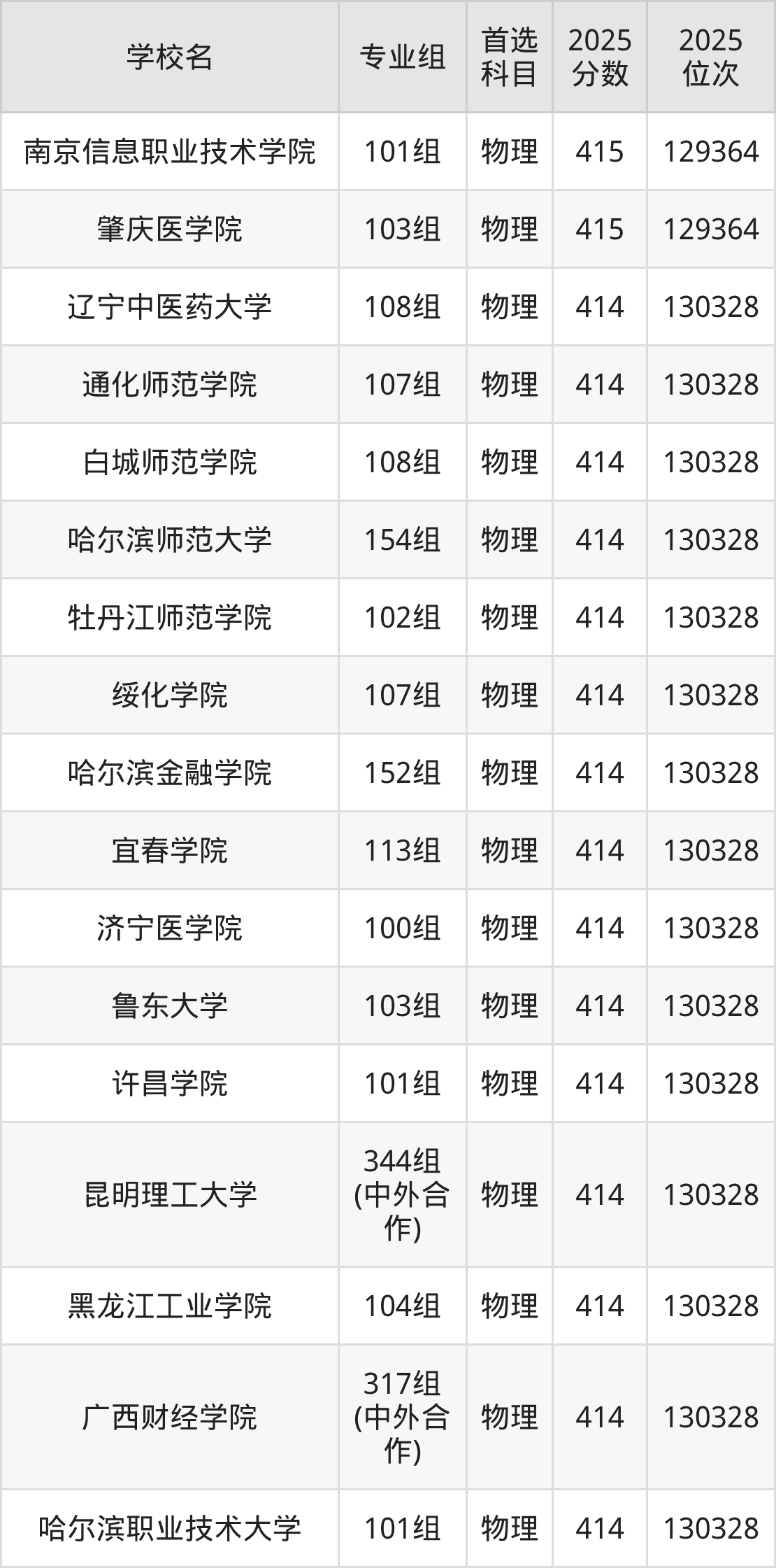 2026年高考414分可以报考的大学有辽宁中医药大学、通化师范学院、白城师范学院、哈尔滨师范大学、牡丹江师范学院等。414分能上的大学名单因省而异,下面为大家展示,2026届考生请查阅。
