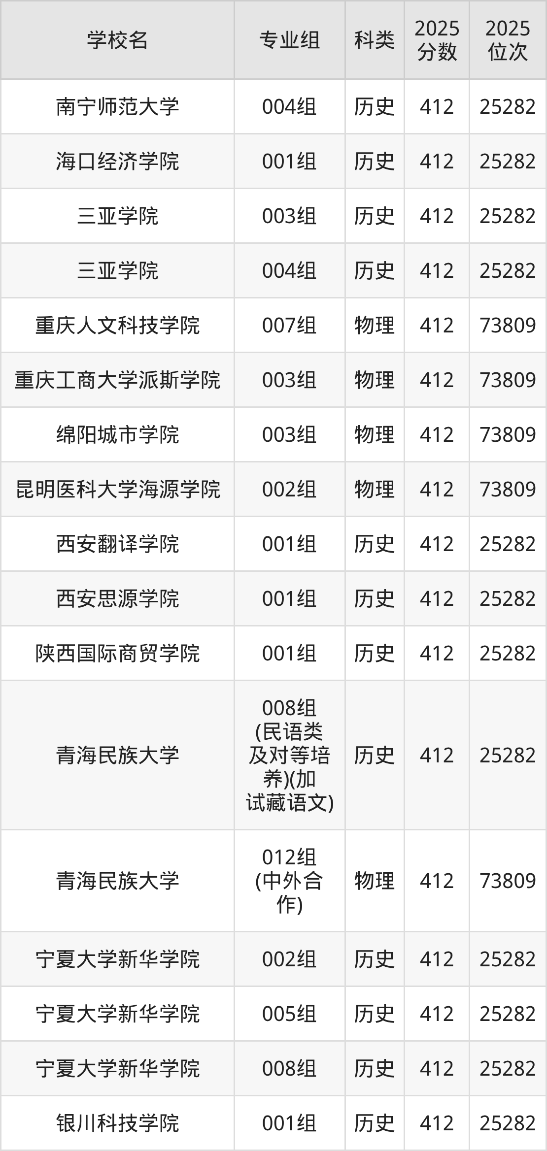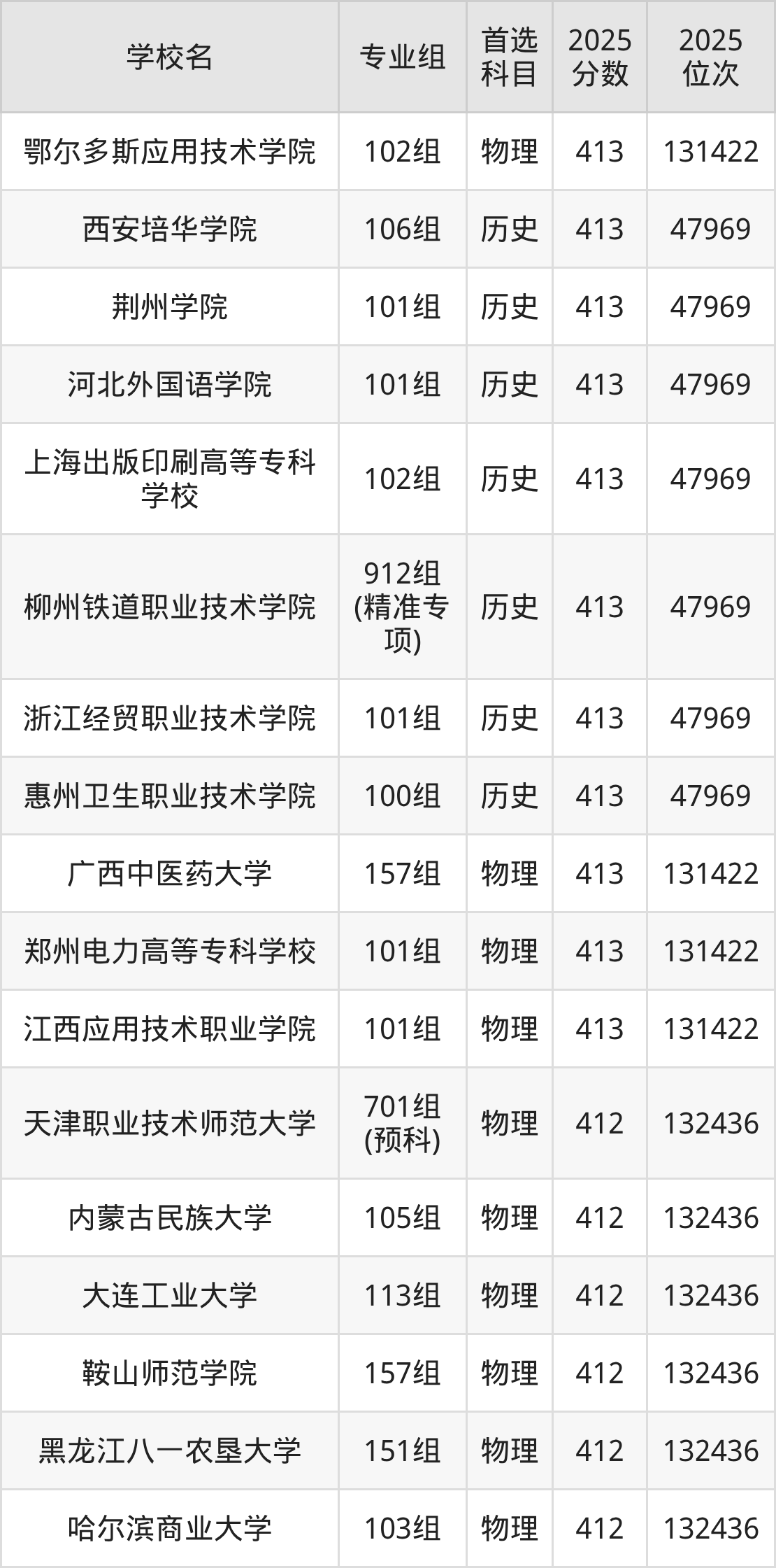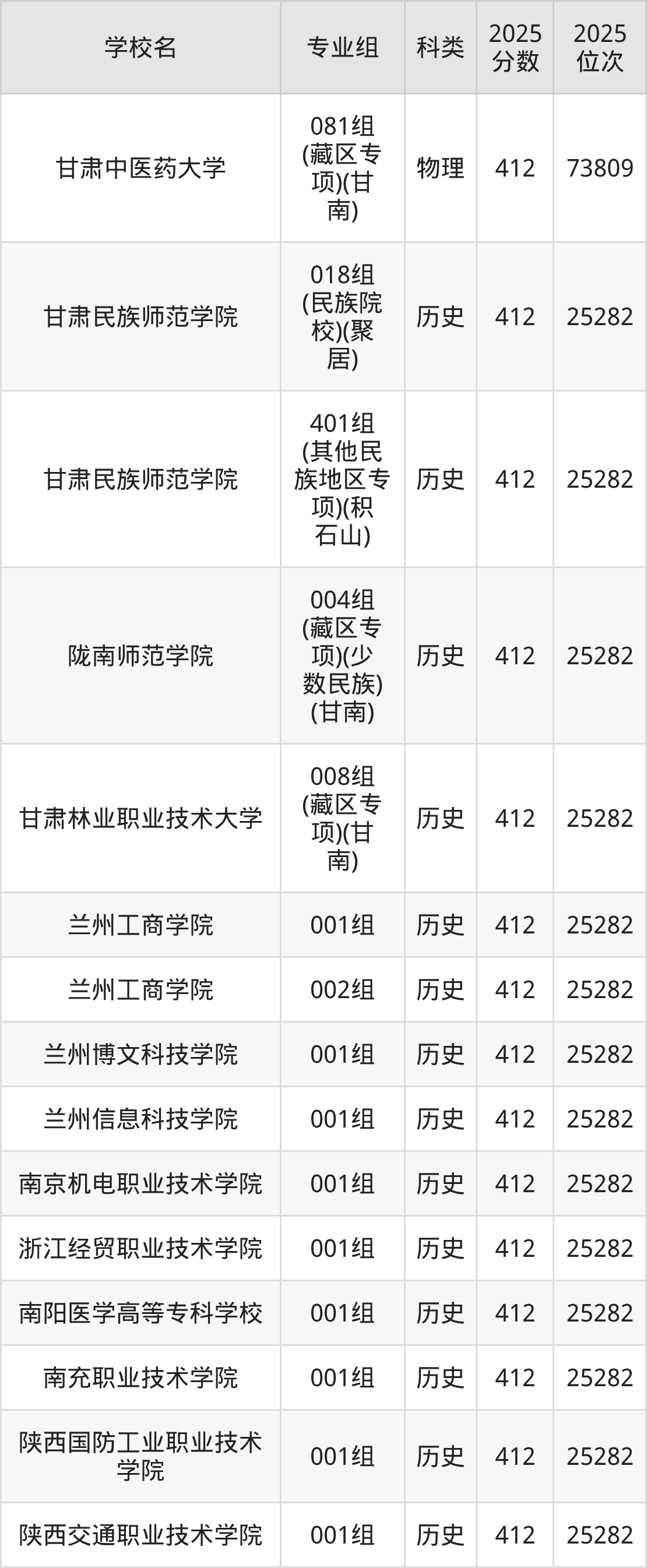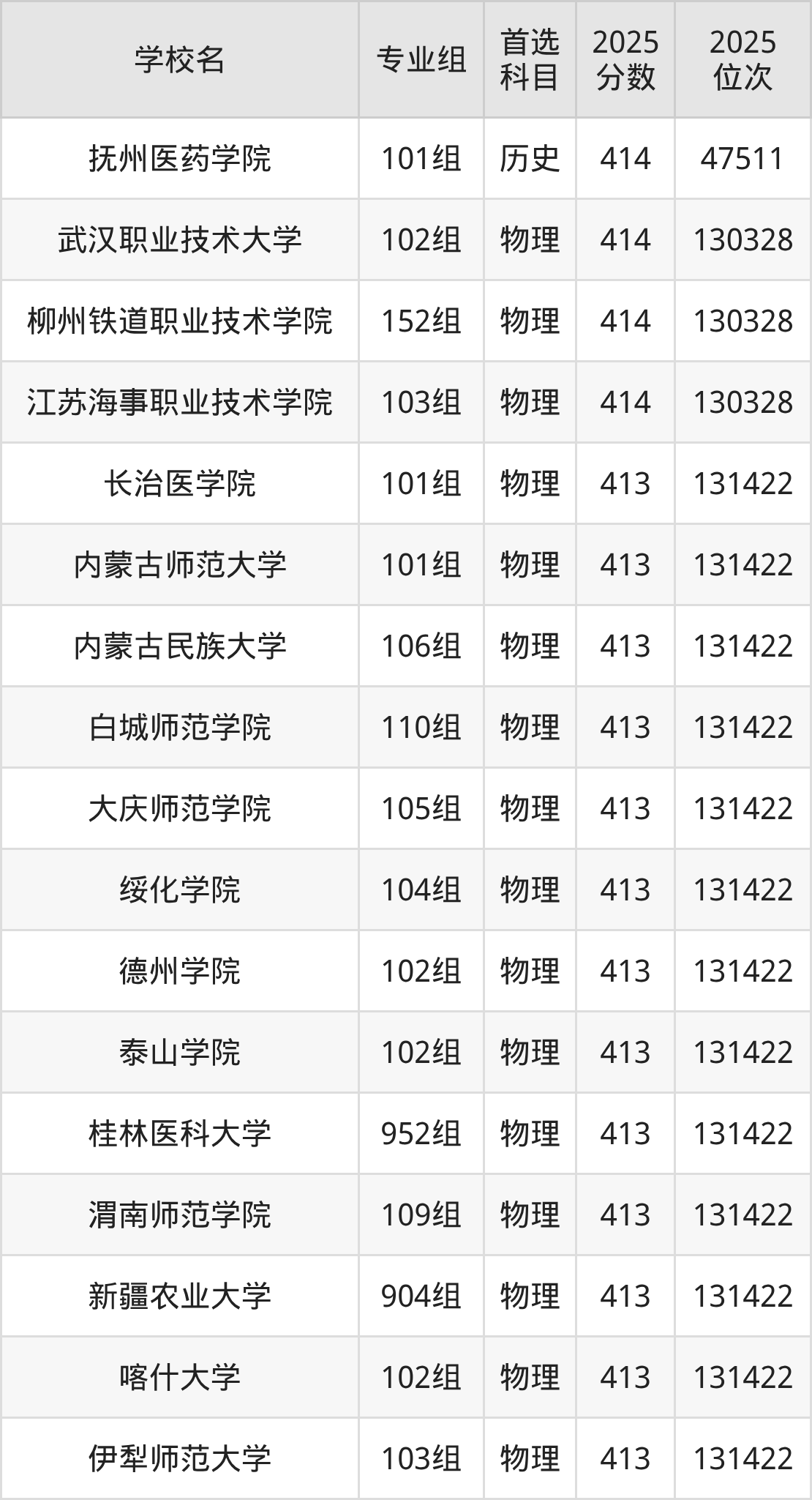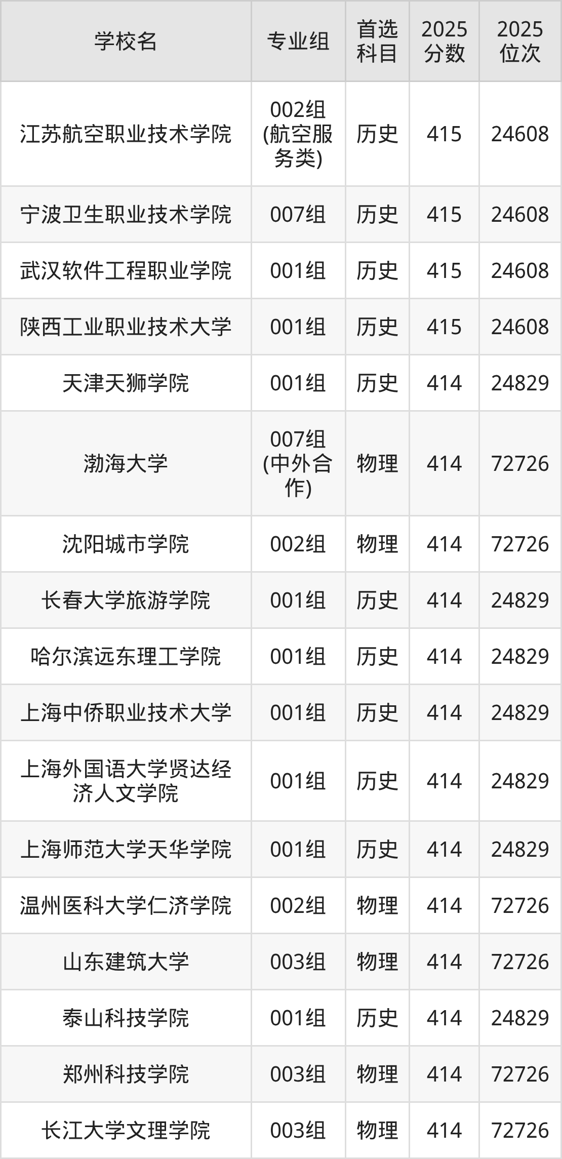 甘肃高考历史类414分对应的位次排名是24829名,物理类414分对应的位次排名是72726名,因此建议2026年位次排在这附近的同学考虑这些大学。