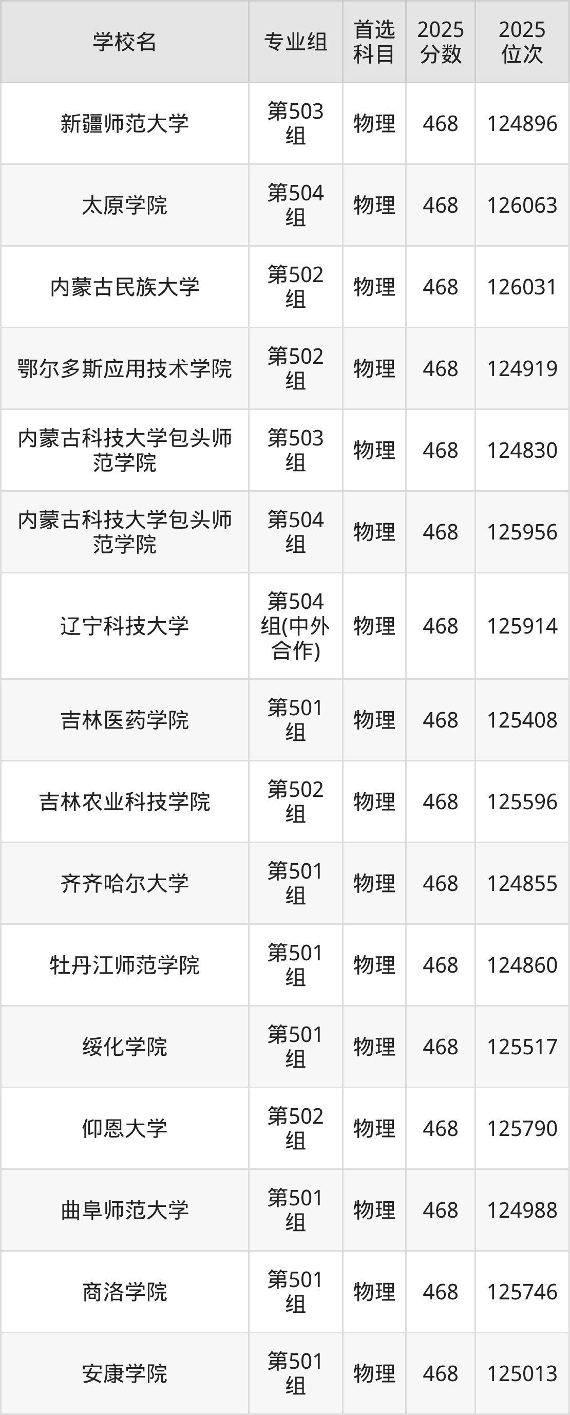 466分可以冲一冲的大学:新疆师范大学468分、太原学院468分、内蒙古民族大学468分、鄂尔多斯应用技术学院468分等;