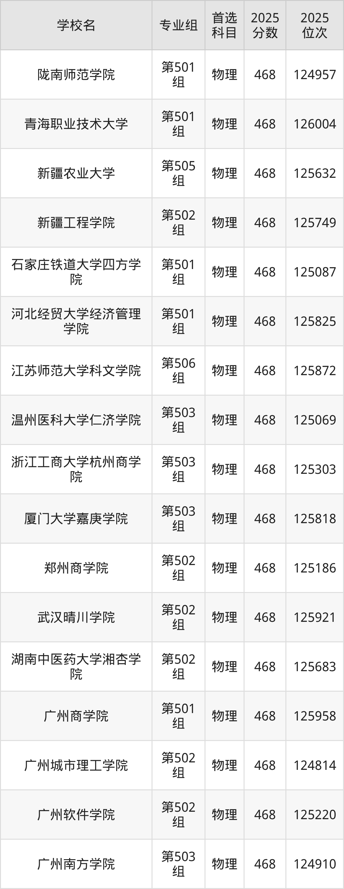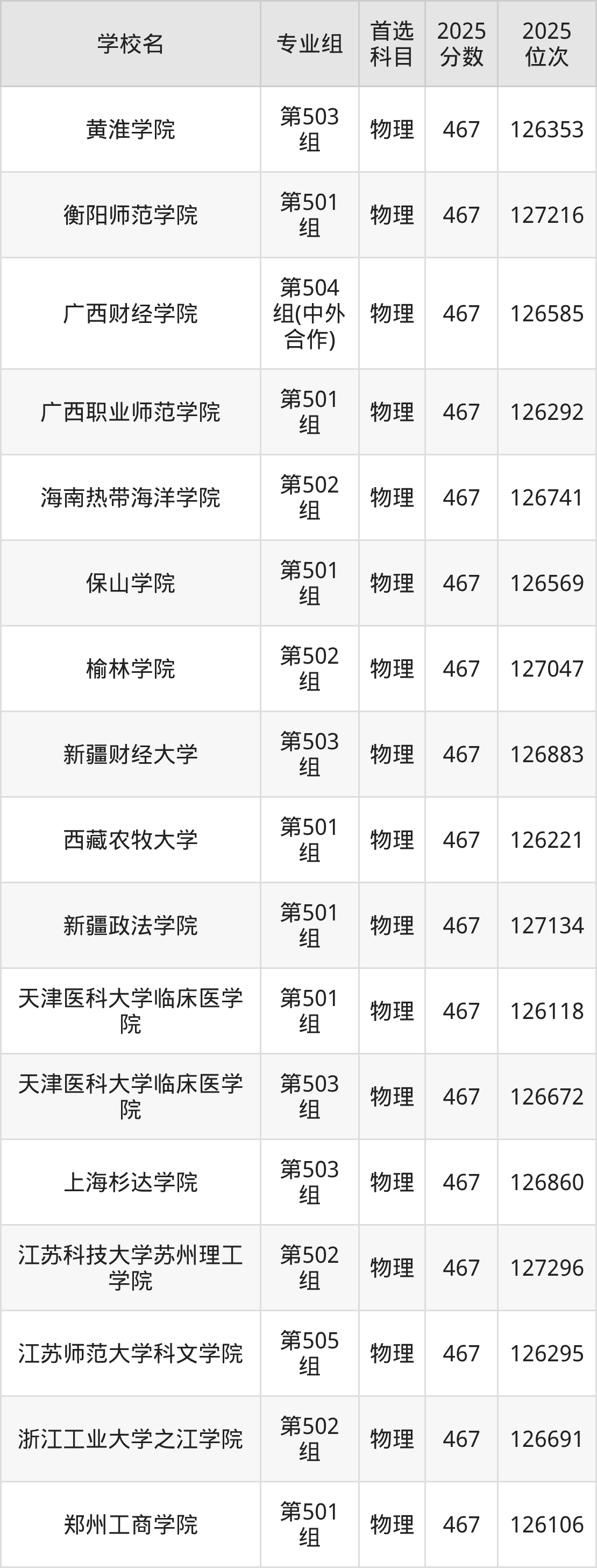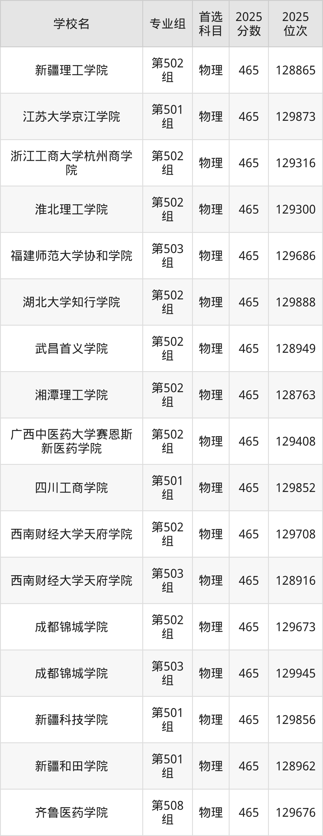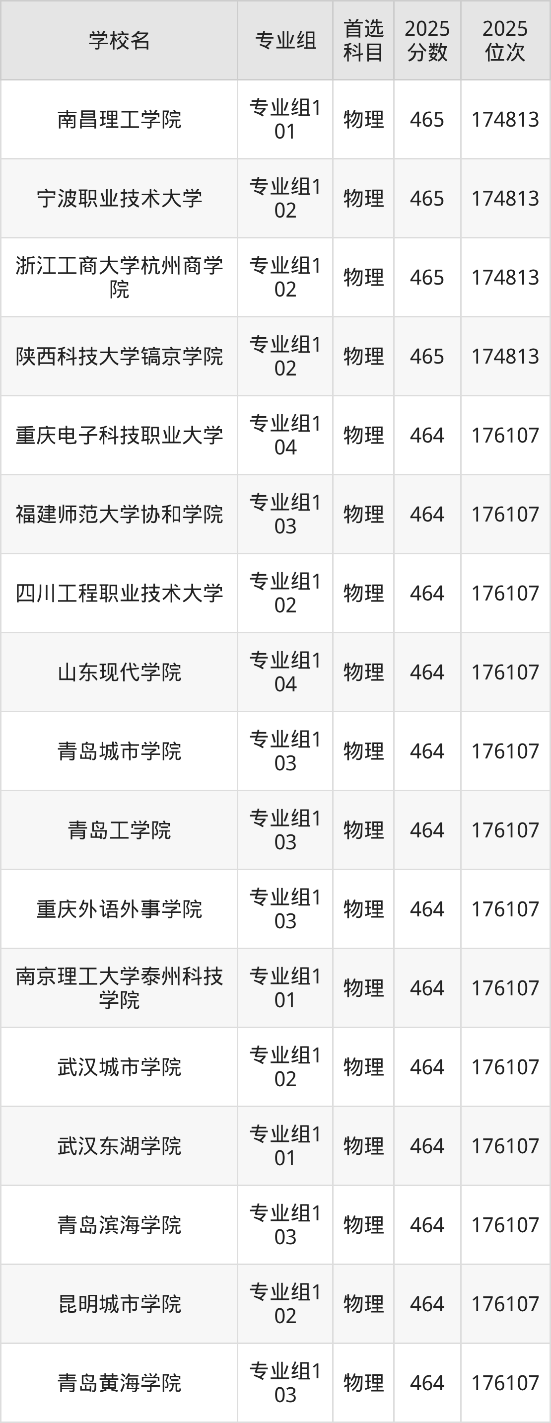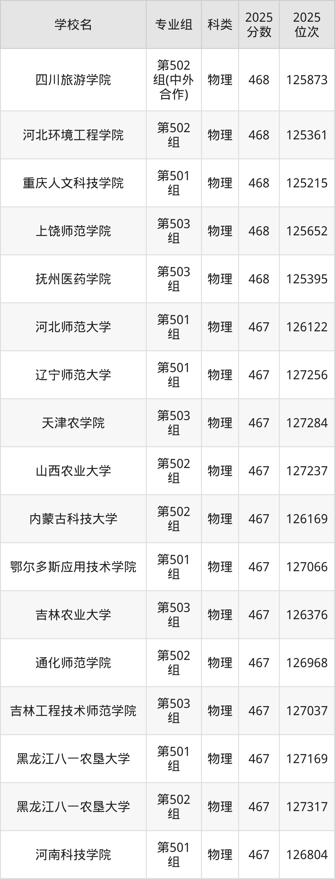 四川物理类466分对应的位次排名是173494名,因此建议2026年位次排在这附近的考生考虑这些大学。