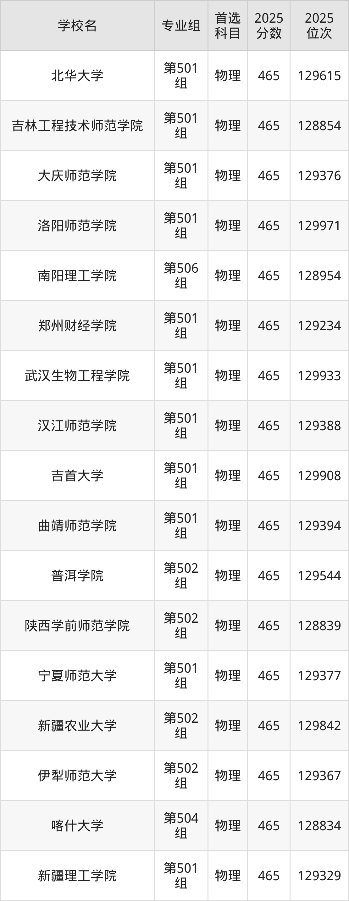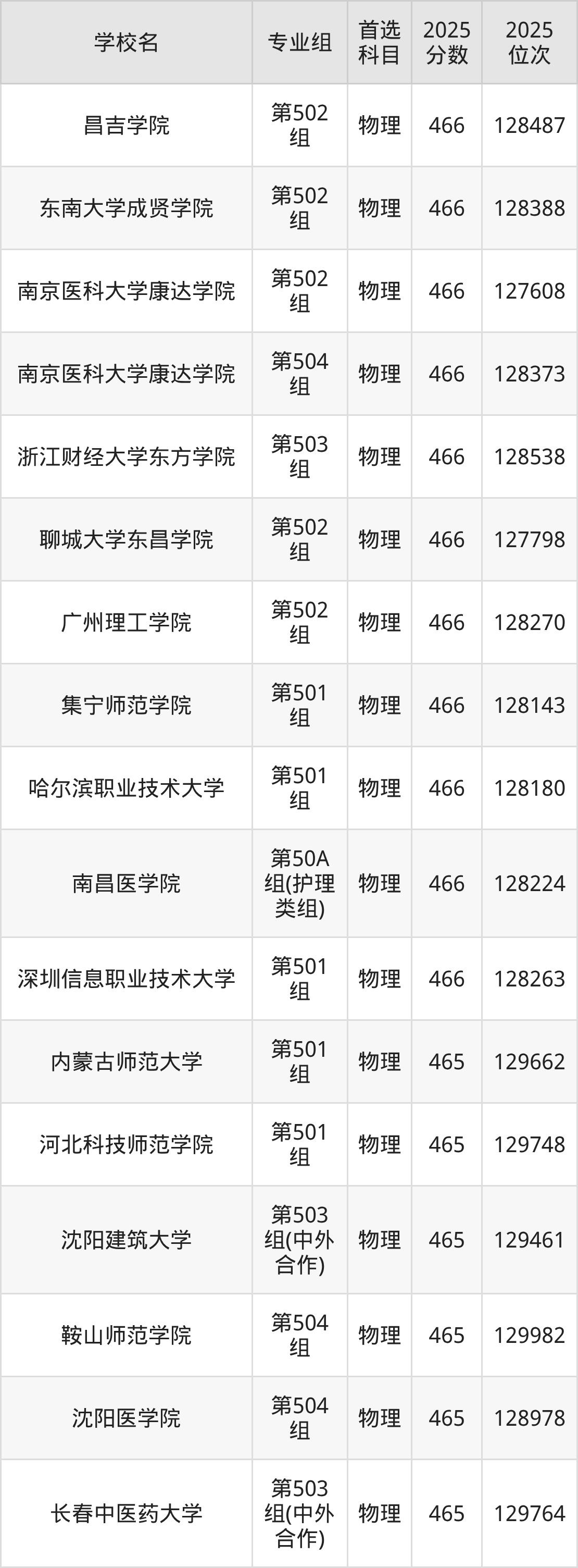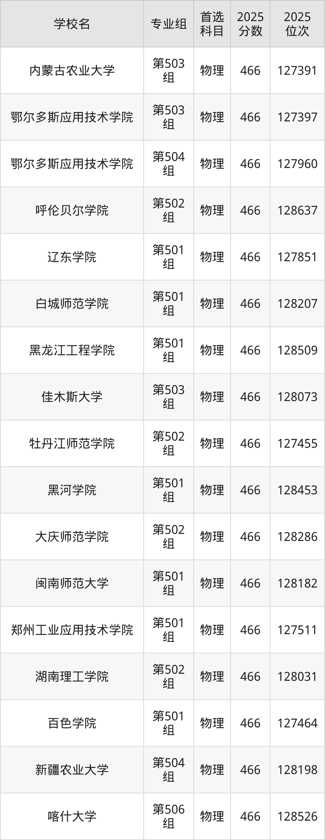江西物理类466分对应的位次排名是127391名-128637名,因此建议2026年位次排在这附近的考生考虑这些大学。