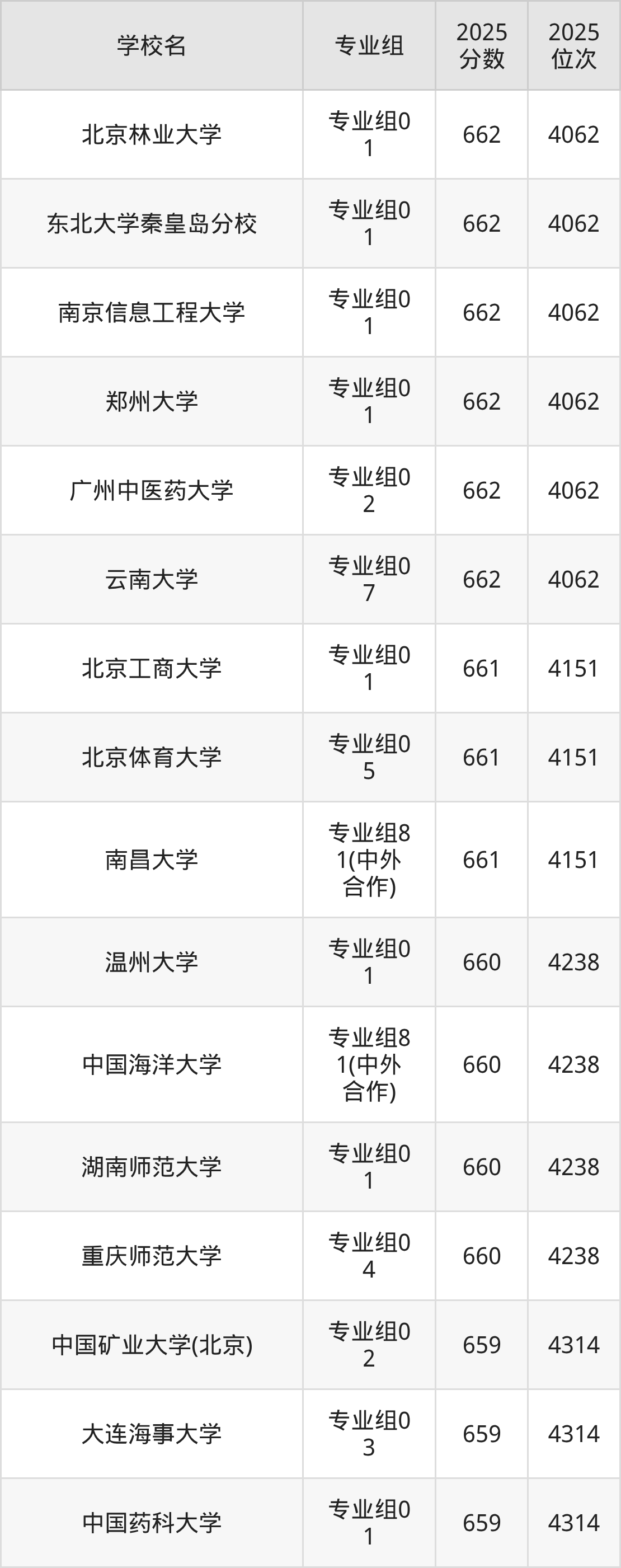 660分可以冲一冲的大学:北京林业大学662分、东北大学秦皇岛分校662分、南京信息工程大学662分、郑州大学662分等;