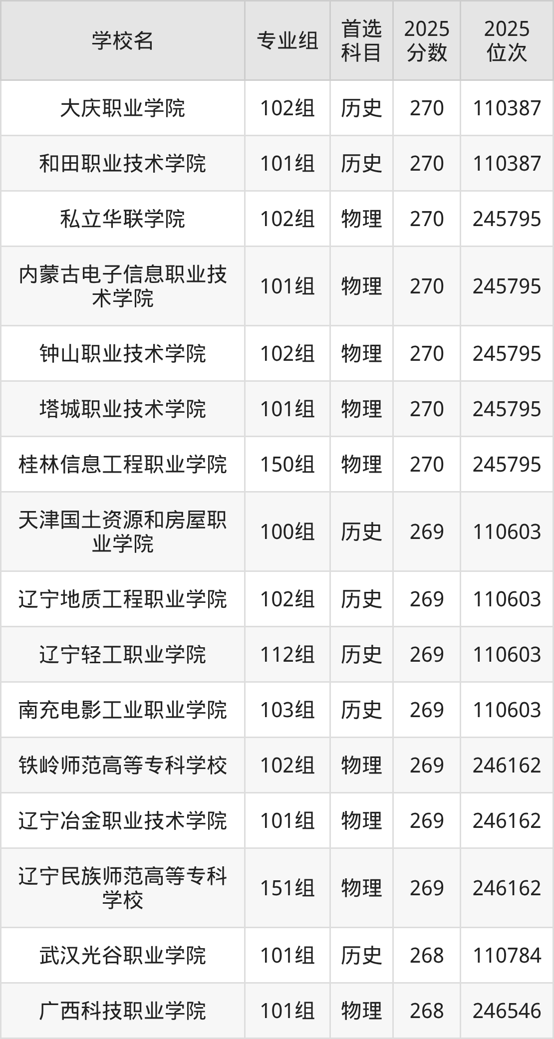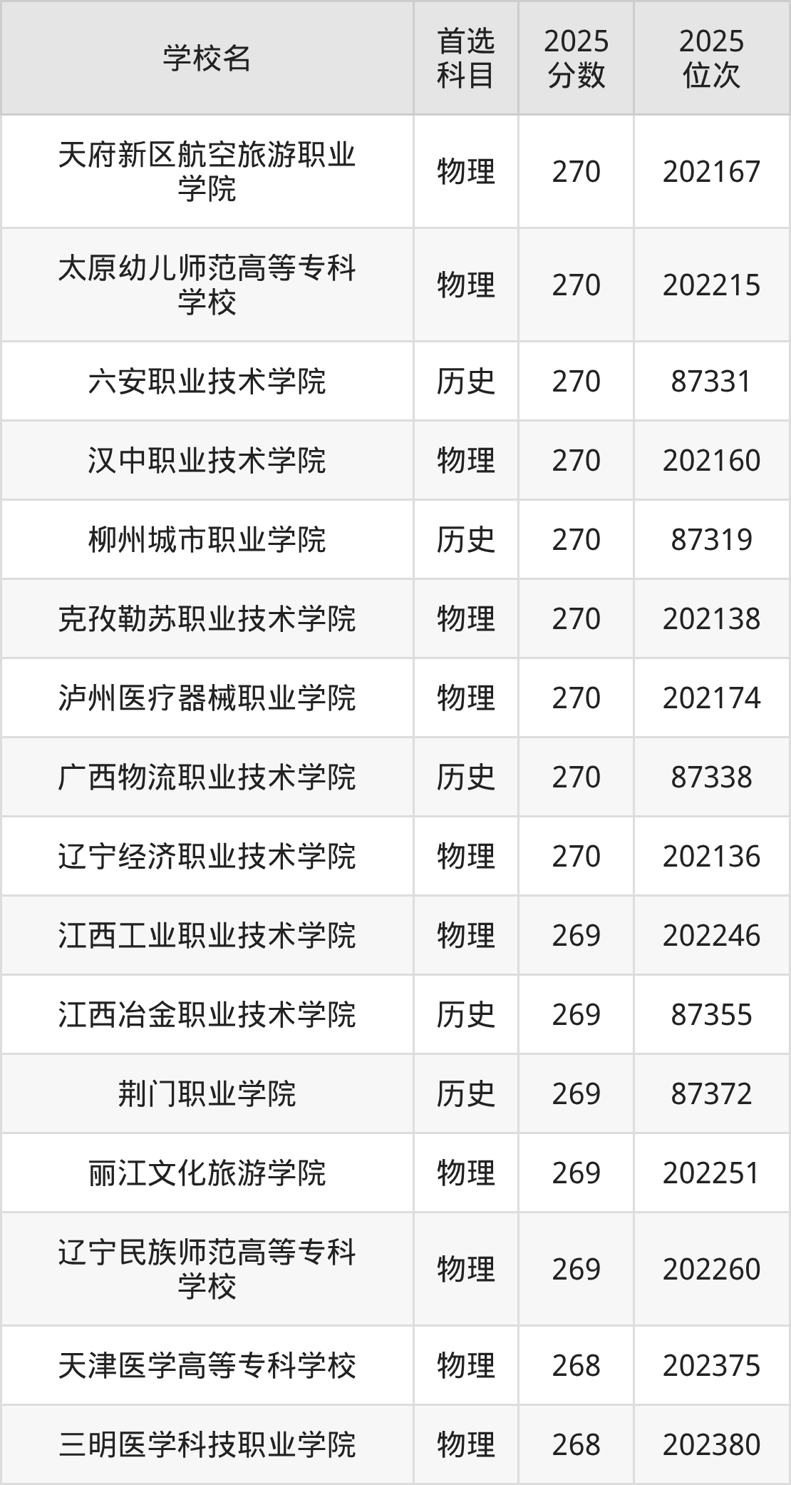 二、268分左右的专科大学排名