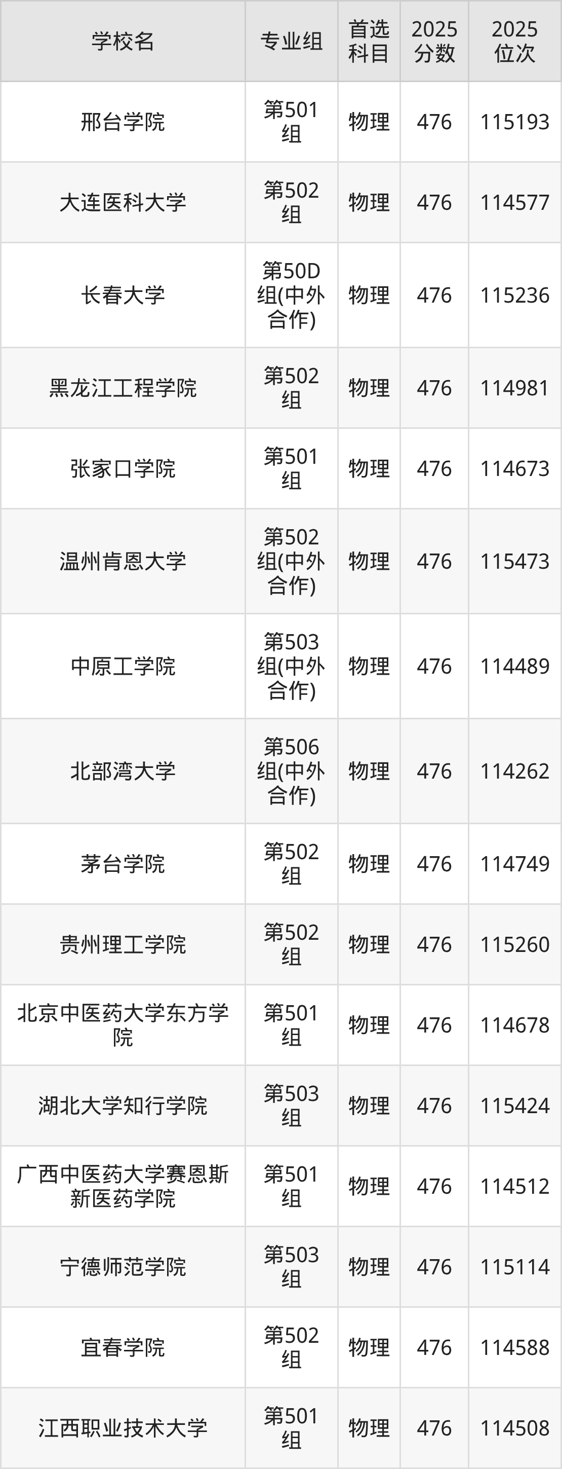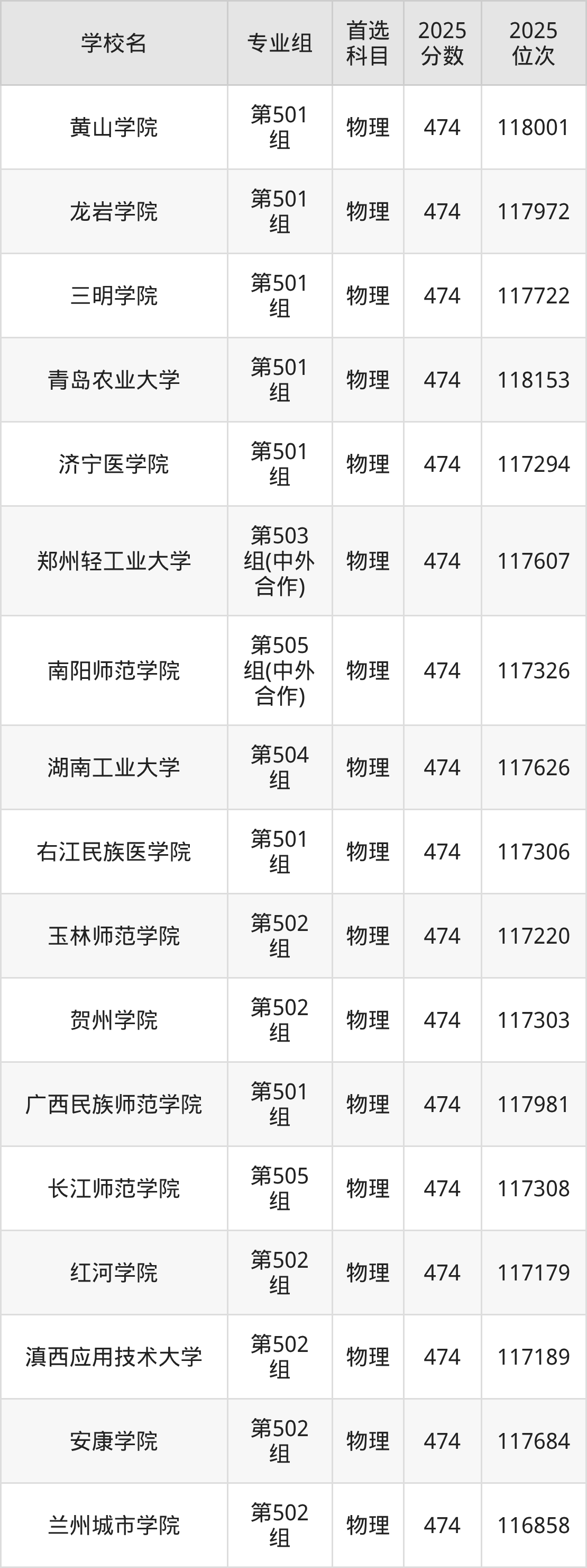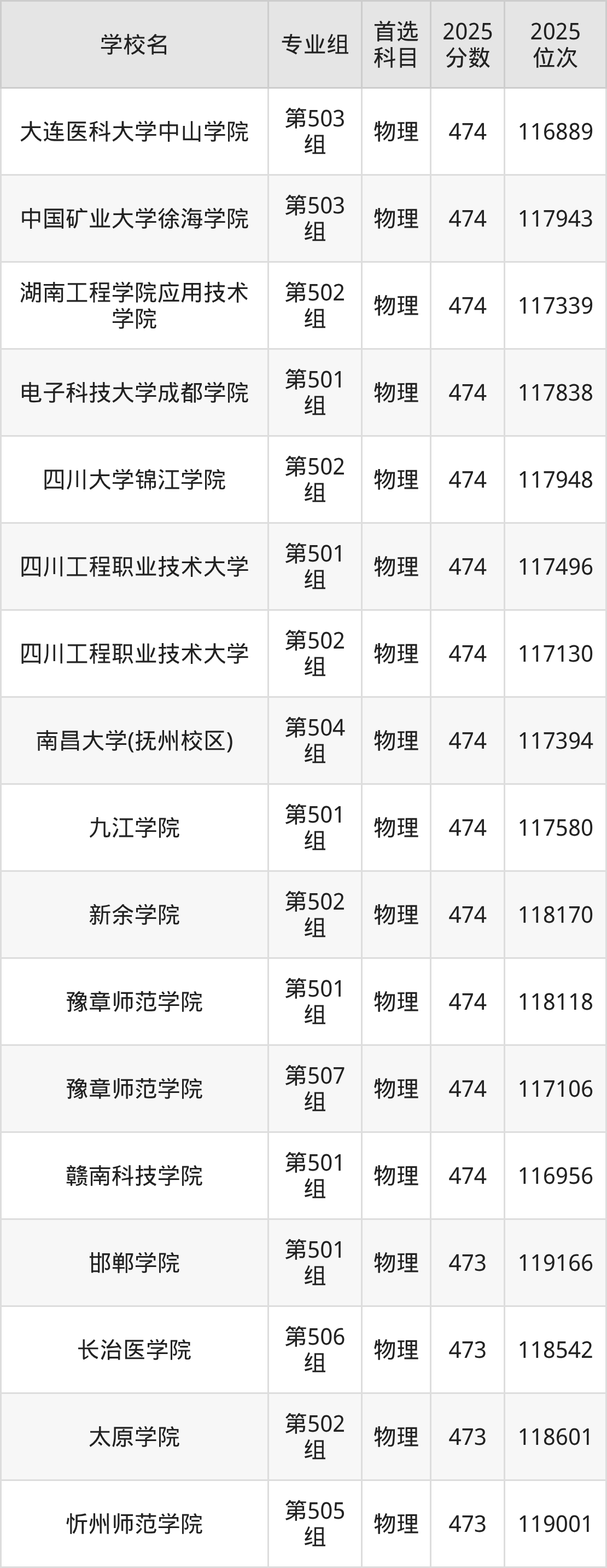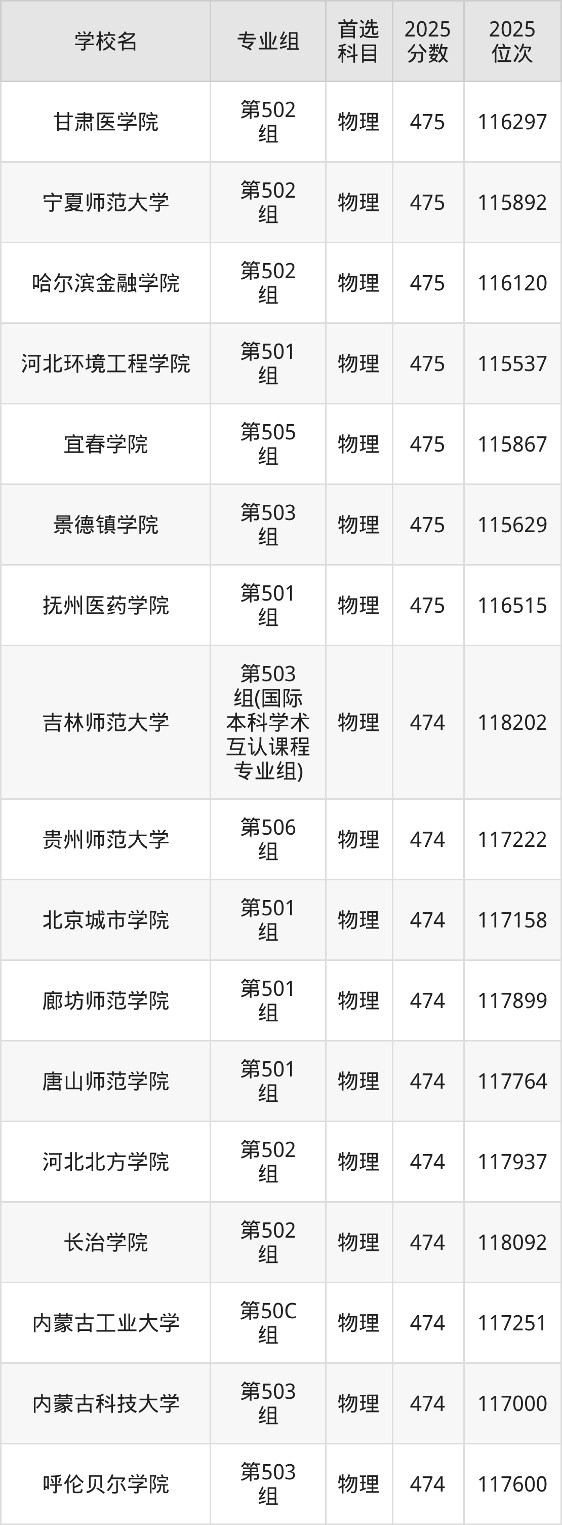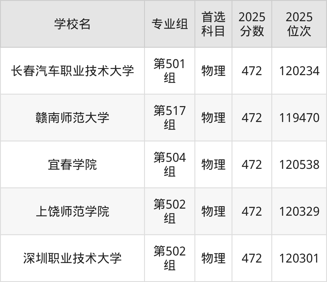 江西物理类474分对应的位次排名是116858名-118202名,因此建议2026年位次排在这附近的考生考虑这些大学。