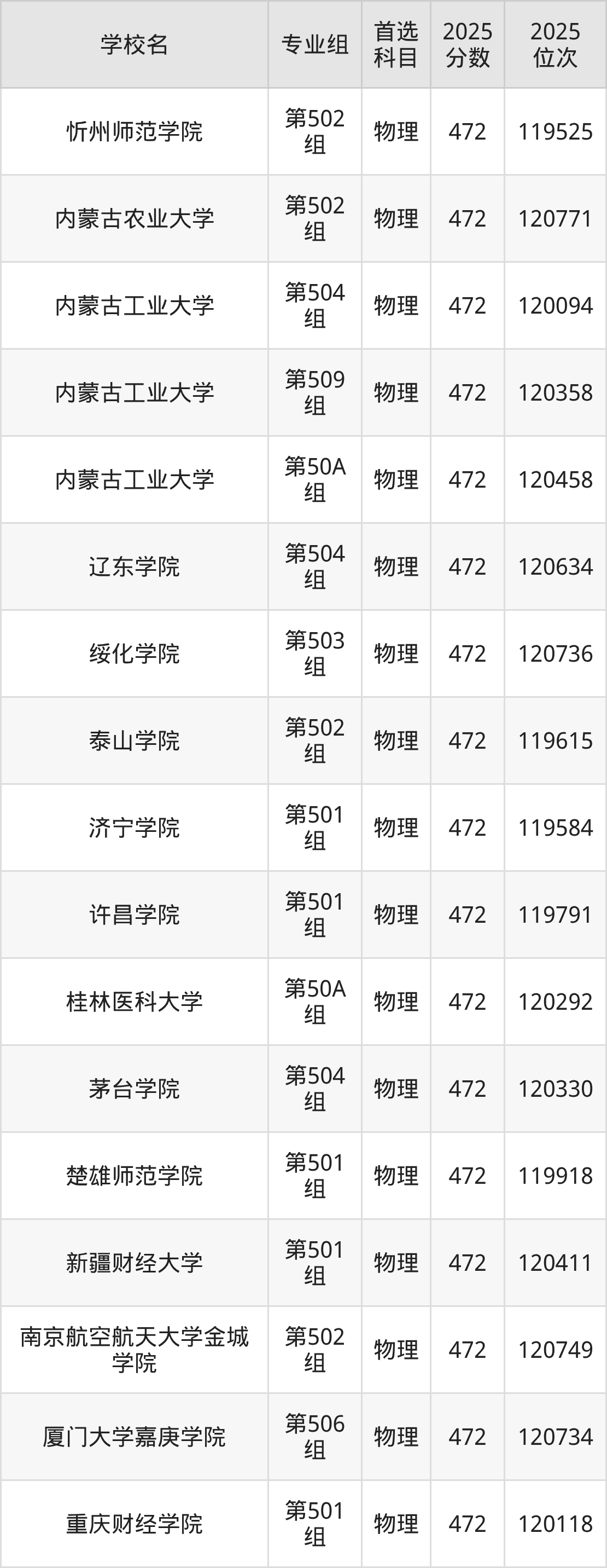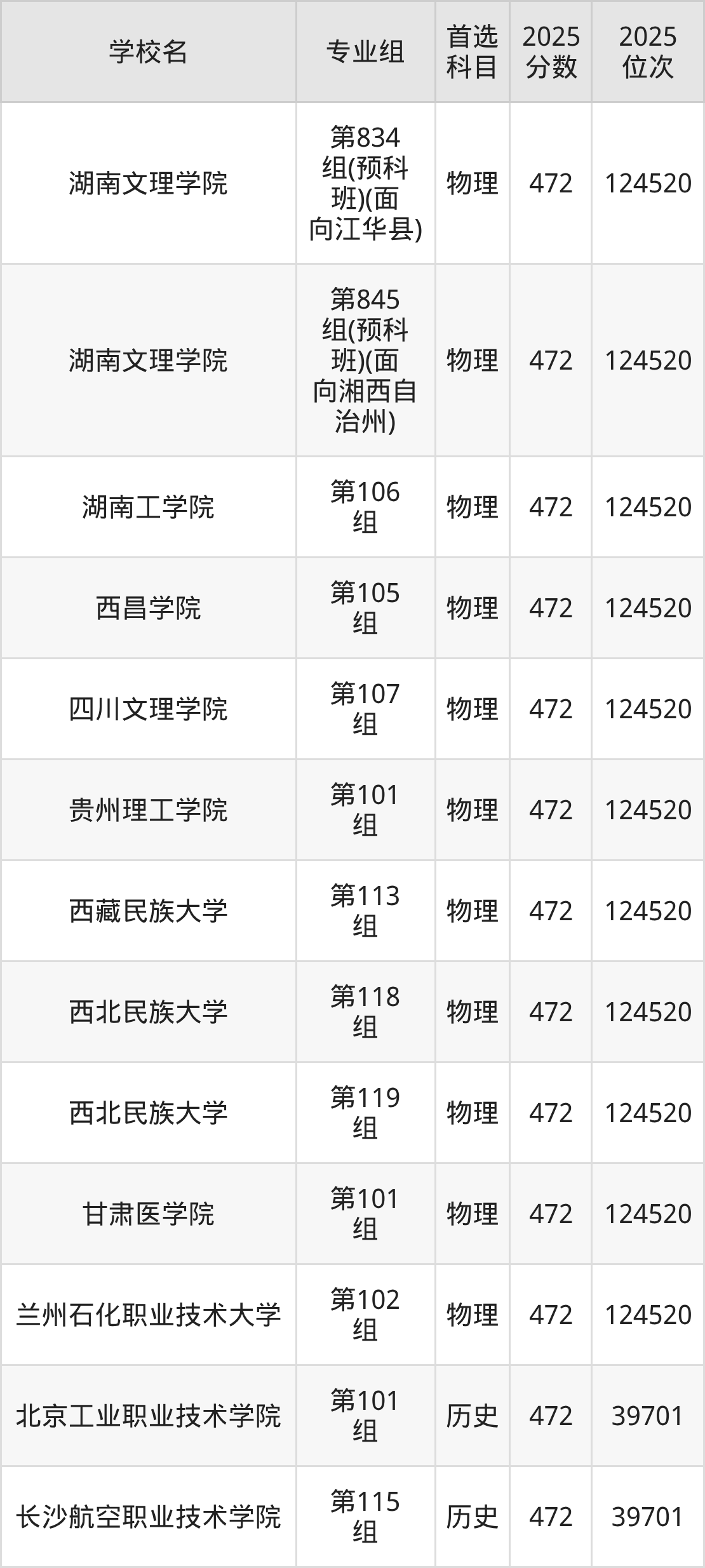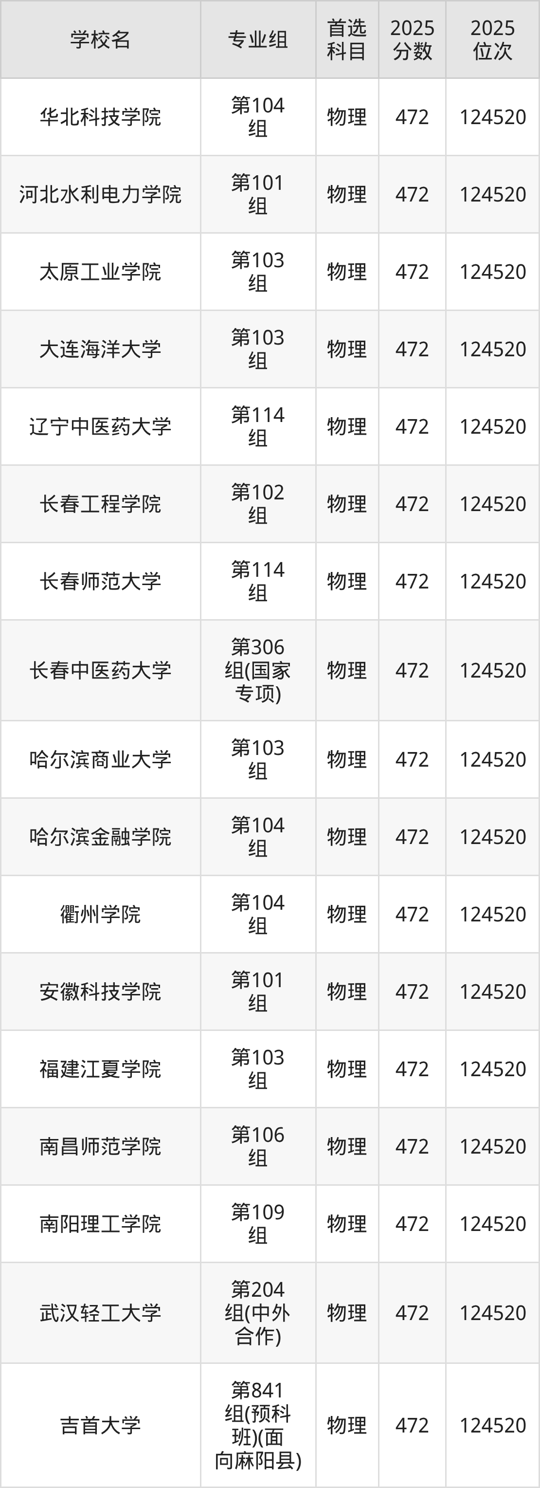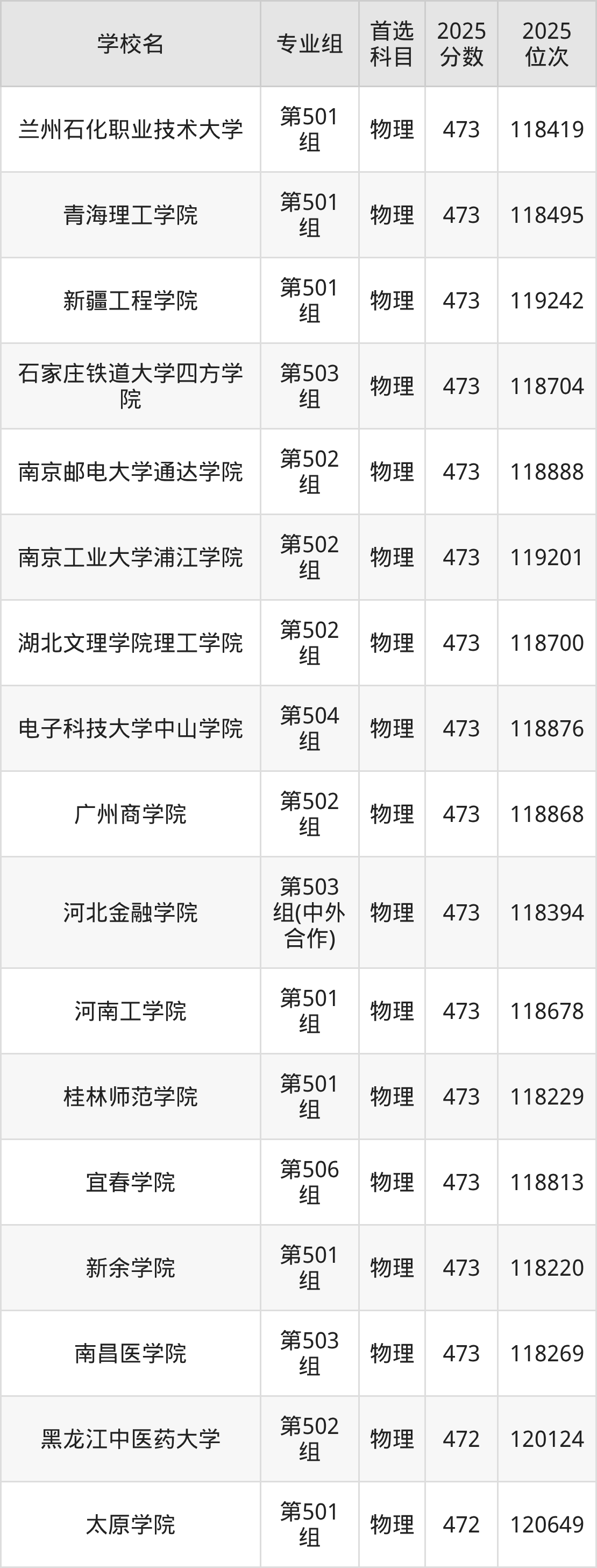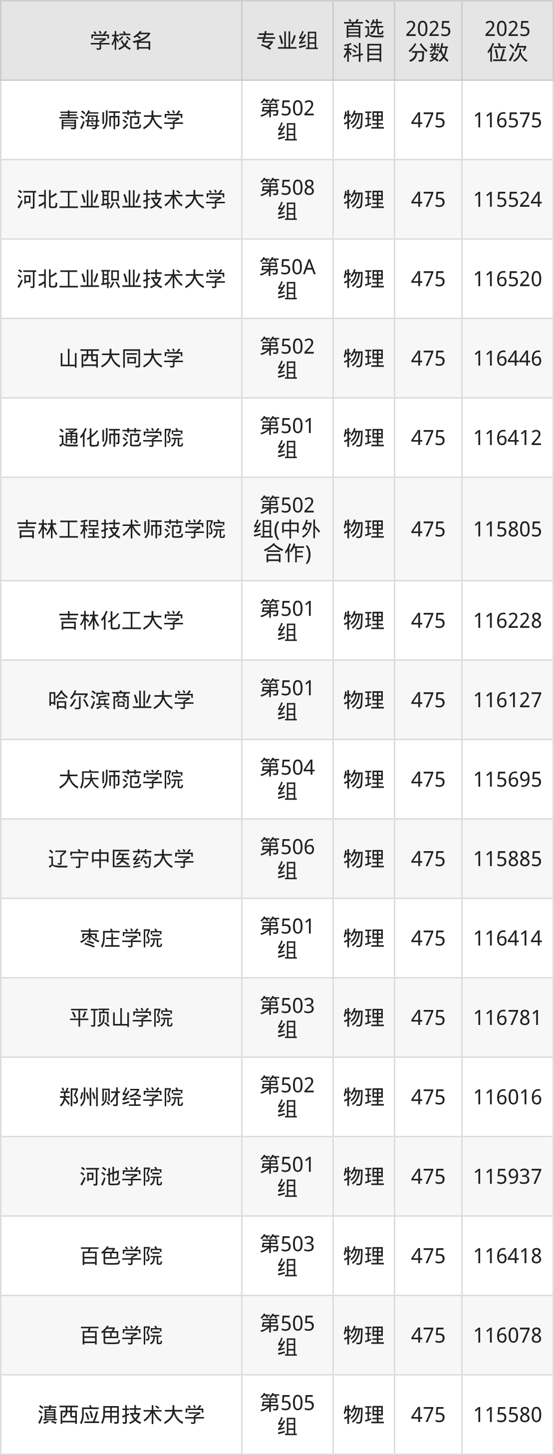 江西物理类474分对应的位次排名是116858名-118202名,因此建议2026年位次排在这附近的考生考虑这些大学。