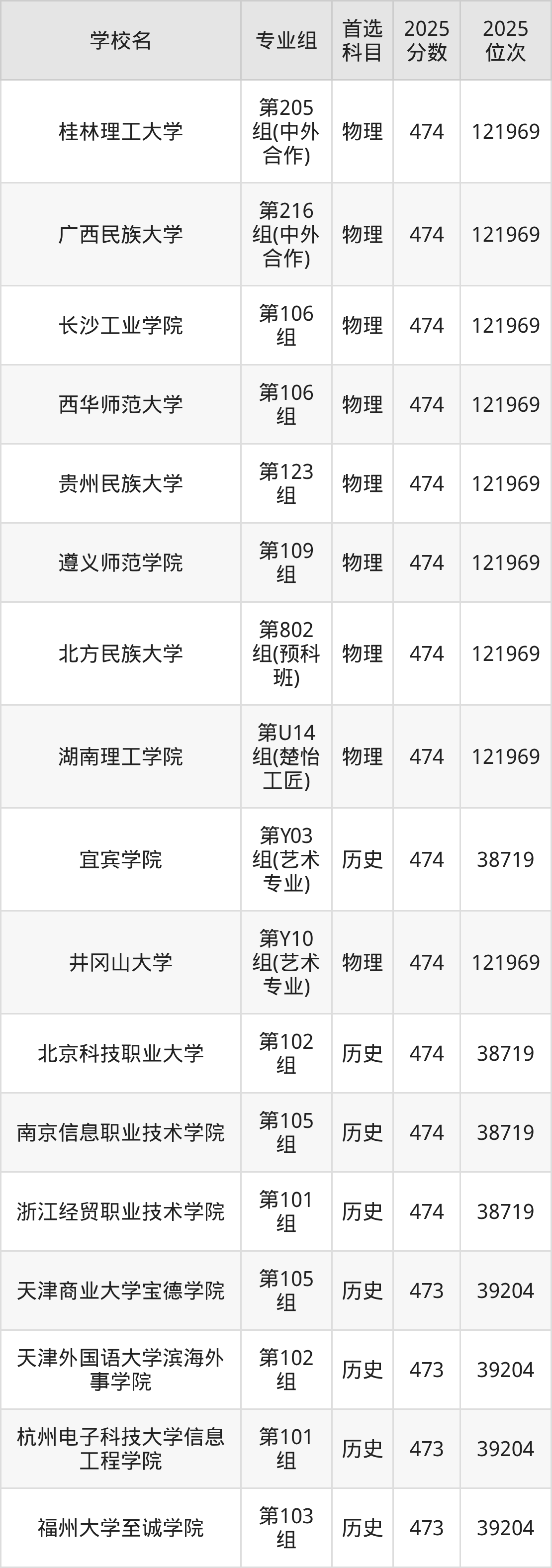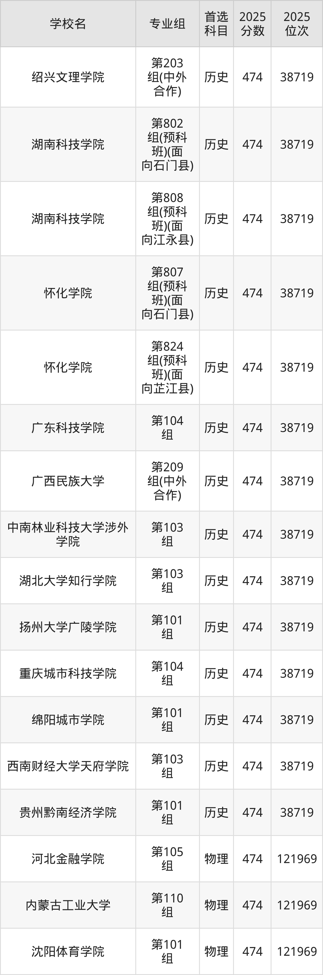 湖南高考历史类474分对应的位次排名是38719名,物理类474分对应的位次排名是121969名,因此建议2026年位次排在这附近的同学考虑这些大学。