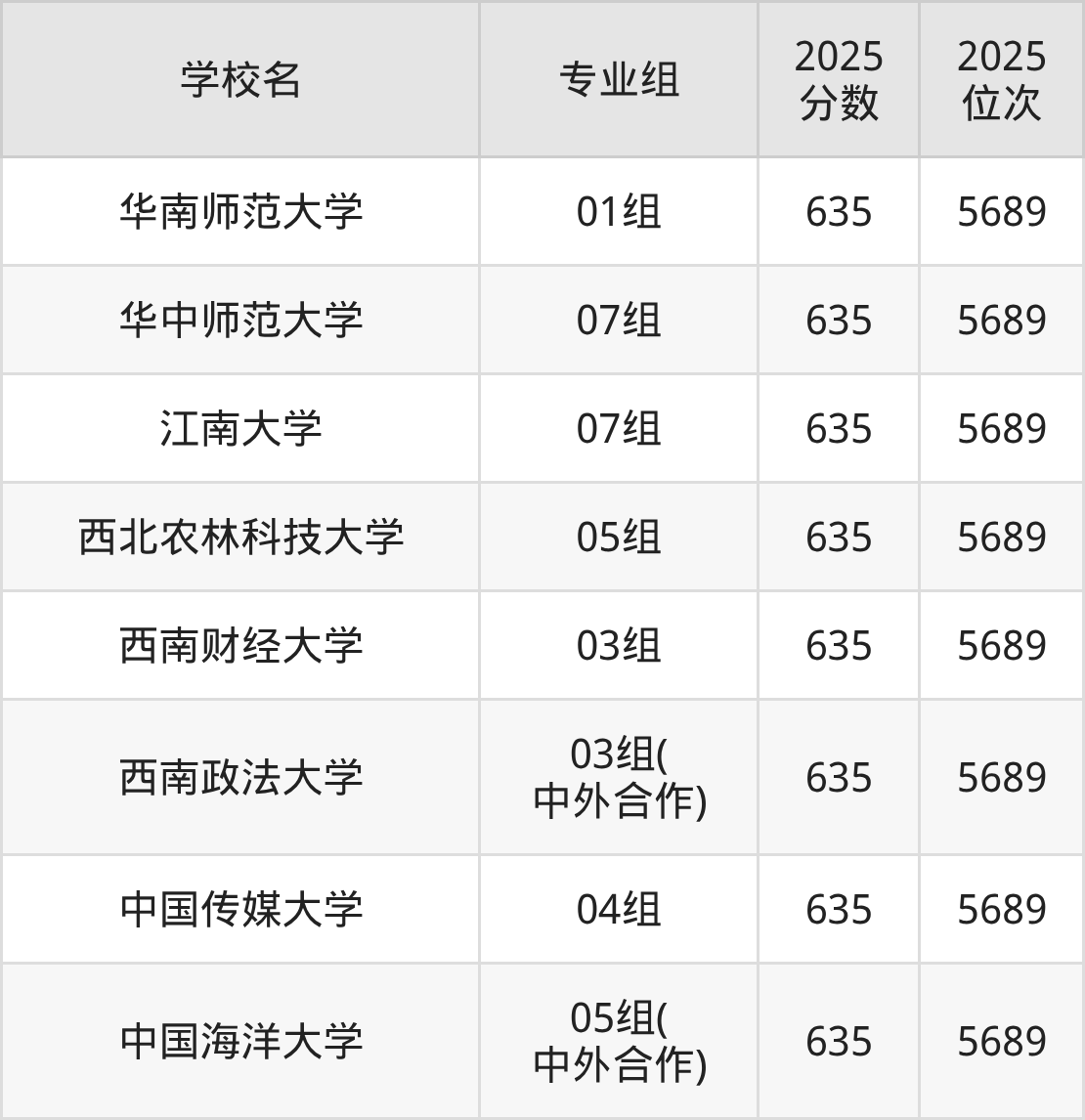 下面老师将以上文整理的其中两个省份为例,为大家具体展示637分左右能上的本科大学名单。