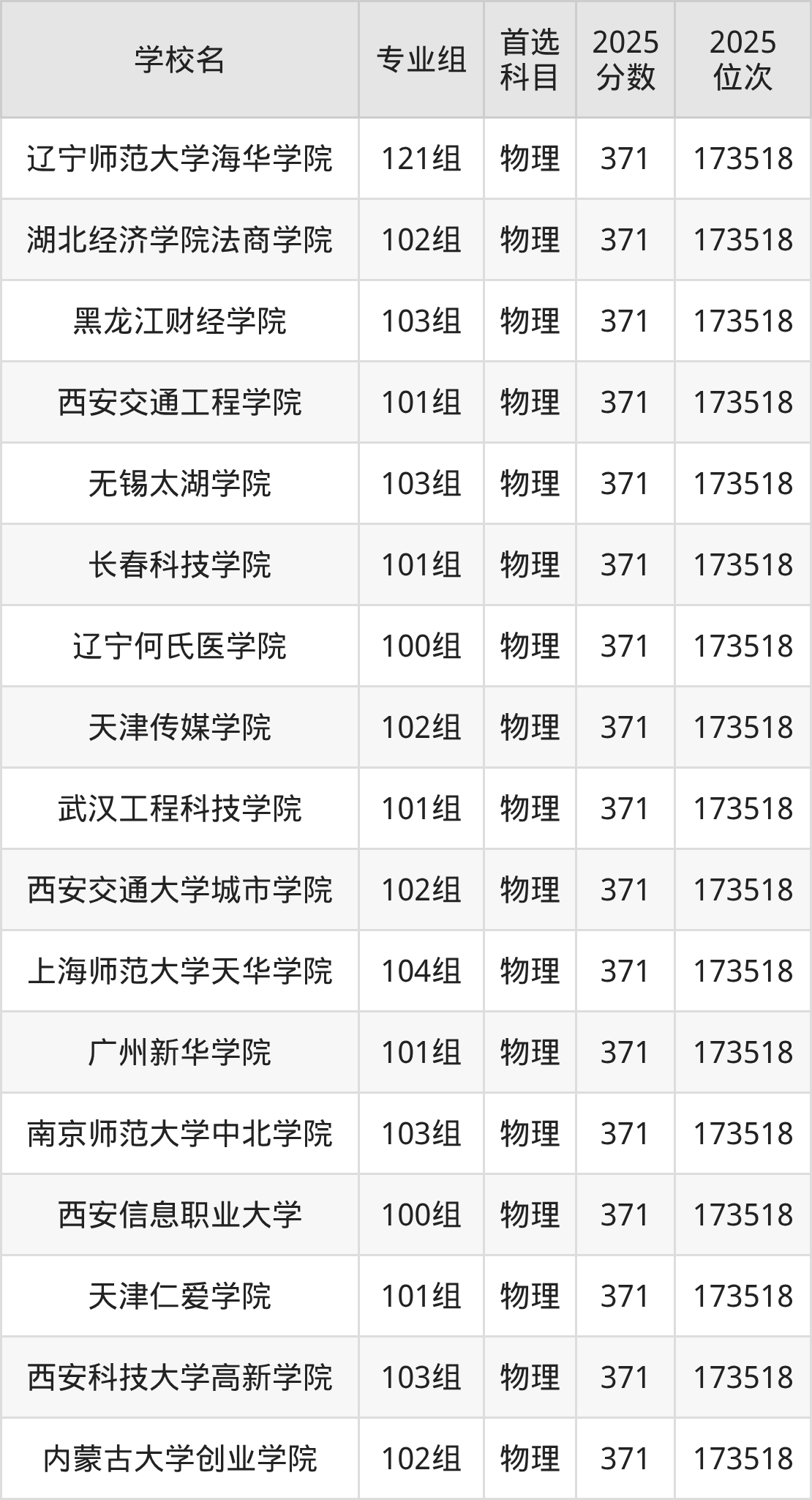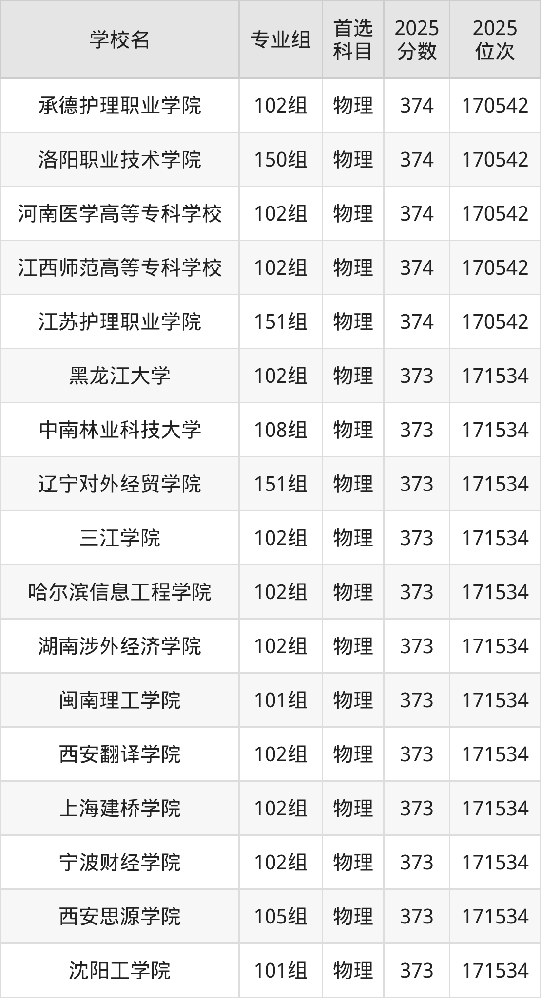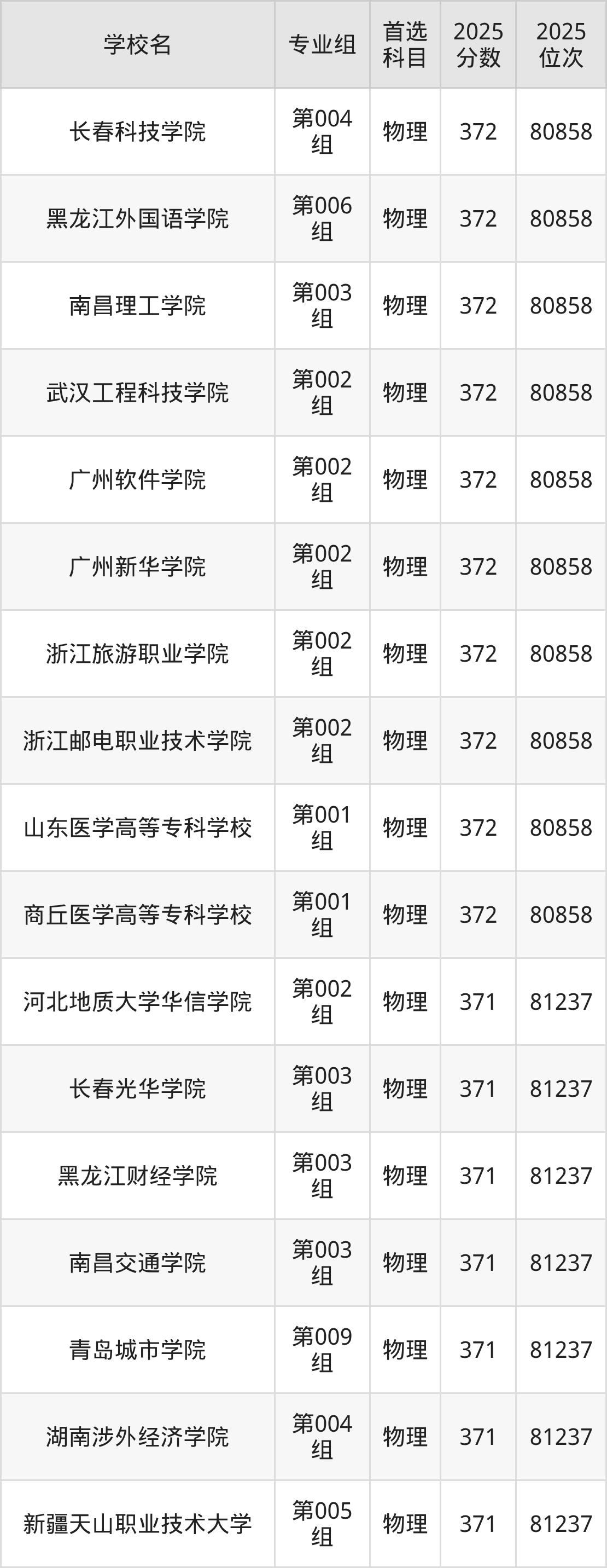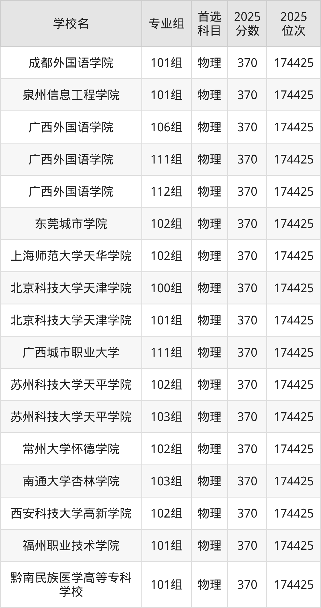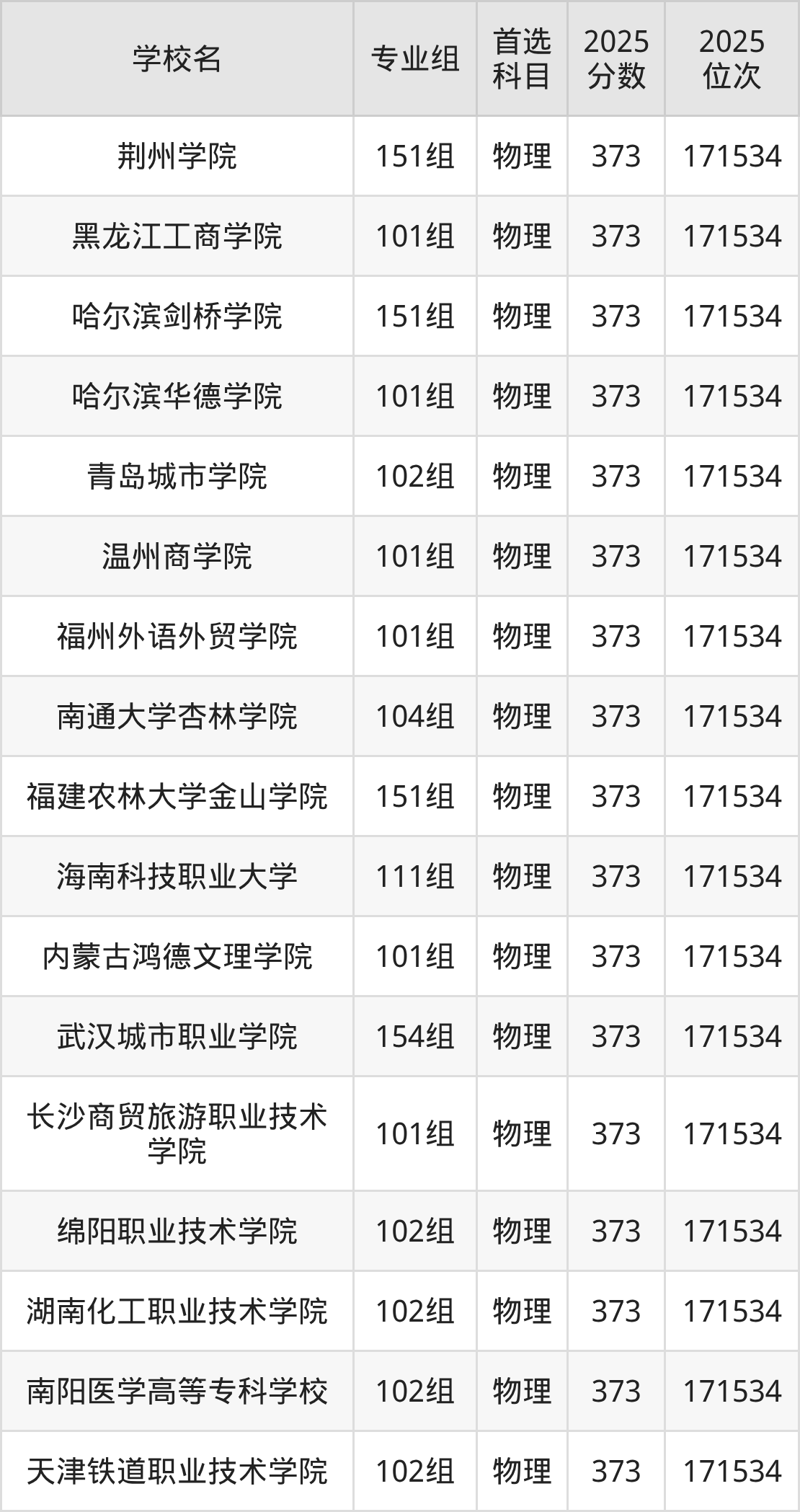 广西物理类372分对应的位次排名是172508名,因此建议2026年位次排在这附近的考生考虑这些大学。
