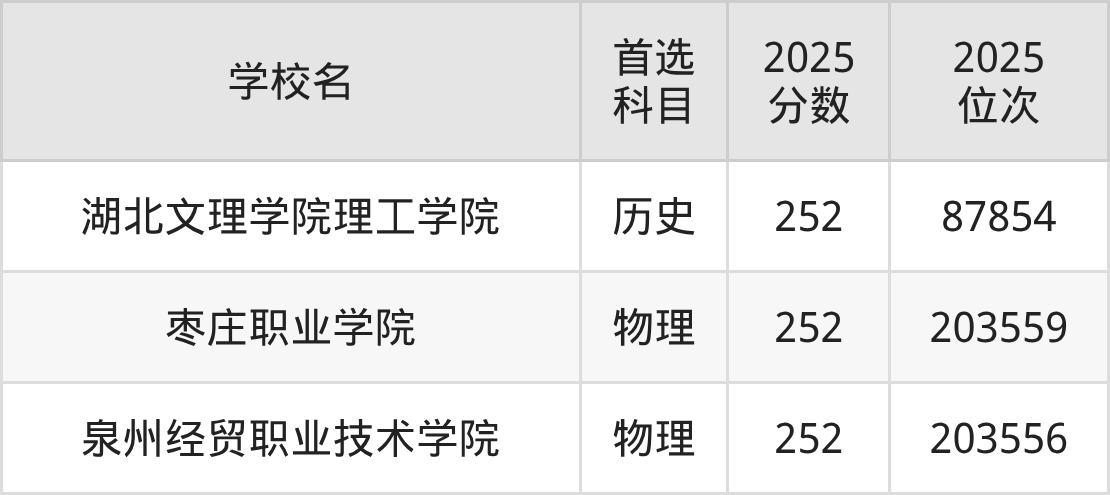 2025年在贵州高考历史类录取分数线是254分的大学有湖北工程职业学院、四川托普信息技术职业学院、黑龙江民族职业学院。物理类录取分数线是254分的大学有云南理工职业学院、渤海理工职业学院、新疆应用职业技术学院、黑龙江旅游职业技术学院。