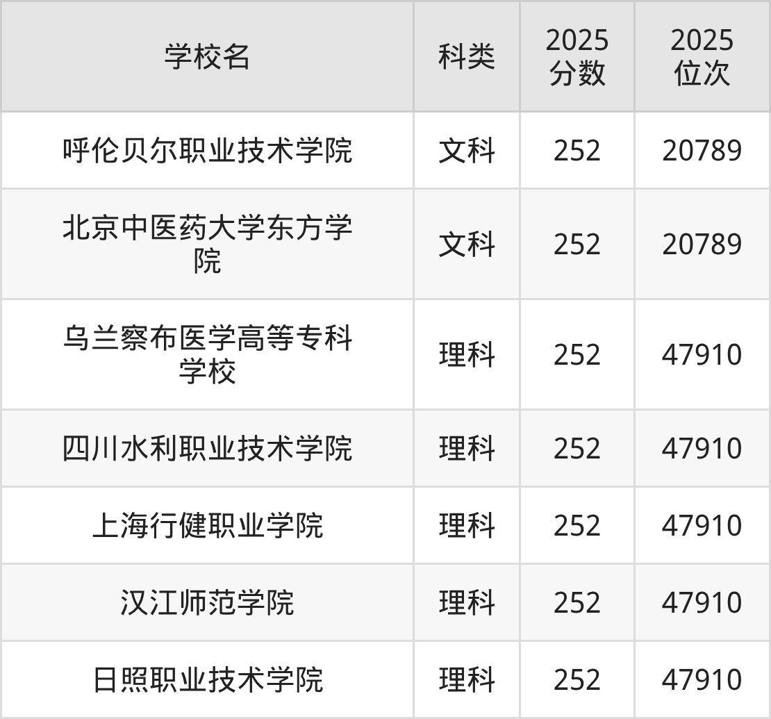 从2025年划定的批次线来看,254分在以下地区可以上专科大学,2025年专科线不超过254分的地区有23个,具体如下: