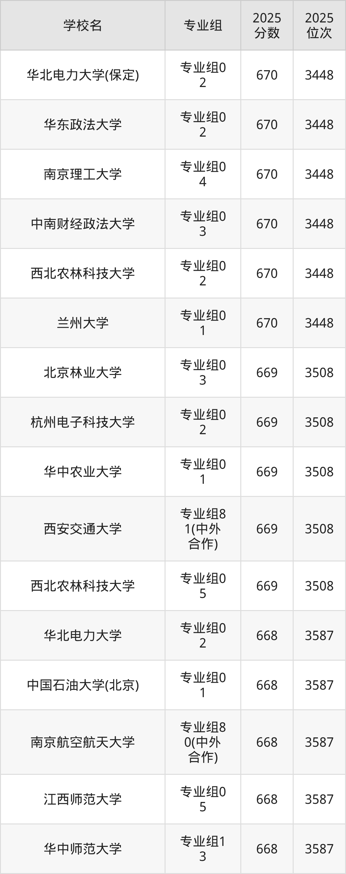 668分可以冲一冲的大学:华北电力大学(保定)670分、华东政法大学670分、南京理工大学670分、中南财经政法大学670分等;