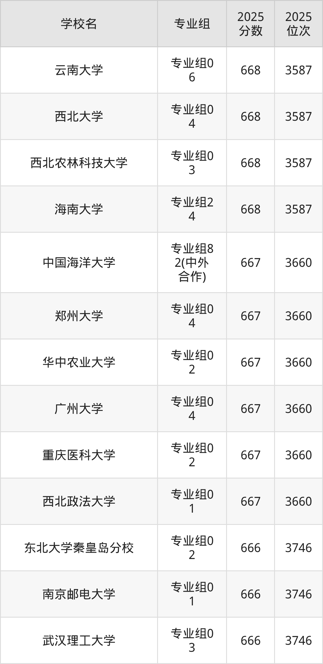 668分较稳妥的大学:中国海洋大学667分、郑州大学667分、华中农业大学667分、广州大学667分等。