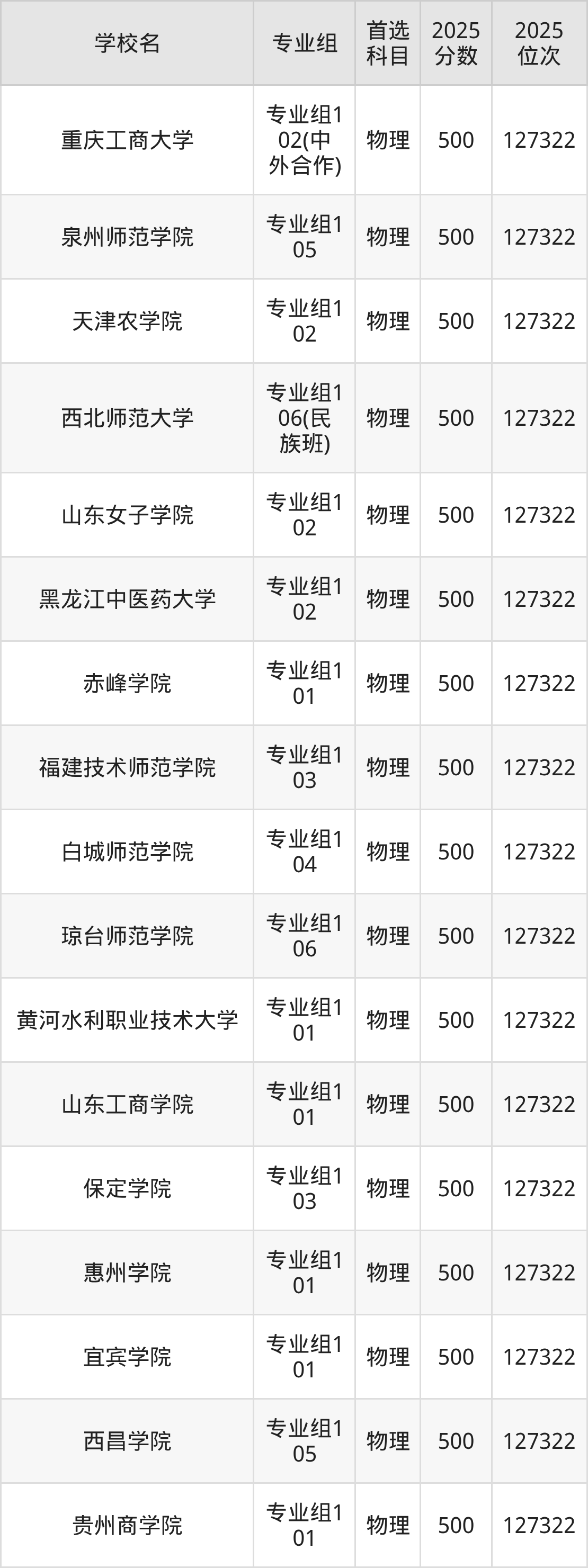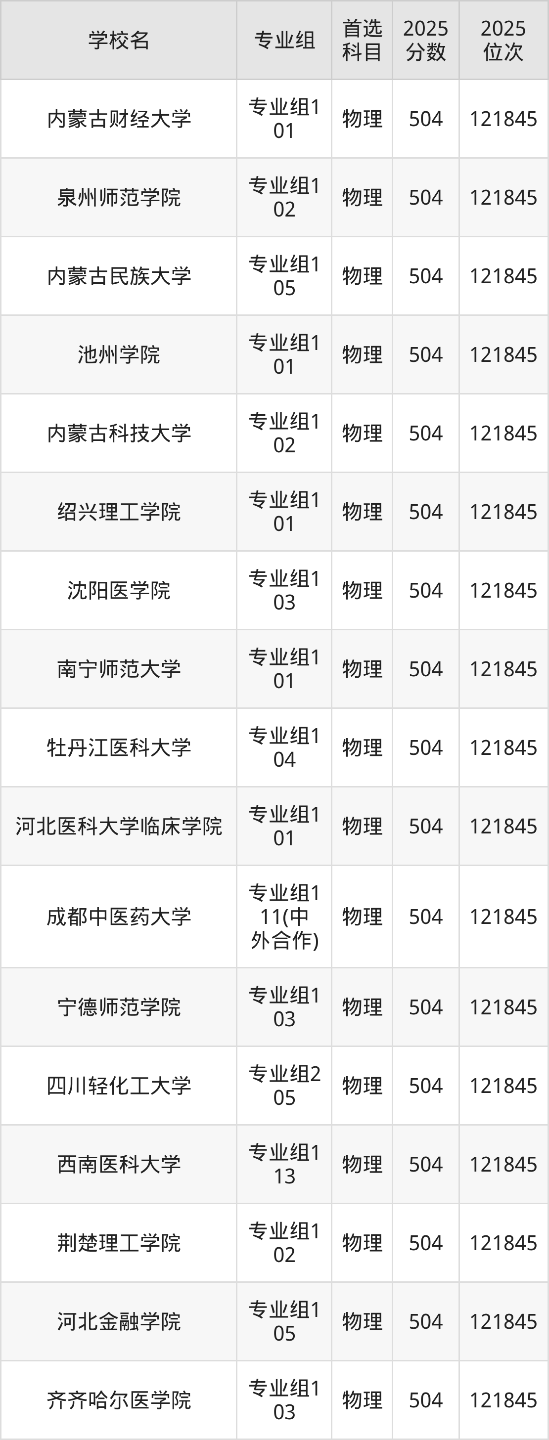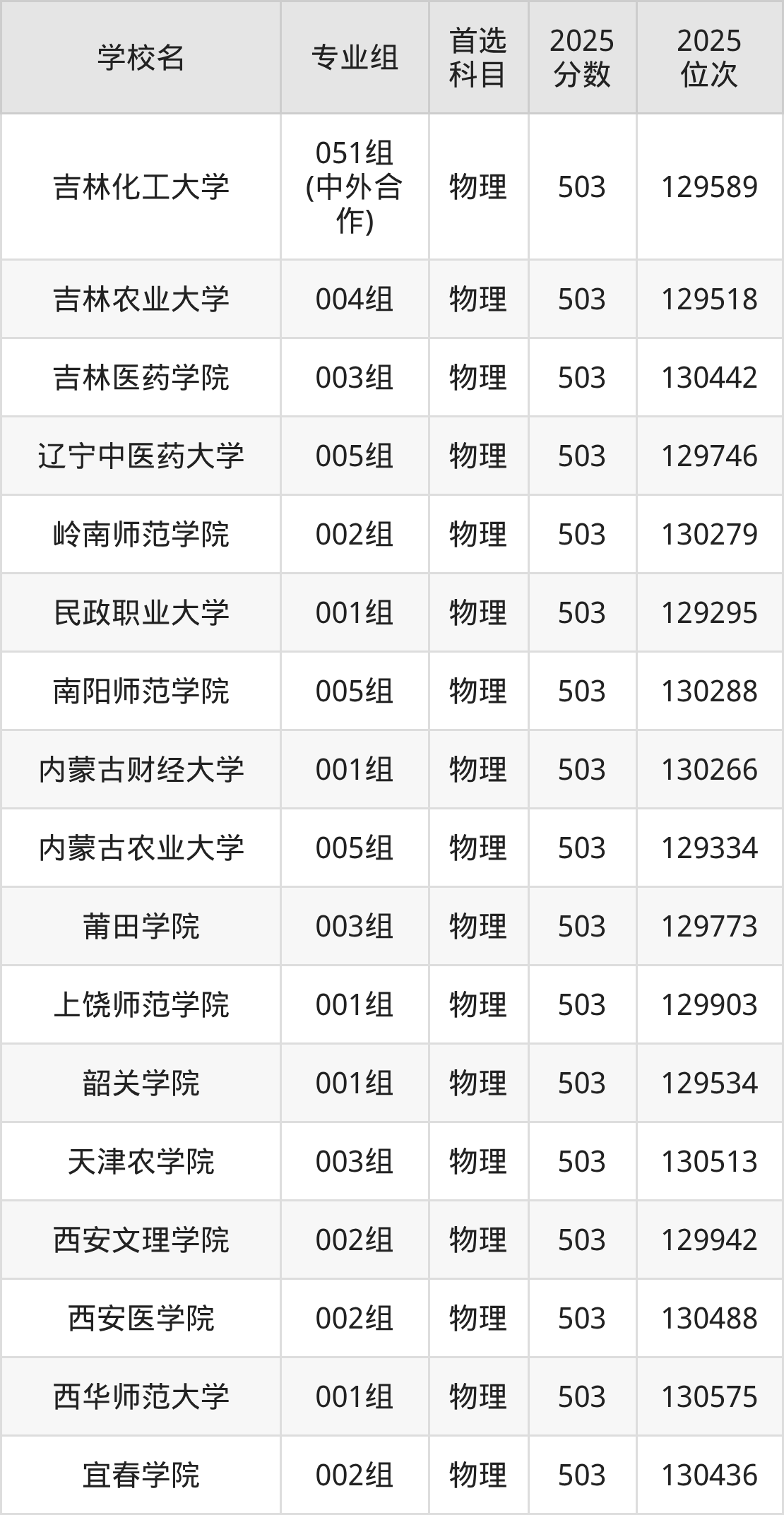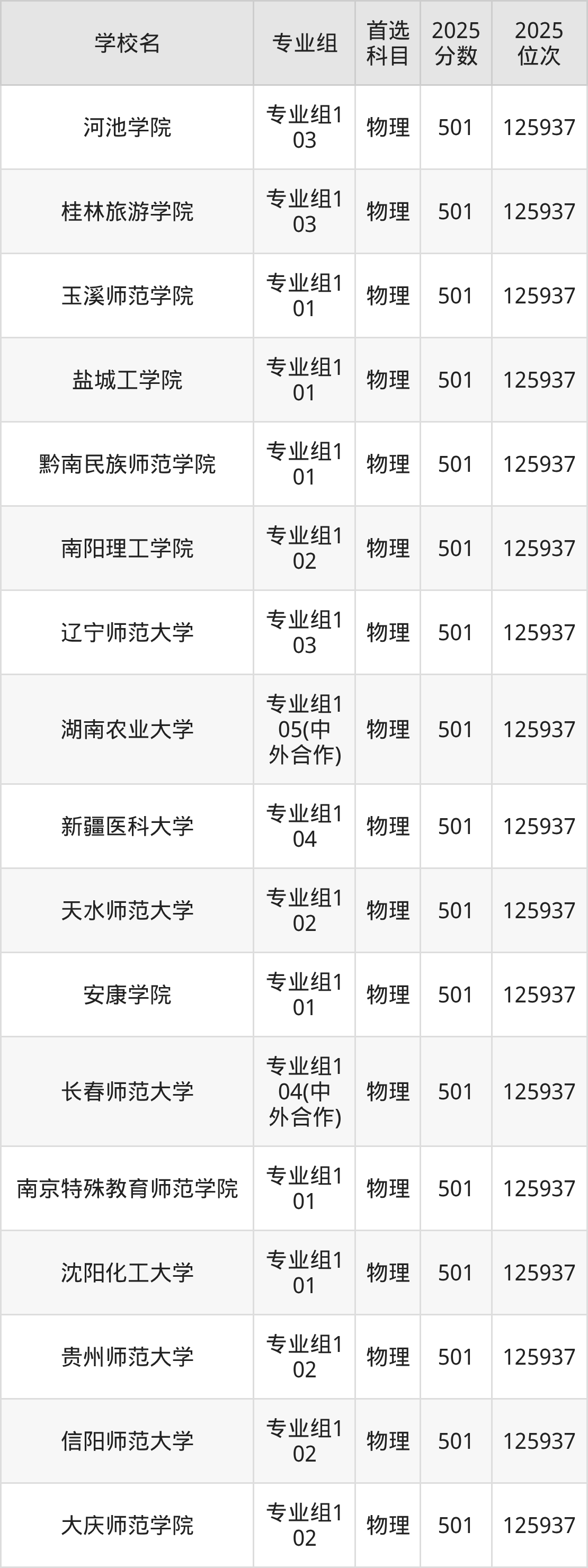 物理类502分可以冲的大学:济宁学院504分、北部湾大学504分、西华大学504分、太原师范学院504分等;较稳妥的大学:武汉商学院501分、民政职业大学501分、梧州学院501分、盐城师范学院501分等。