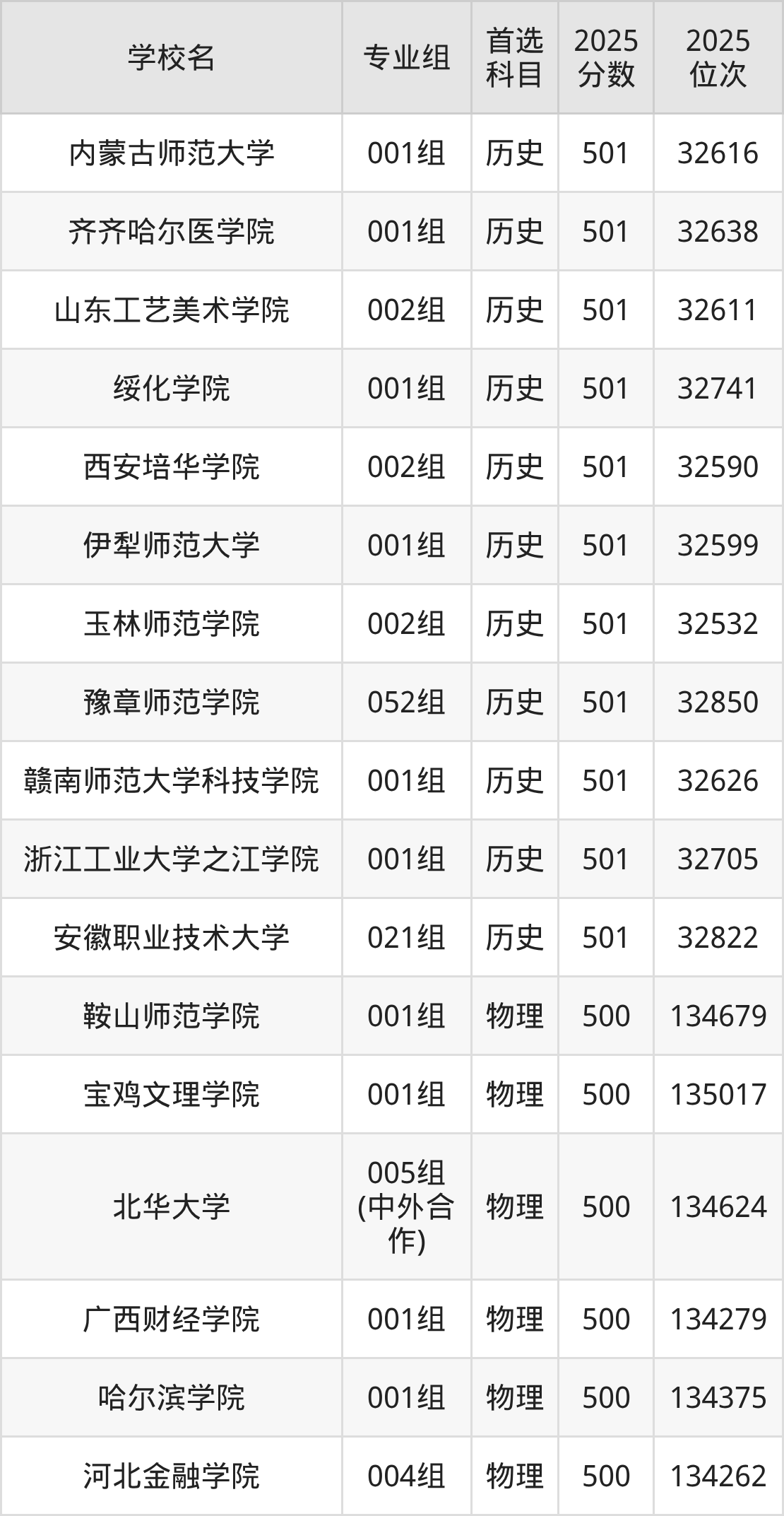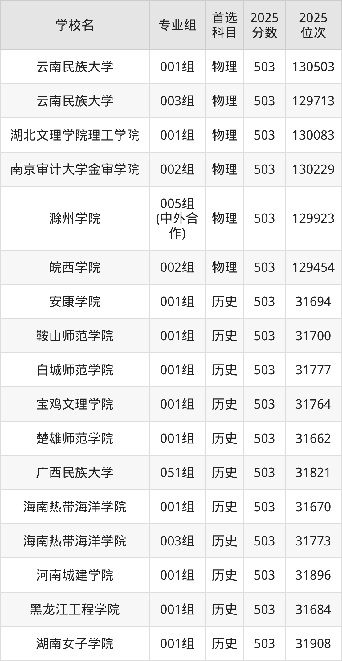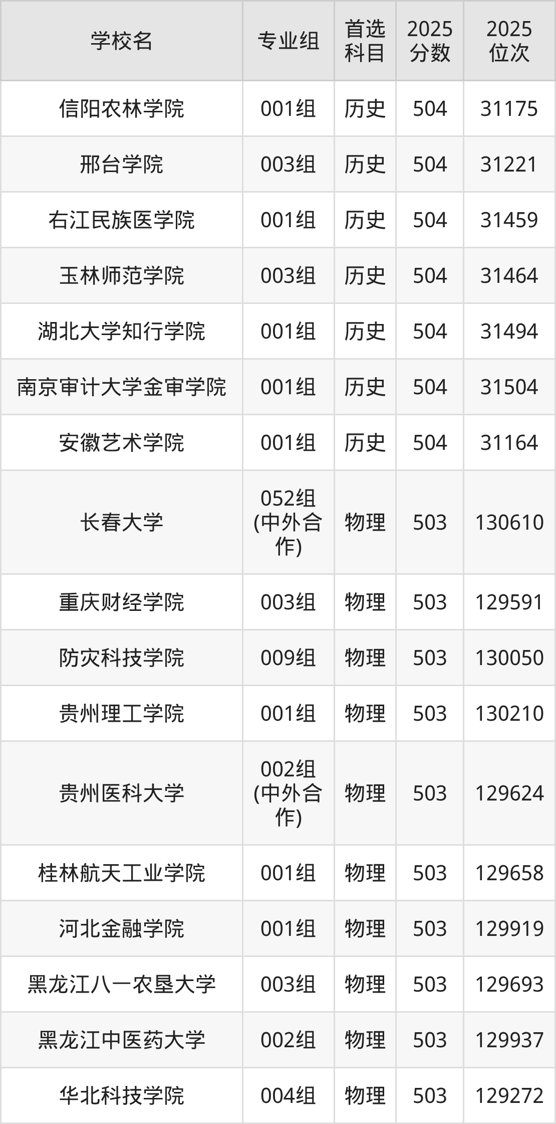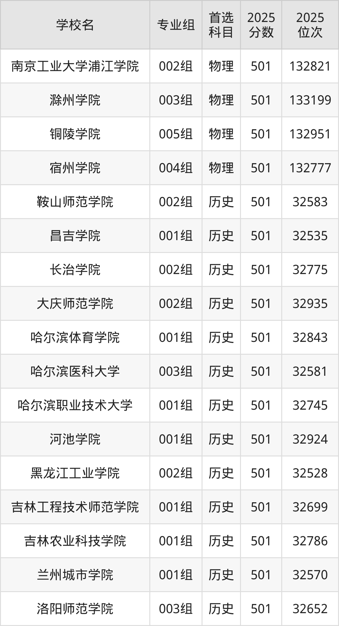 安徽高考物理类502分对应的位次排名是130754名-132011名,历史类502分对应的位次排名是32053名-32518名,因此建议2026年位次排在这附近的同学考虑这些大学。