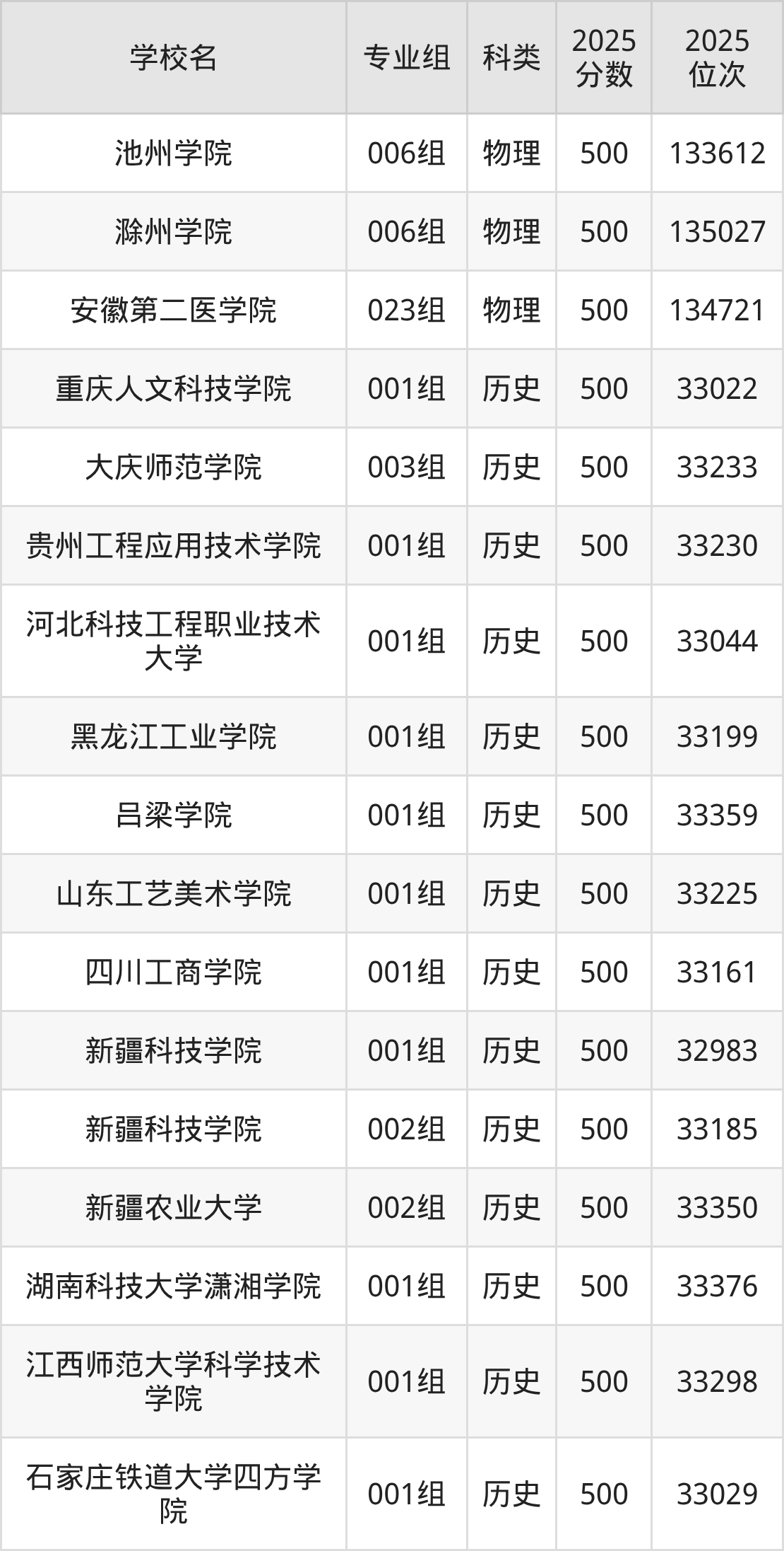 2025年在安徽高考物理类录取分数线是502分的大学有福建技术师范学院、海南热带海洋学院、河北科技大学、河北水利电力学院、河南工程学院、黑龙江中医药大学、湖北恩施学院、华北科技学院、吉林化工大学、吉林医药学院等。历史类录取分数线是502分的大学有鞍山师范学院、大庆师范学院、福建商学院、贵州商学院、河北环境工程学院、河北建筑工程学院、河南牧业经济学院、黑河学院、吉林工商学院、喀什大学等。