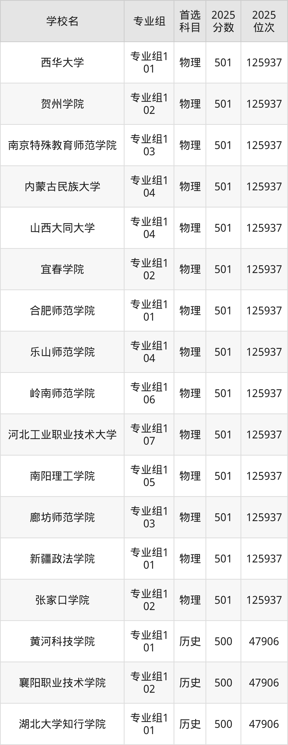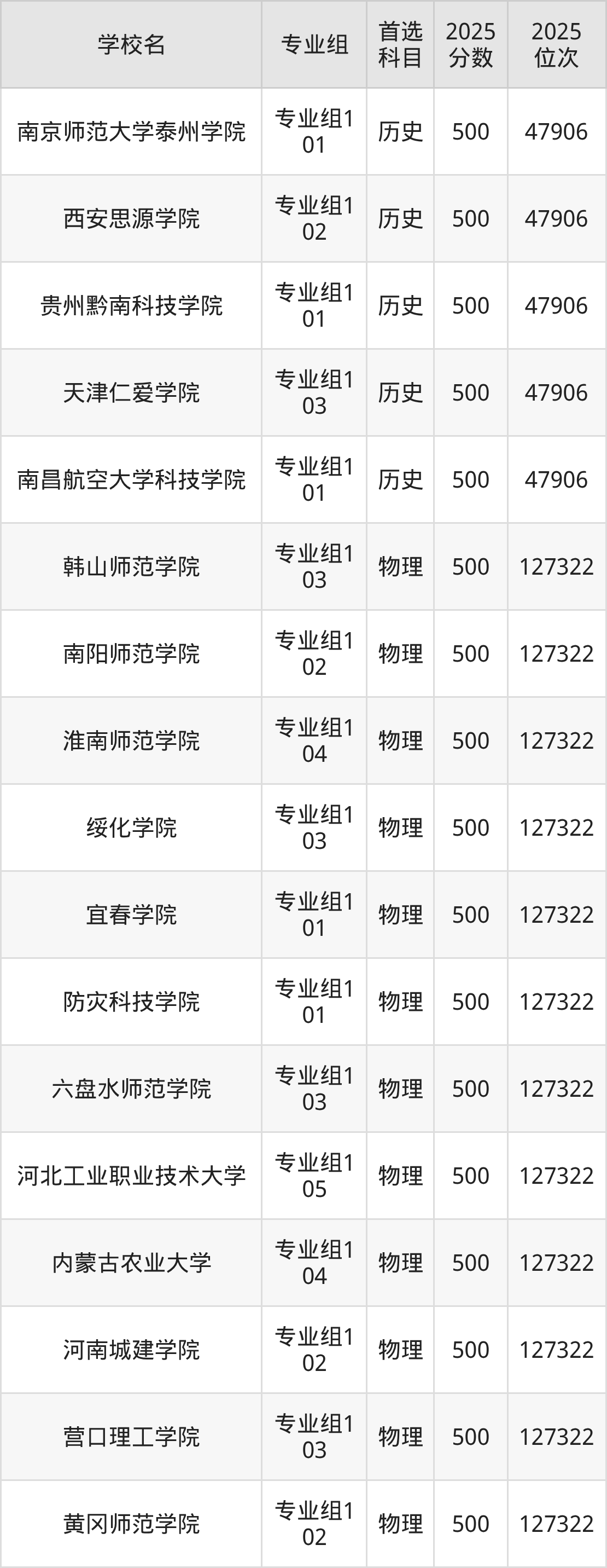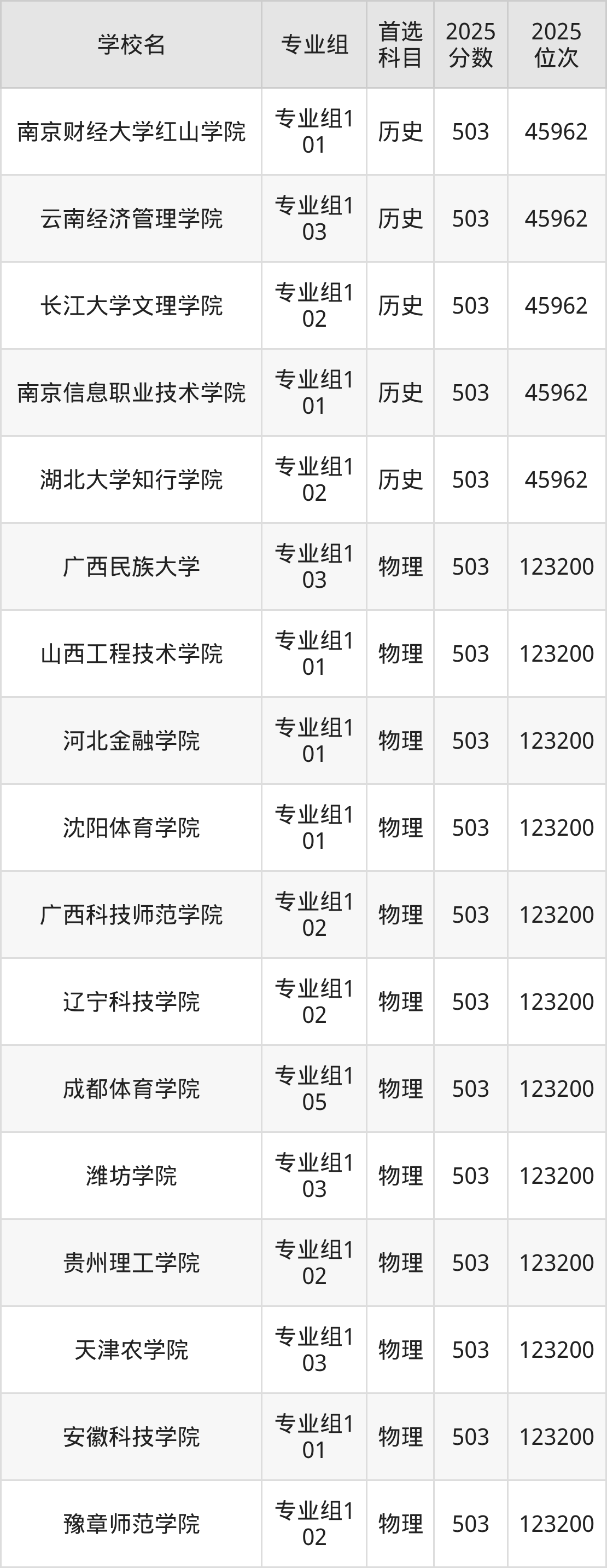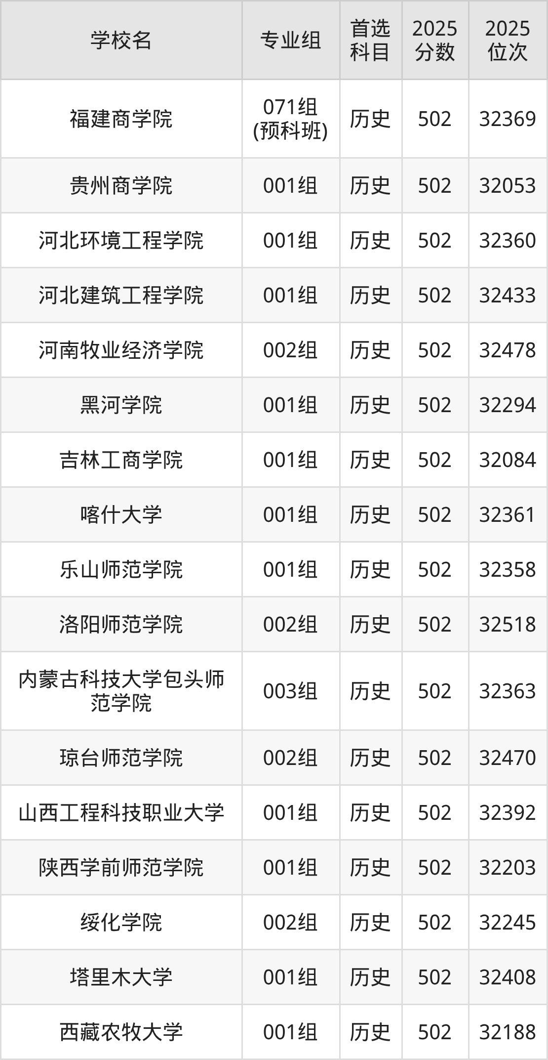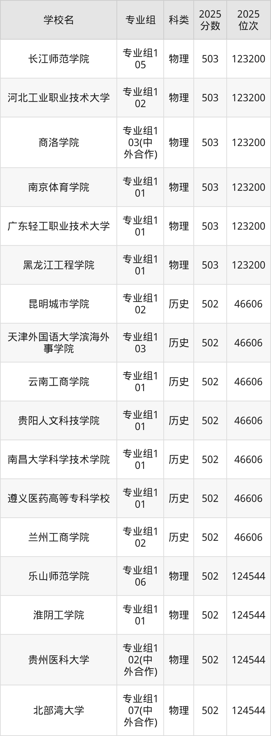 下面老师将以上文整理的其中两个省份为例,为大家具体展示502分左右能上的本科大学名单。