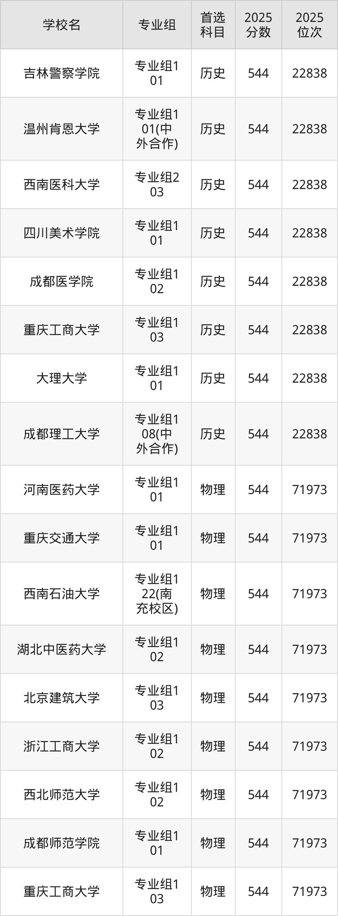四川高考历史类546分对应的位次排名是21880名,物理类546分对应的位次排名是69786名,因此建议2026年位次排在这附近的同学考虑这些大学。