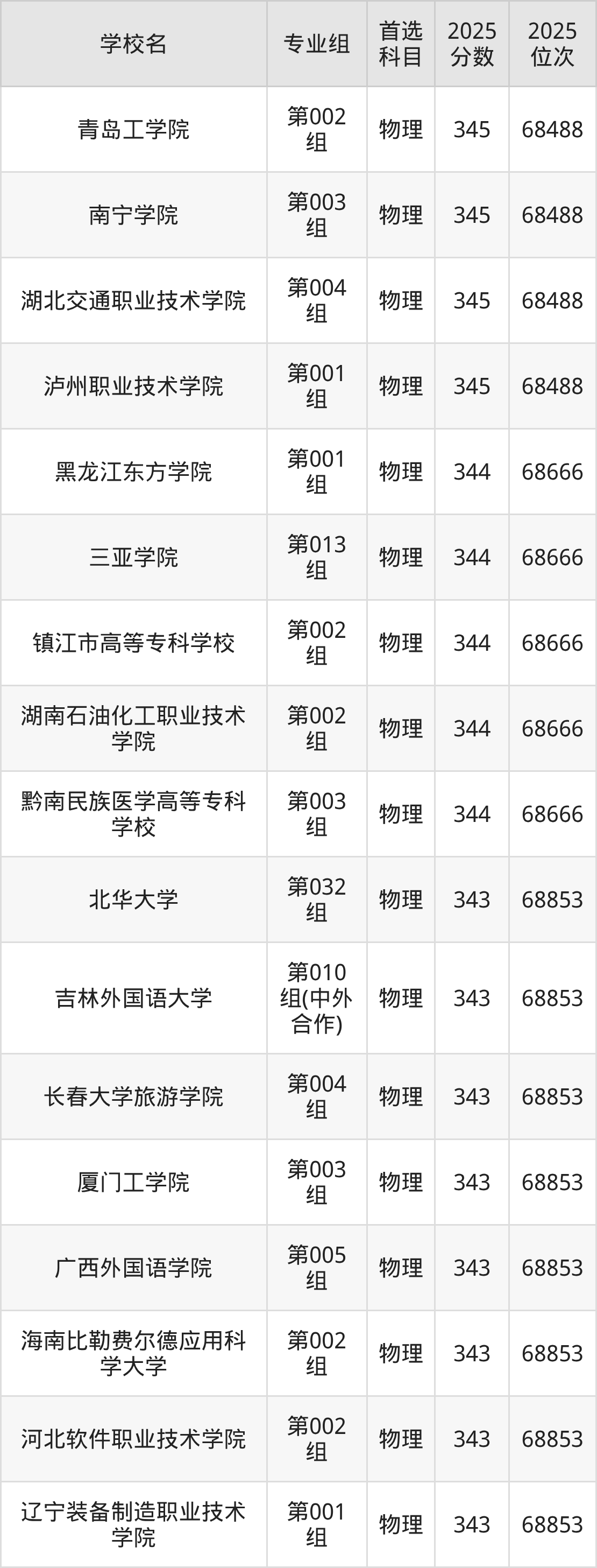 吉林物理类345分对应的位次排名是68488名,因此建议2026年位次排在这附近的考生考虑这些大学。