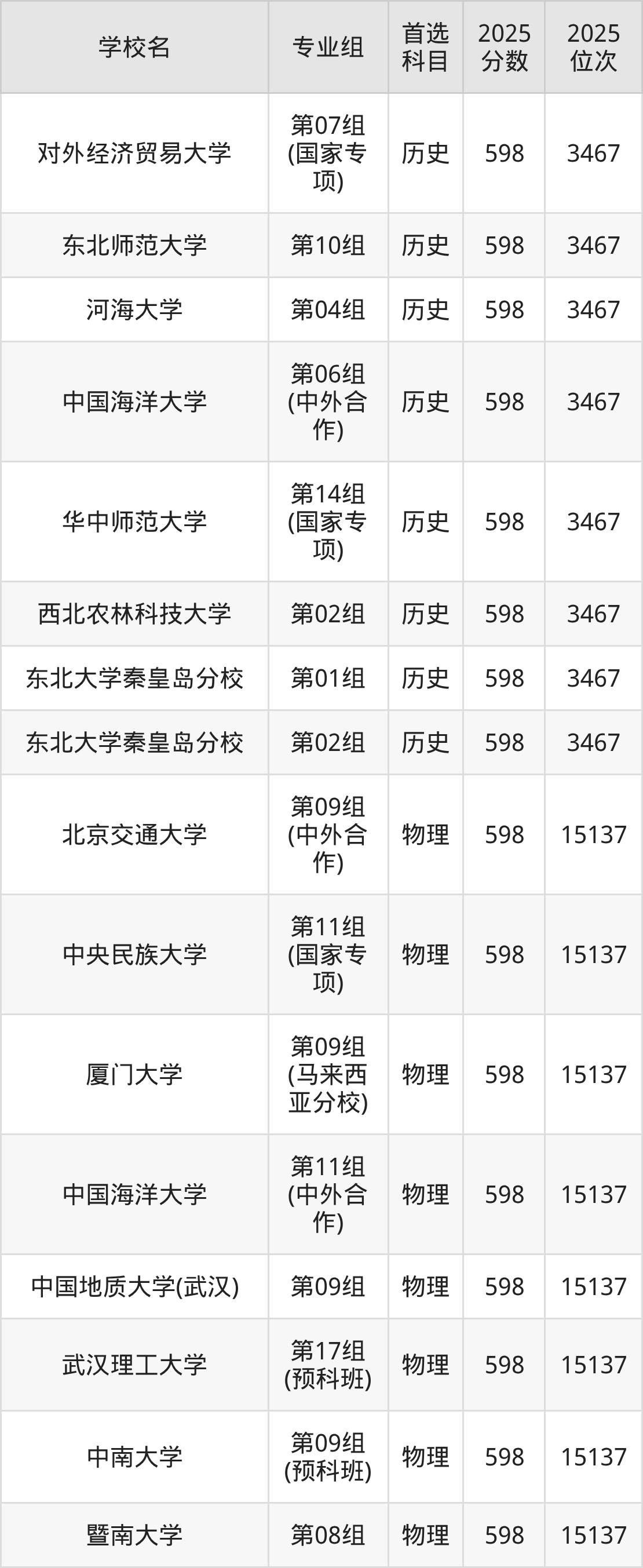 历史类596分可以冲的大学:对外经济贸易大学598分、东北师范大学598分、河海大学598分、中国海洋大学598分等;较稳妥的大学:对外经济贸易大学595分、武汉理工大学595分、暨南大学595分、西南交通大学595分等。