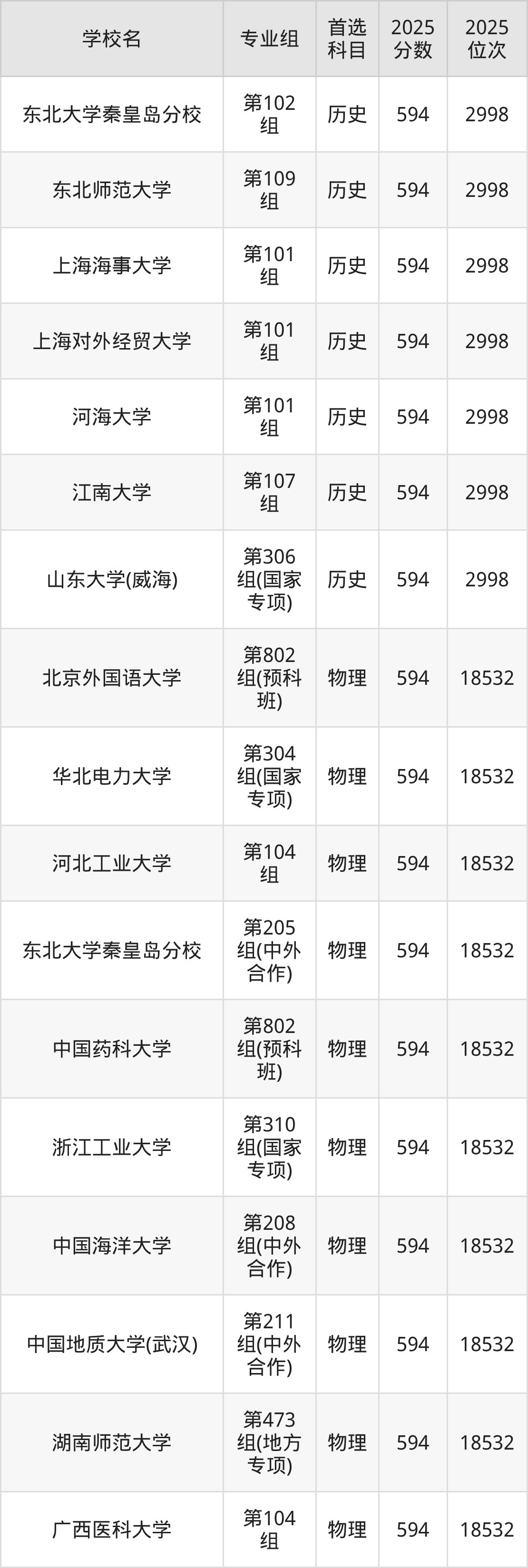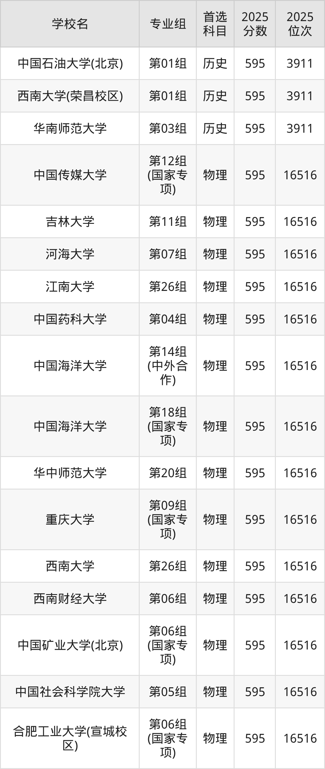 2025年在湖南高考历史类录取分数线是596分的大学有中国石油大学(北京)、东北大学、东华大学、河海大学、华南师范大学、西南交通大学、上海大学、湖南大学。物理类录取分数线是596分的大学有北京林业大学、北京外国语大学、中国传媒大学、天津医科大学、华北电力大学(保定)、海军军医大学、宁波大学、中国石油大学(华东)、武汉理工大学、广东工业大学等。