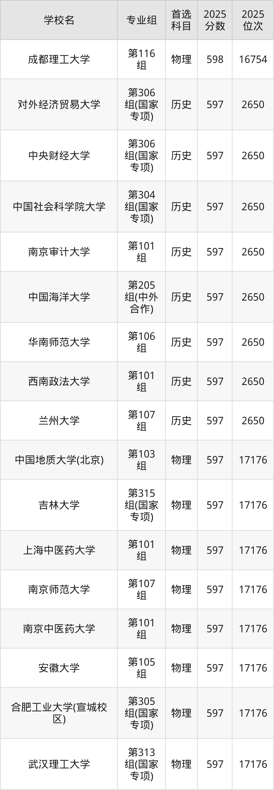 湖北高考历史类596分对应的位次排名是3769名,物理类596分对应的位次排名是16067名,因此建议2026年位次排在这附近的同学考虑这些大学。
