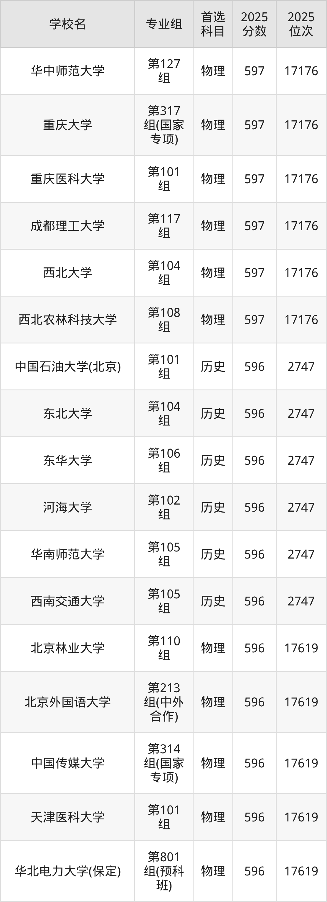 湖南高考历史类596分对应的位次排名是2747名,物理类596分对应的位次排名是17619名,因此建议2026年位次排在这附近的同学考虑这些大学。