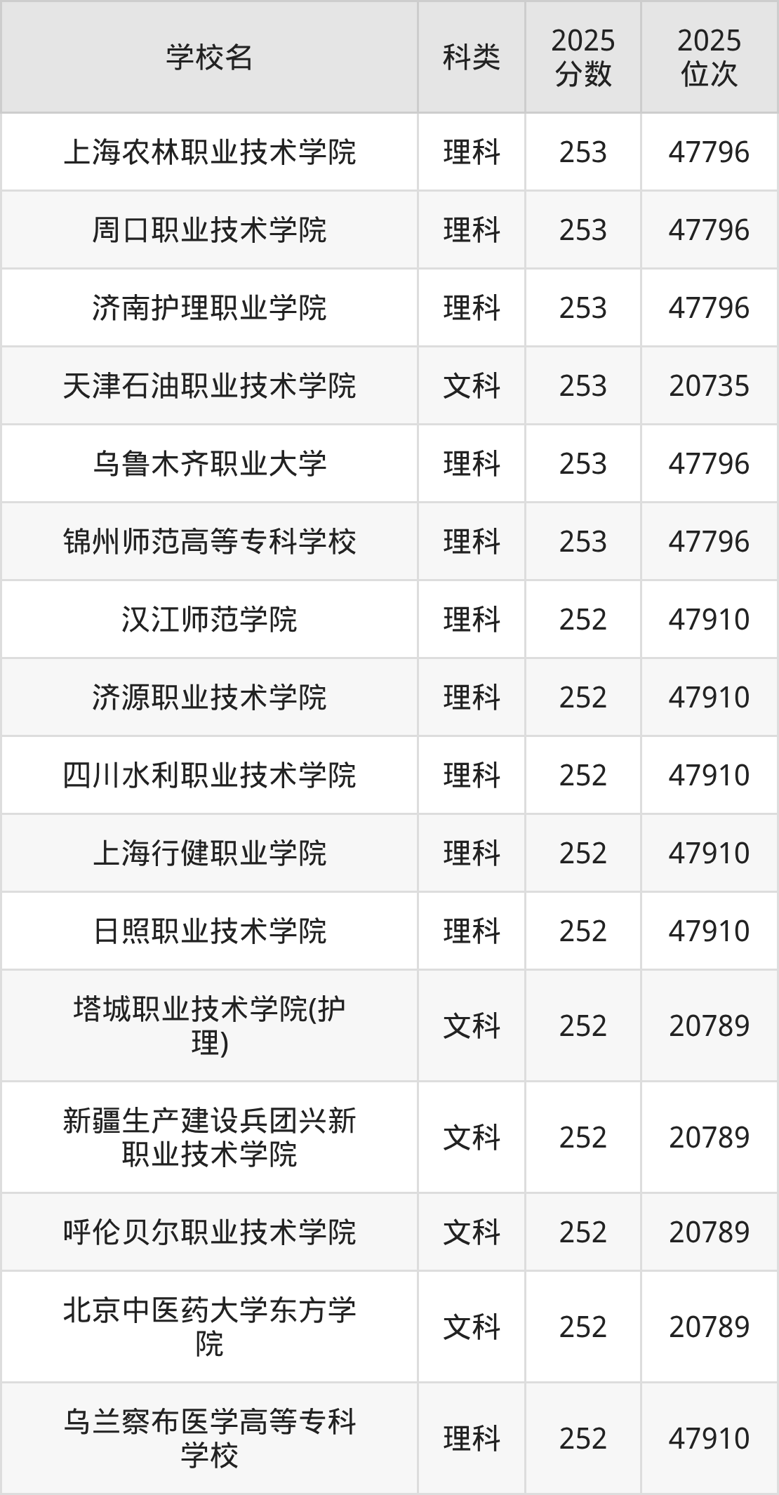 二、251分左右的专科大学排名