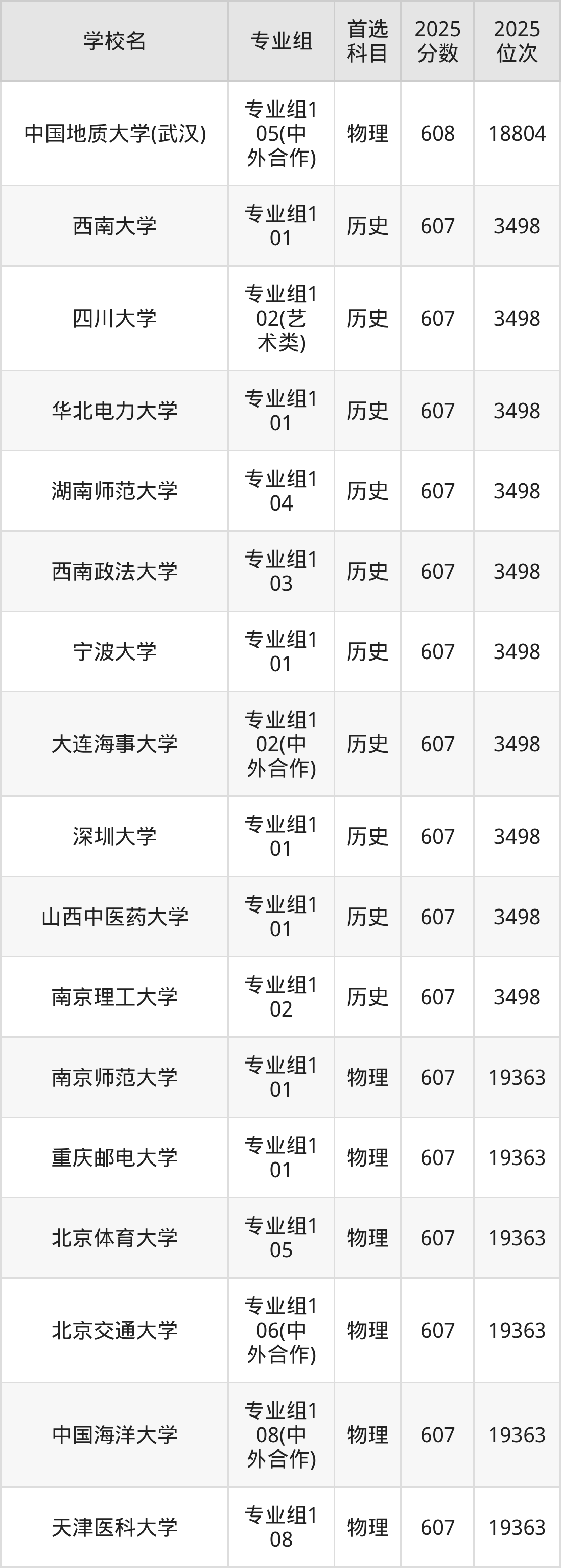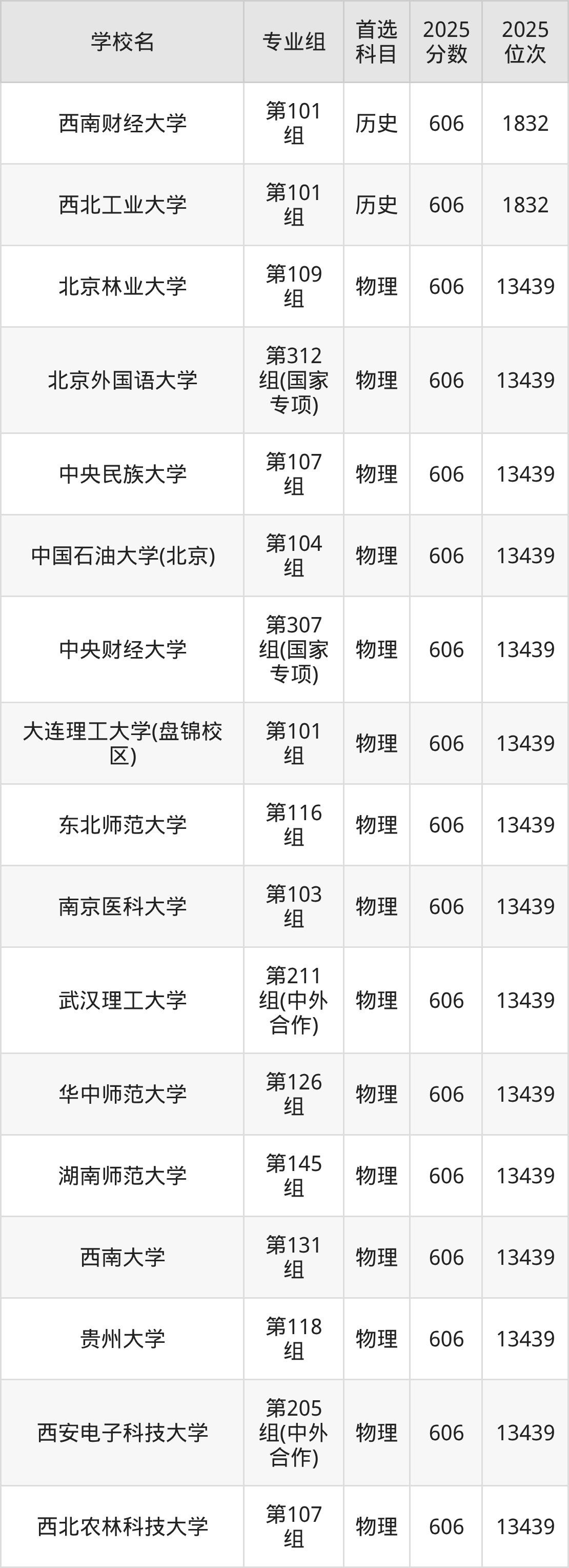 四川高考历史类606分对应的位次排名是3628名,物理类606分对应的位次排名是19899名,因此建议2026年位次排在这附近的同学考虑这些大学。