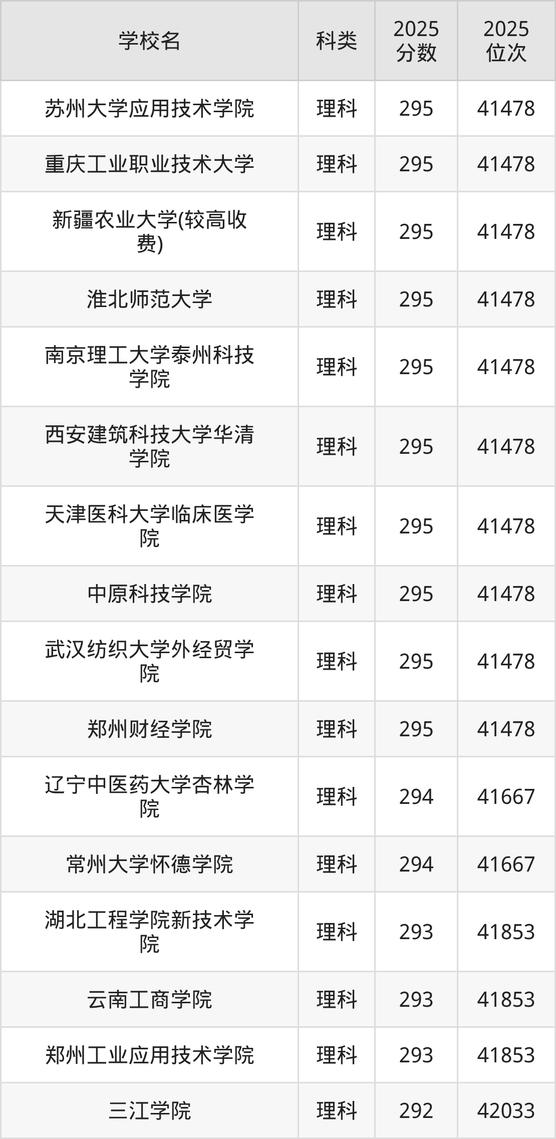 新疆理科293分对应的位次排名是41853名,因此建议2026年位次排在这附近的考生考虑这些大学。