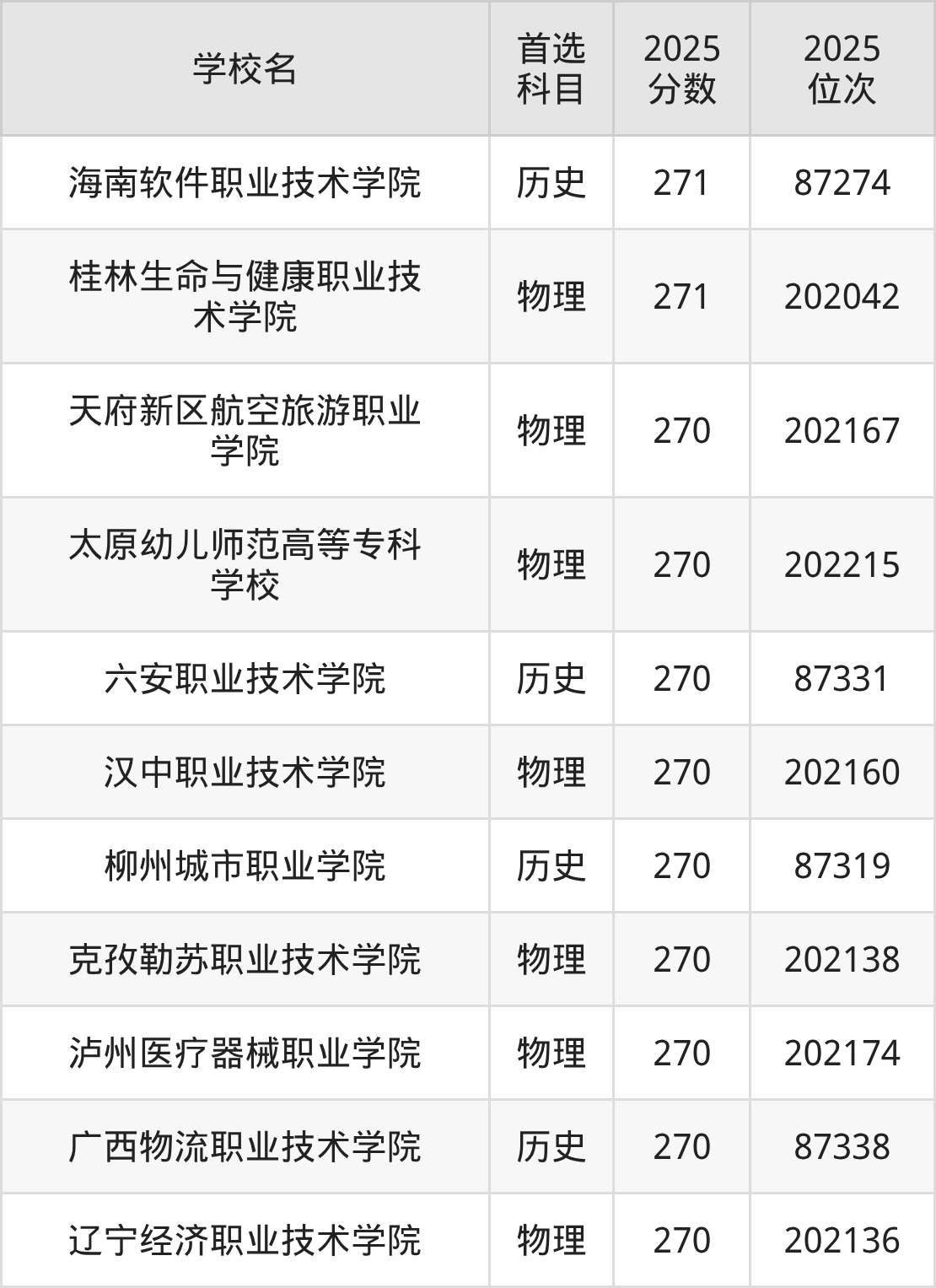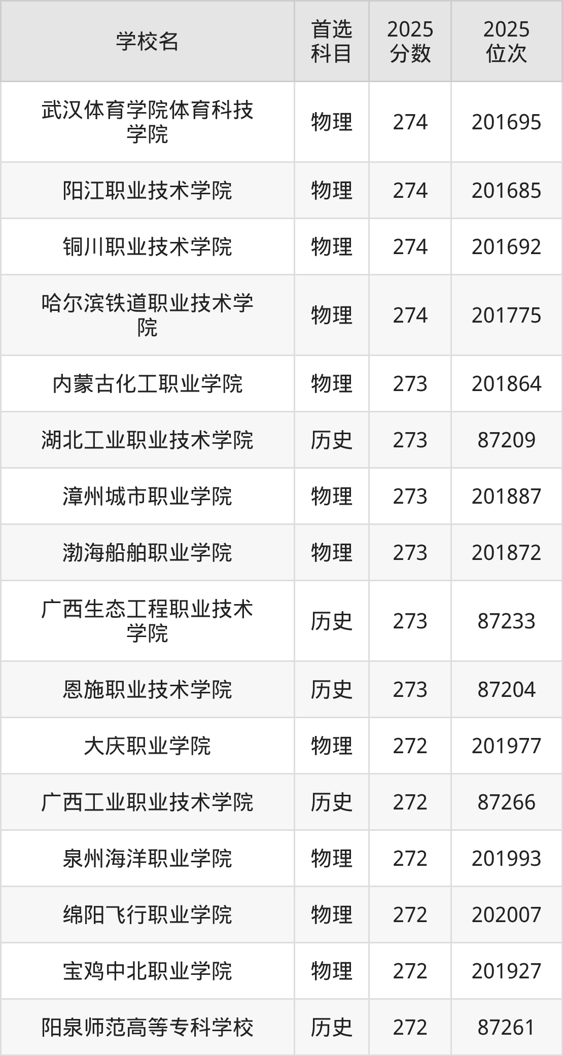 从2025年划定的批次线来看,272分在以下地区可以上专科大学,2025年专科线不超过272分的地区有23个,具体如下:
