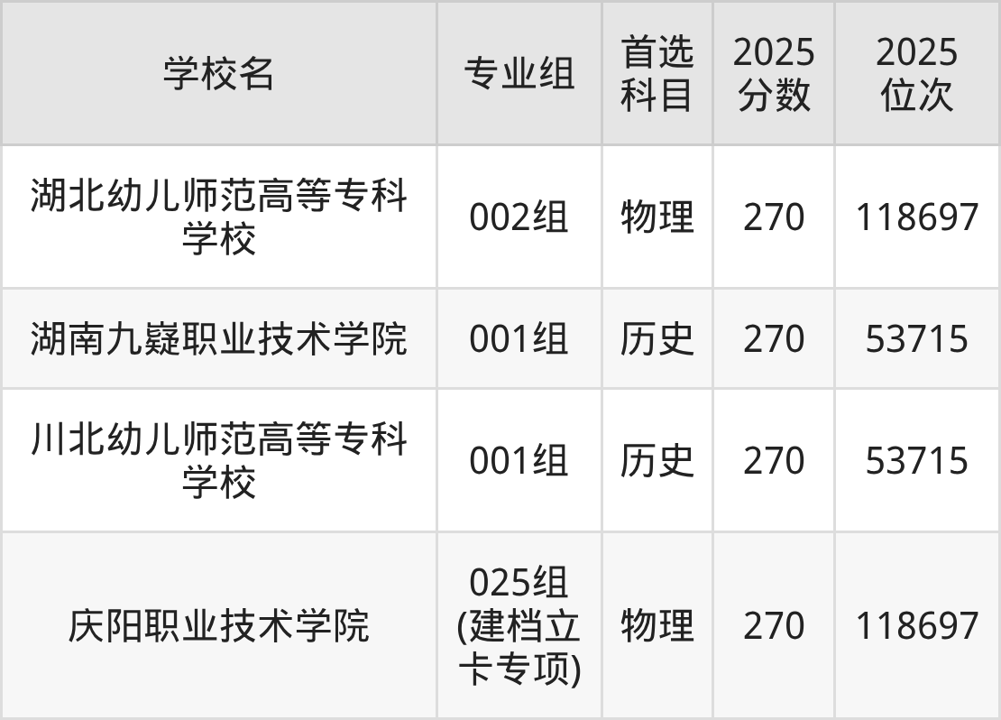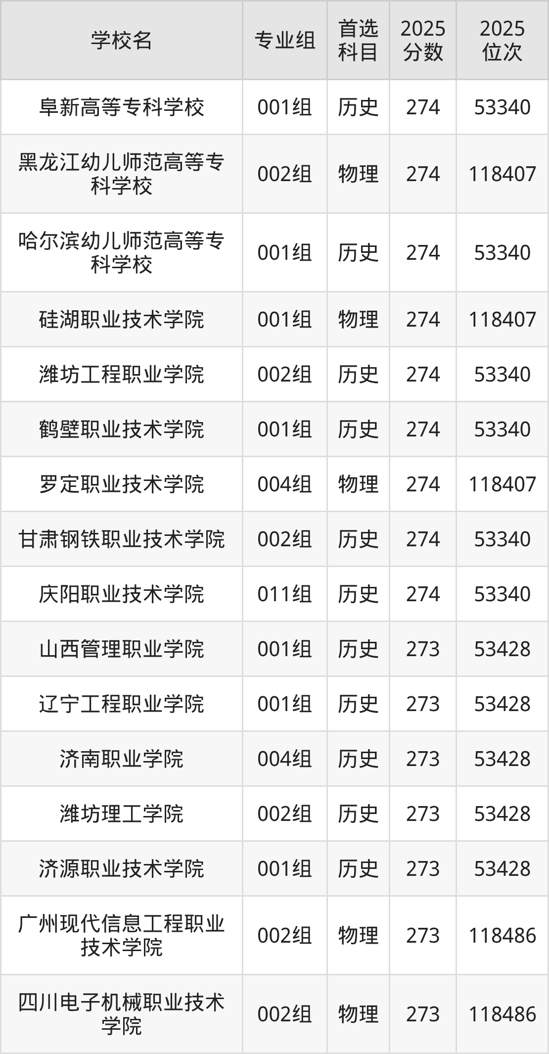 下面老师将以上文整理的其中两个省份为例,为大家具体展示272分左右能上的专科大学名单。
