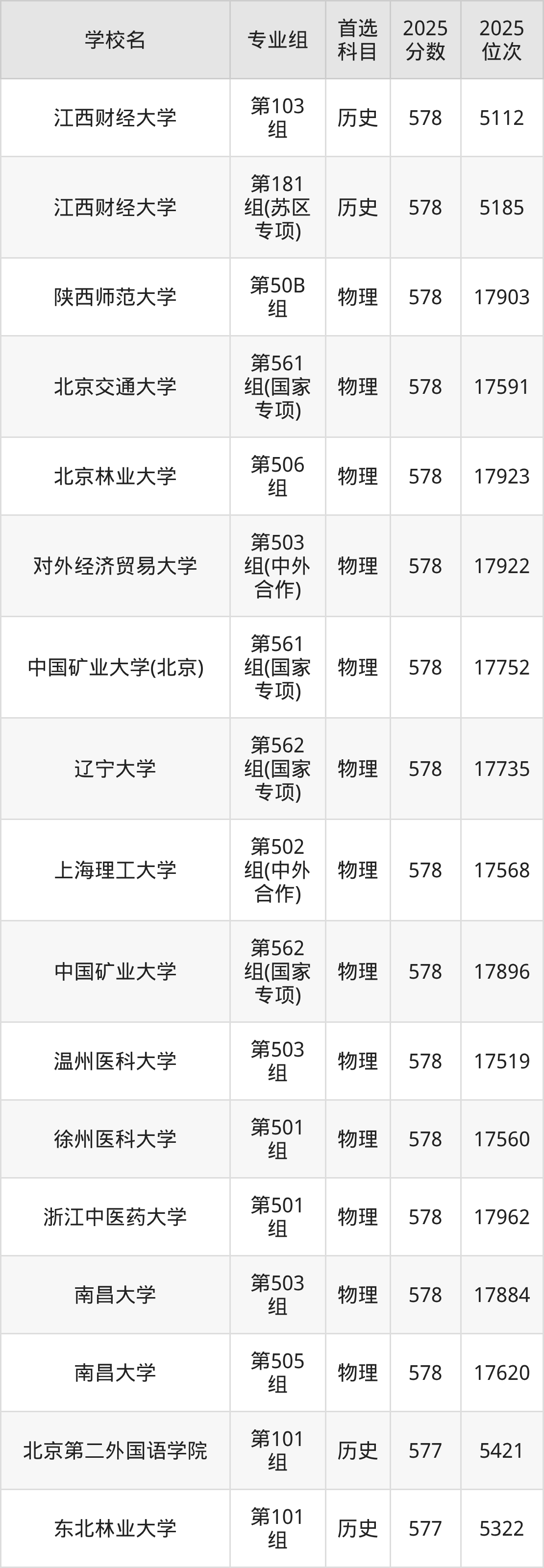 江西高考历史类577分对应的位次排名是5322名-5463名,物理类577分对应的位次排名是17997名-18487名,因此建议2026年位次排在这附近的同学考虑这些大学。