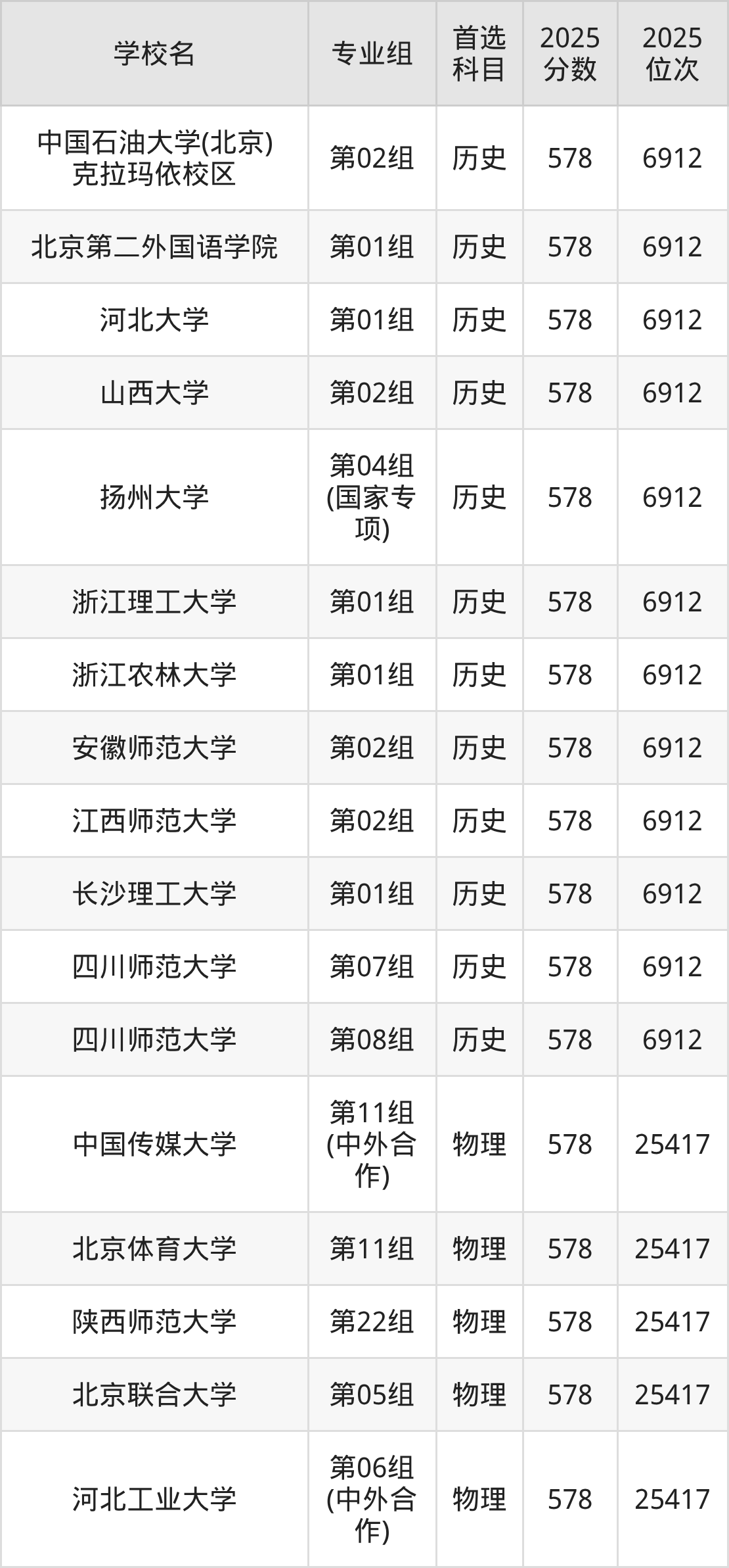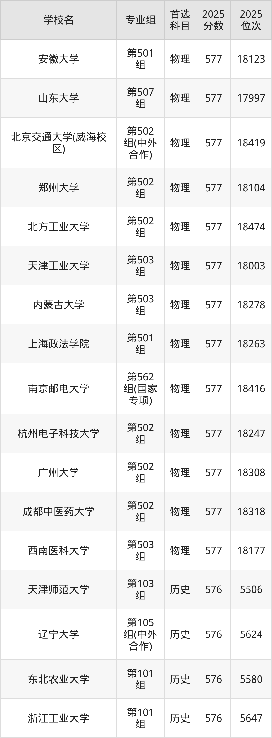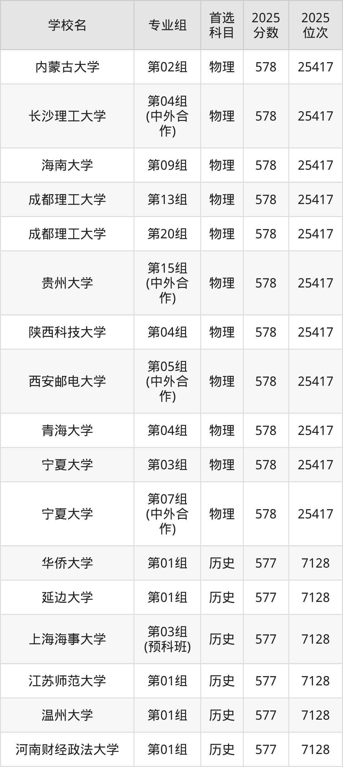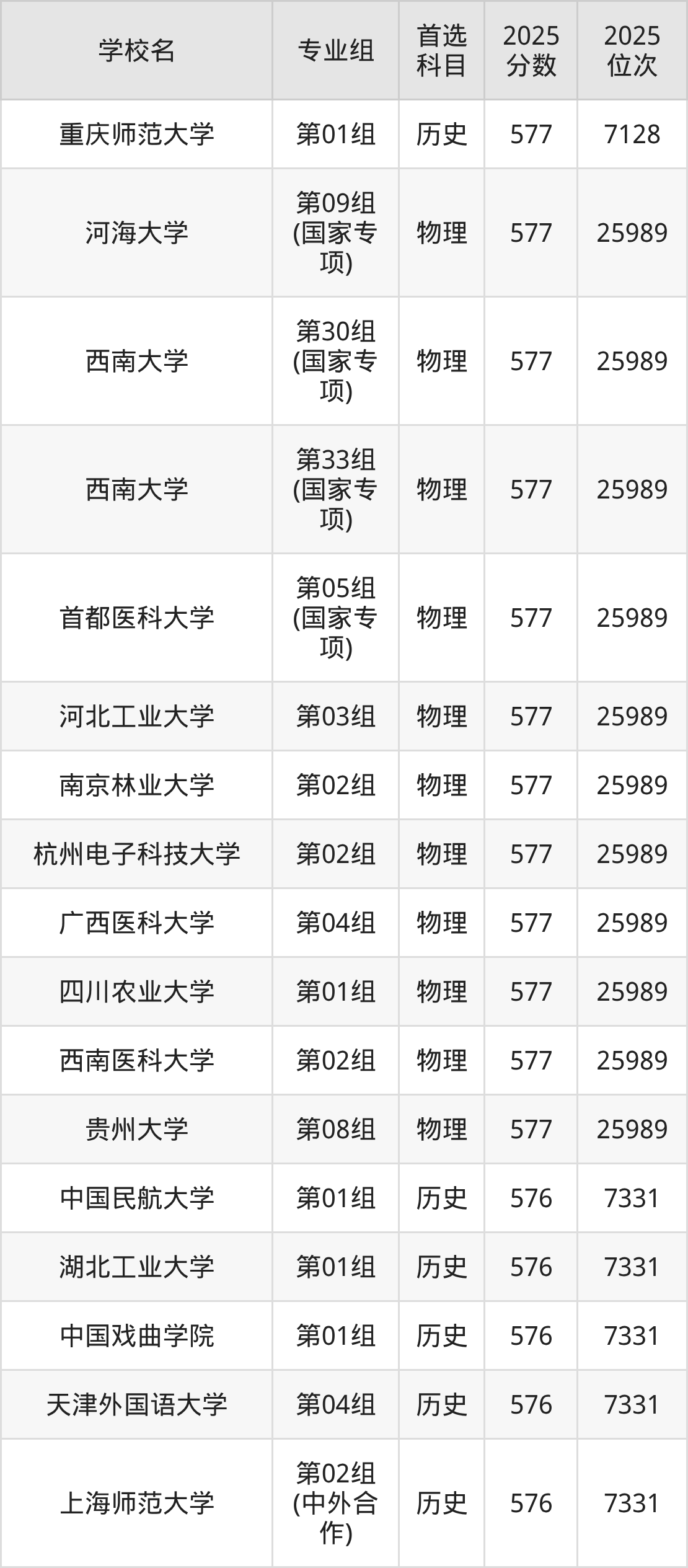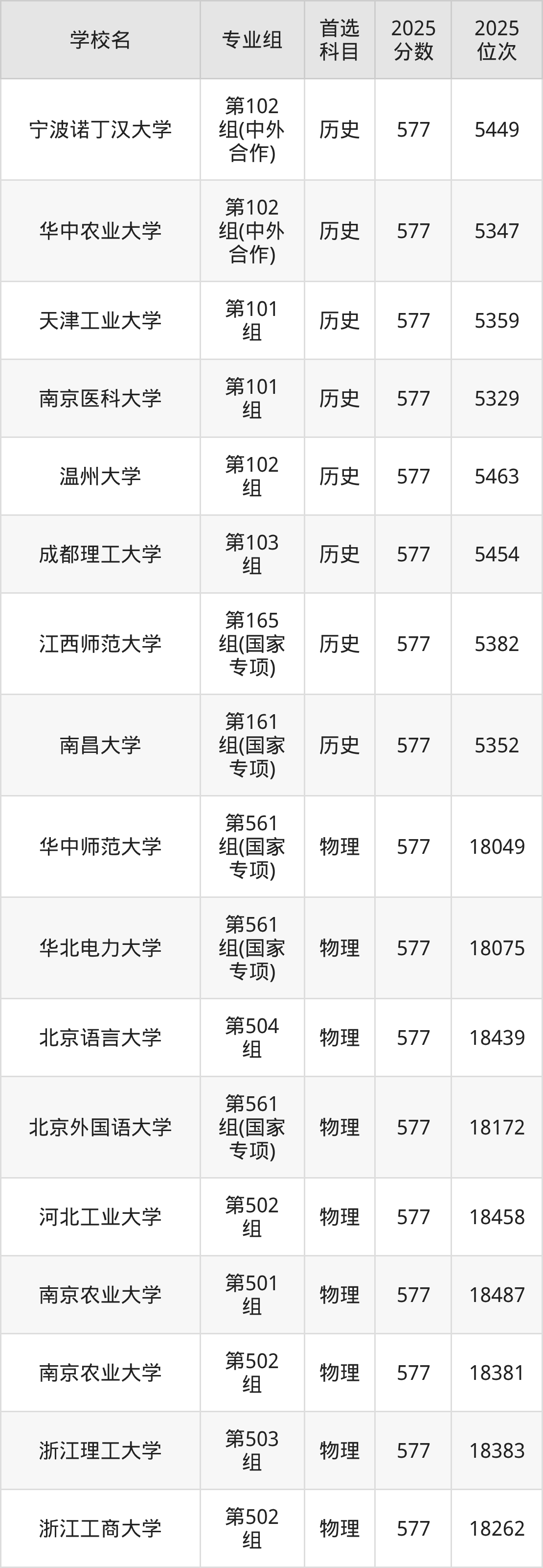 湖北高考历史类577分对应的位次排名是7128名,物理类577分对应的位次排名是25989名,因此建议2026年位次排在这附近的同学考虑这些大学。
