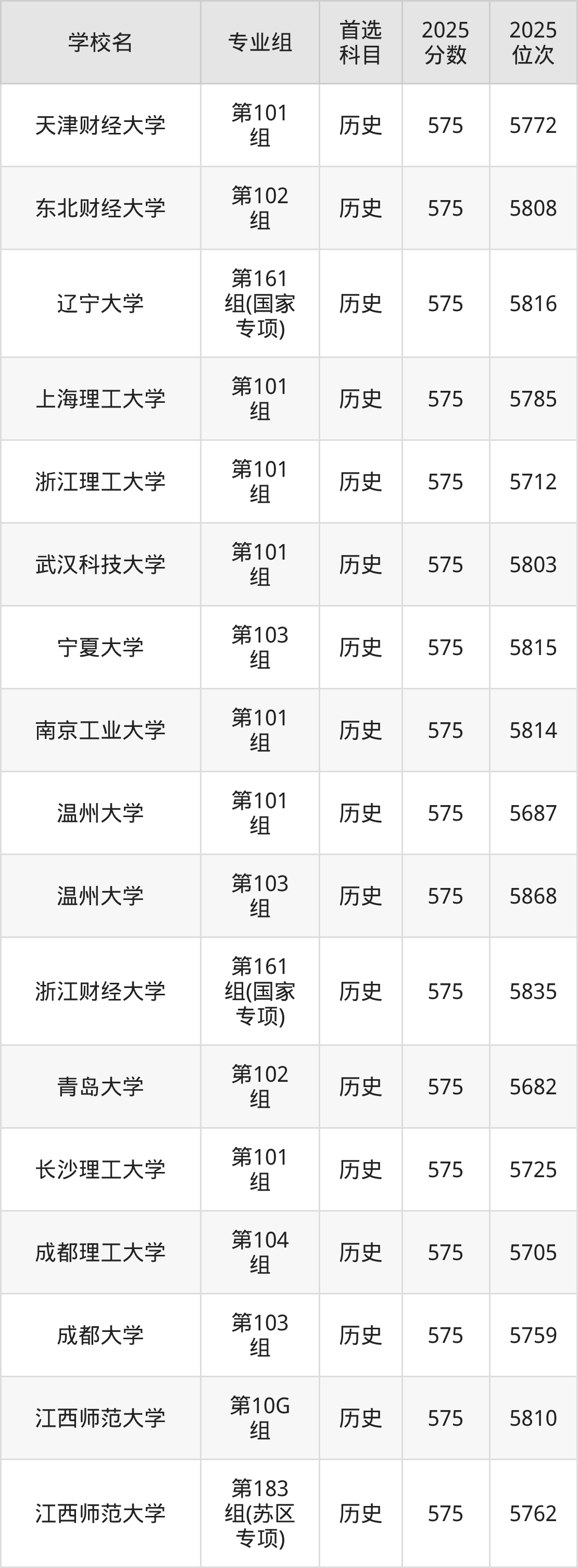 历史类577分可以冲的大学:西南财经大学579分、武汉科技大学579分、北京联合大学579分、山西师范大学579分等;较稳妥的大学:中国民航大学576分、湖北工业大学576分、中国戏曲学院576分、天津外国语大学576分等。