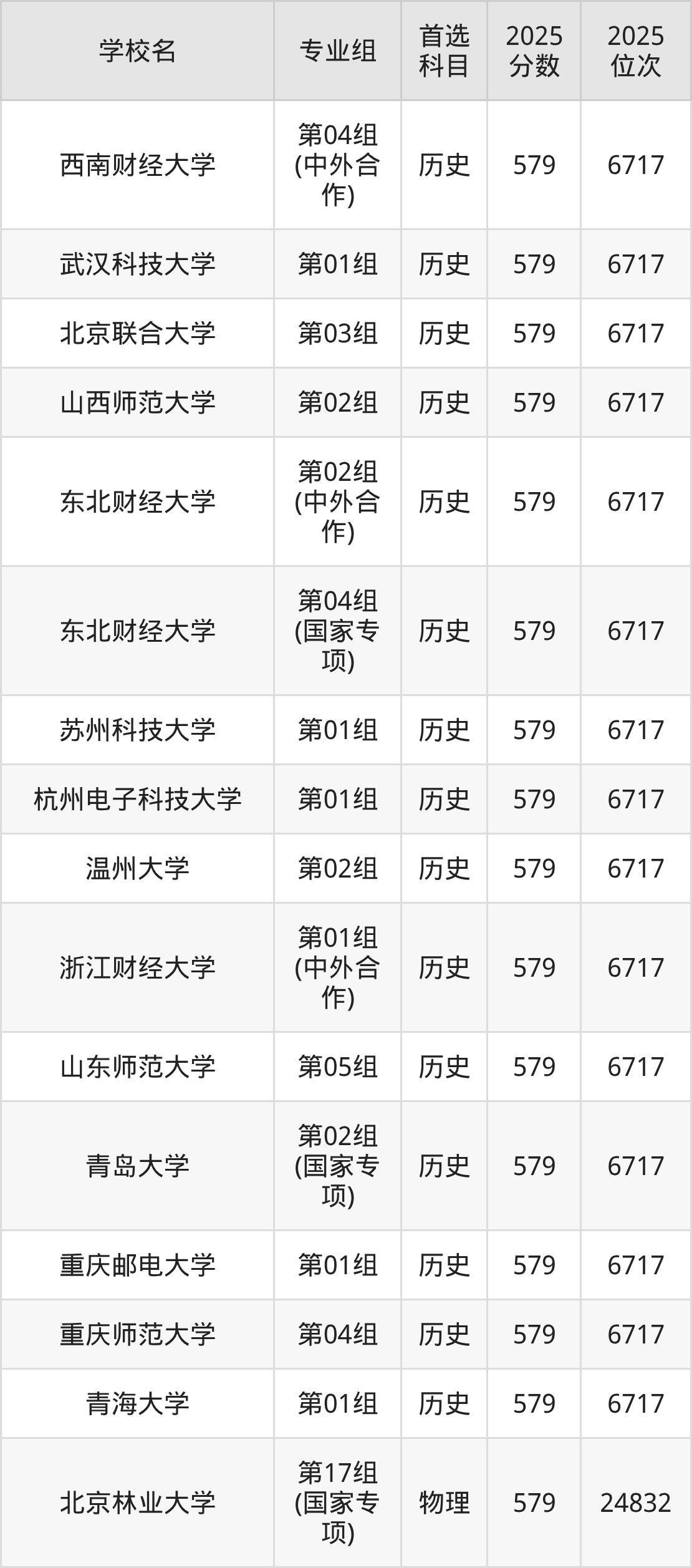 下面老师将以上文整理的其中两个省份为例,为大家具体展示577分左右能上的本科大学名单。