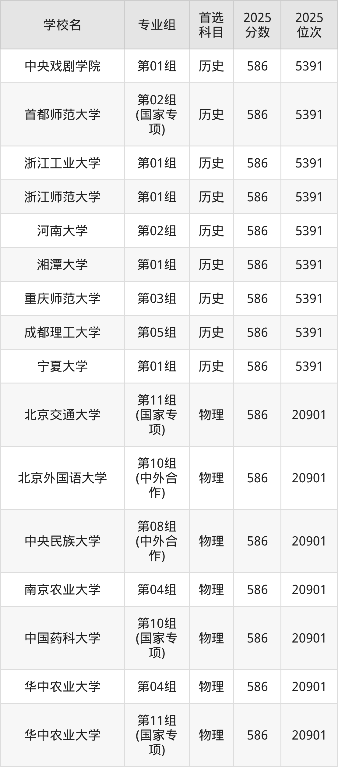 物理类584分可以冲的大学:北京交通大学586分、北京外国语大学586分、中央民族大学586分、南京农业大学586分等;较稳妥的大学:北京科技大学583分、吉林大学583分、东华大学583分、中国药科大学583分等。