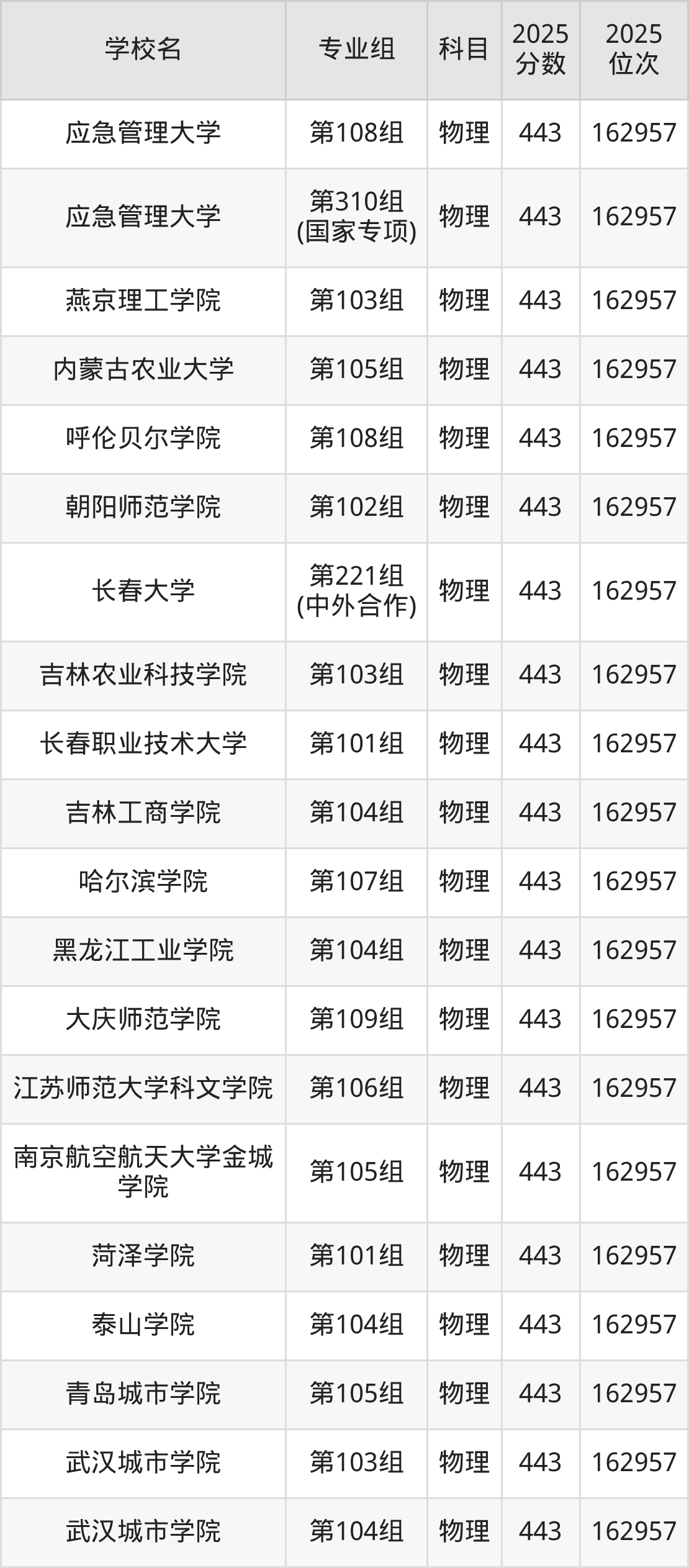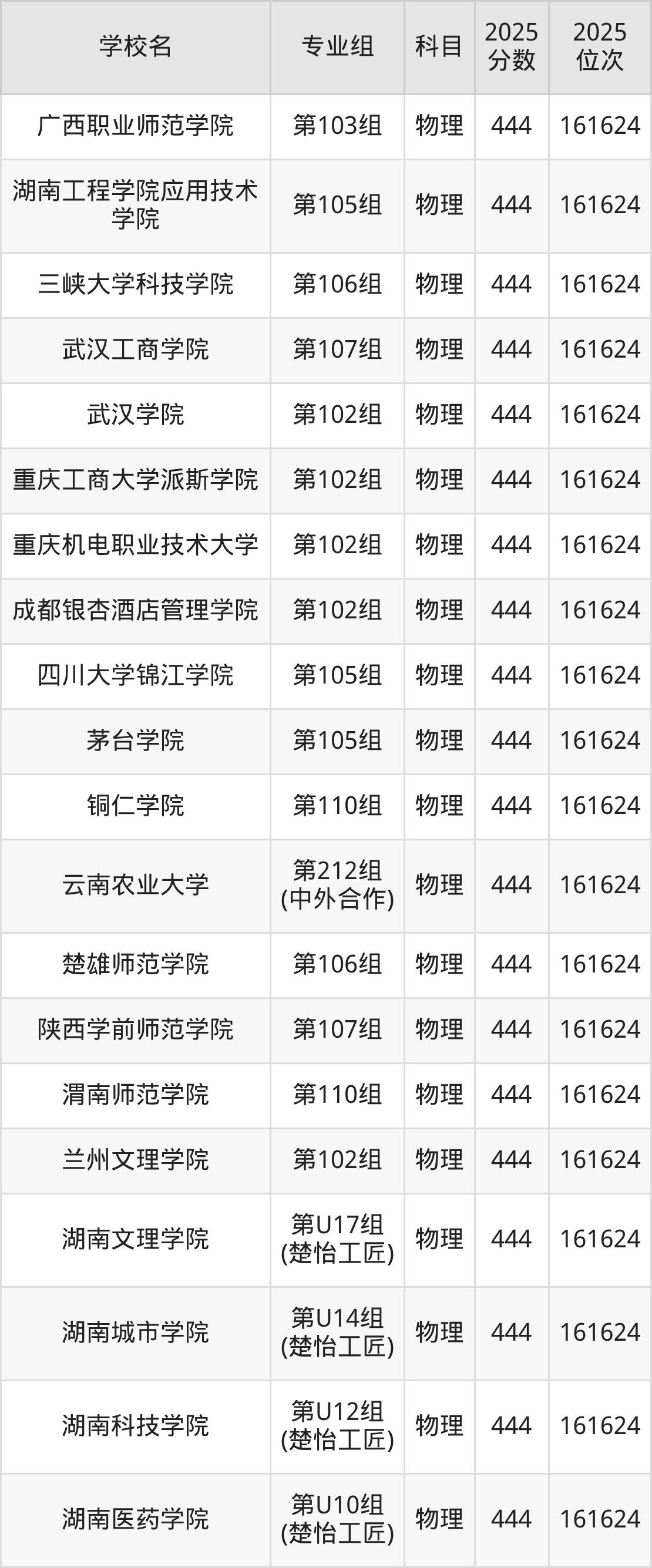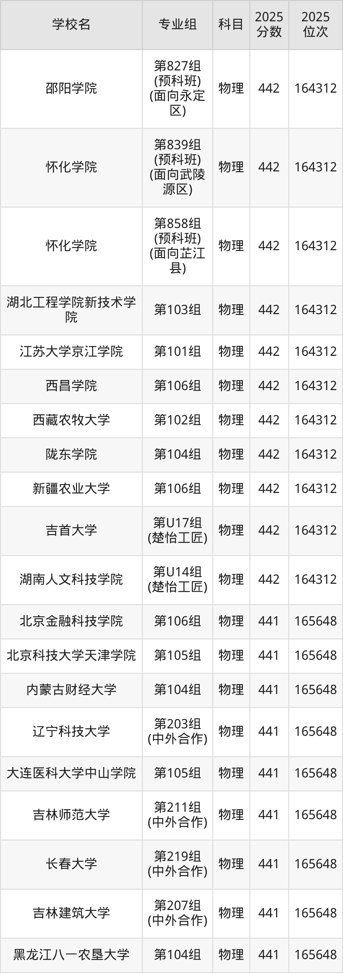 湖南物理类442分对应的位次排名是164312名,因此建议2026年位次排在这附近的考生考虑这些大学。