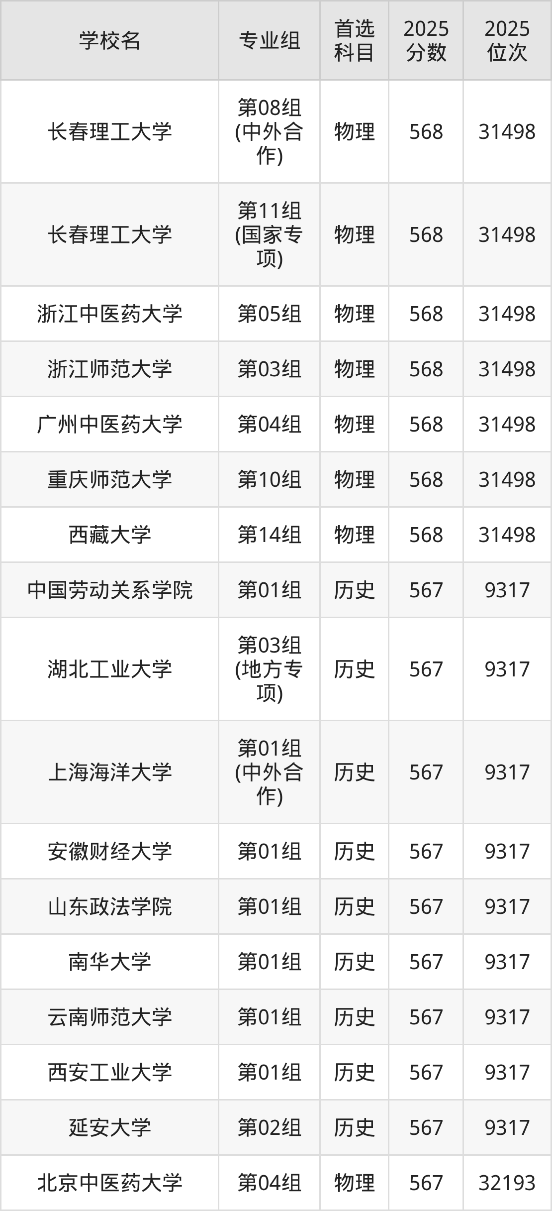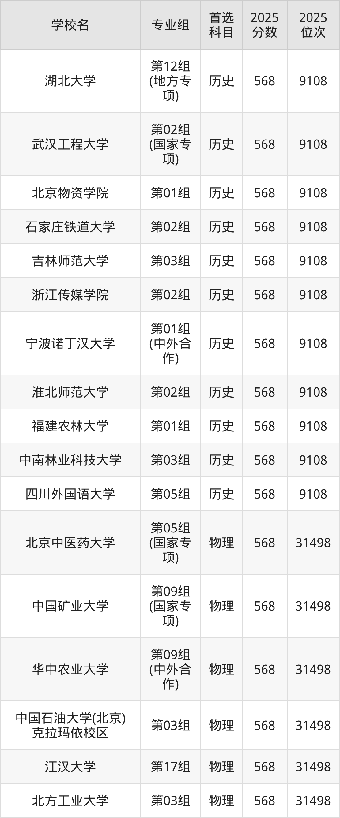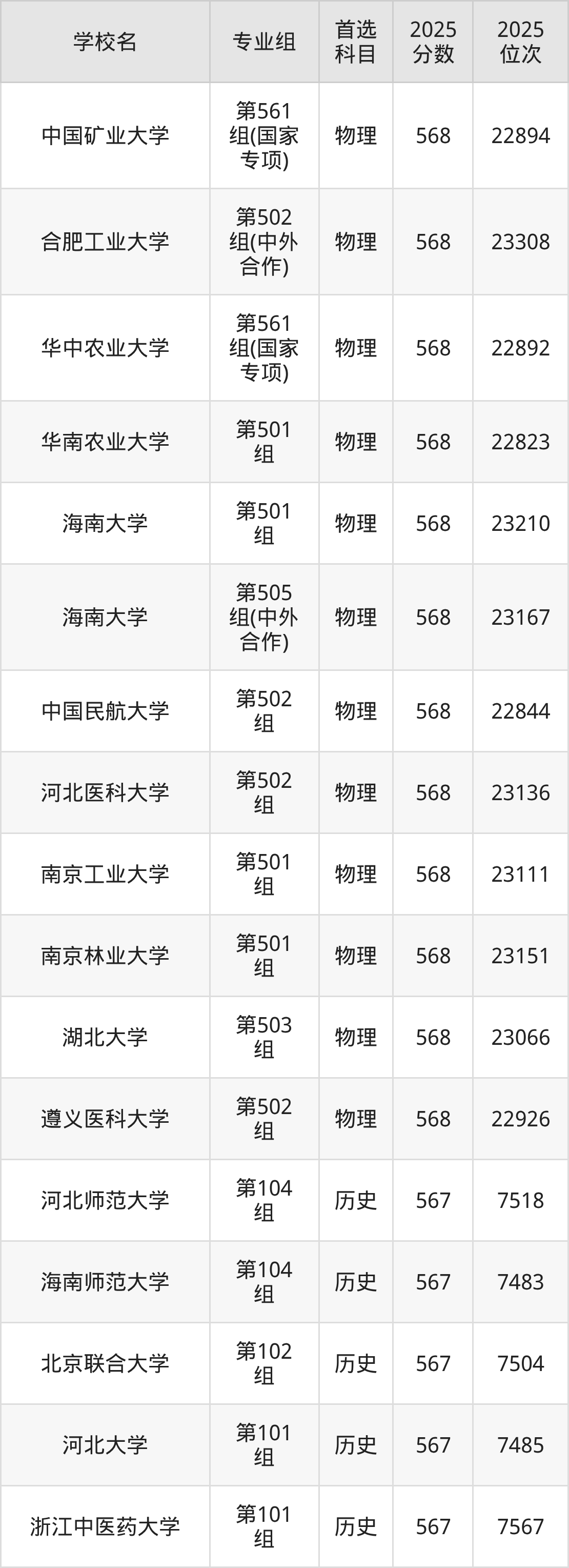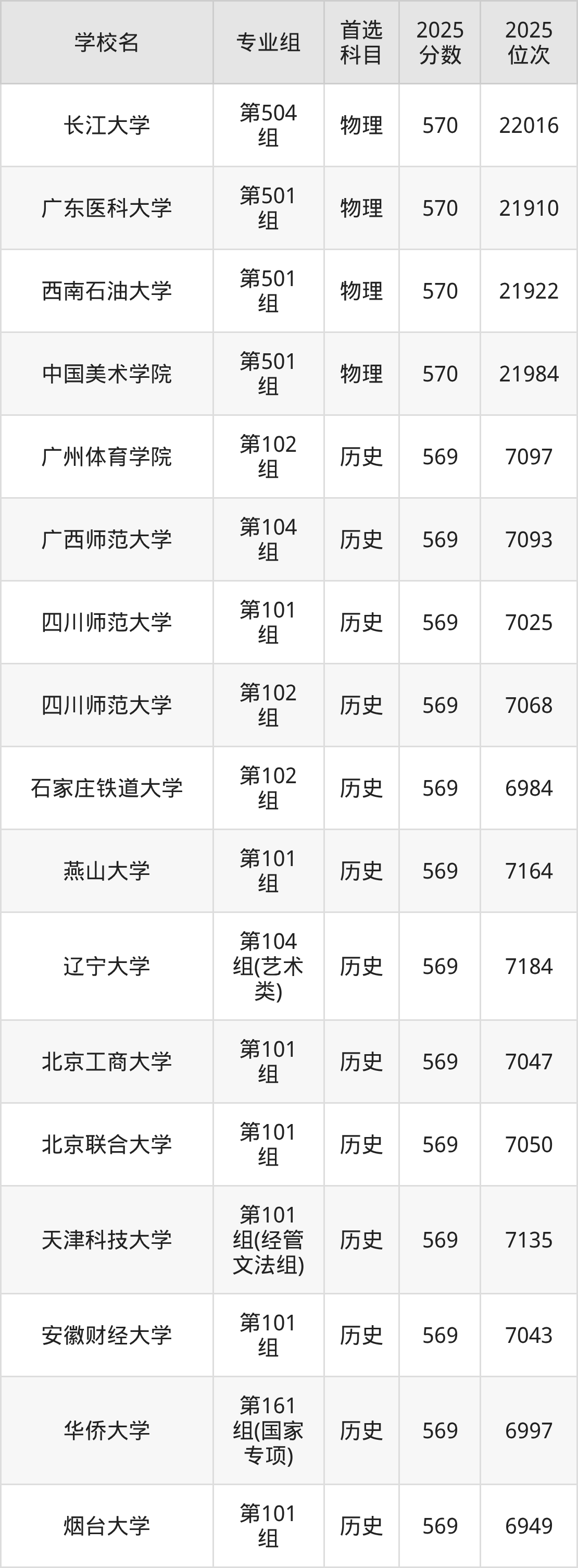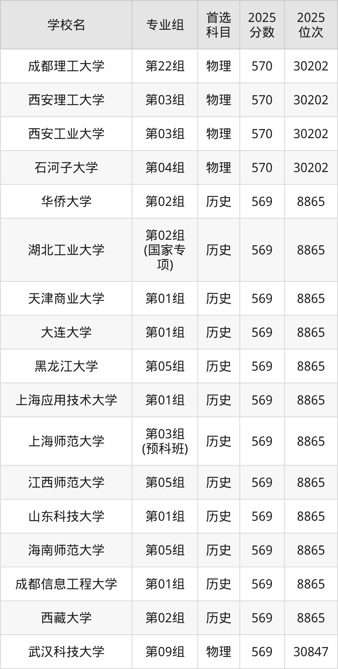 湖北高考历史类569分对应的位次排名是8865名,物理类569分对应的位次排名是30847名,因此建议2026年位次排在这附近的同学考虑这些大学。