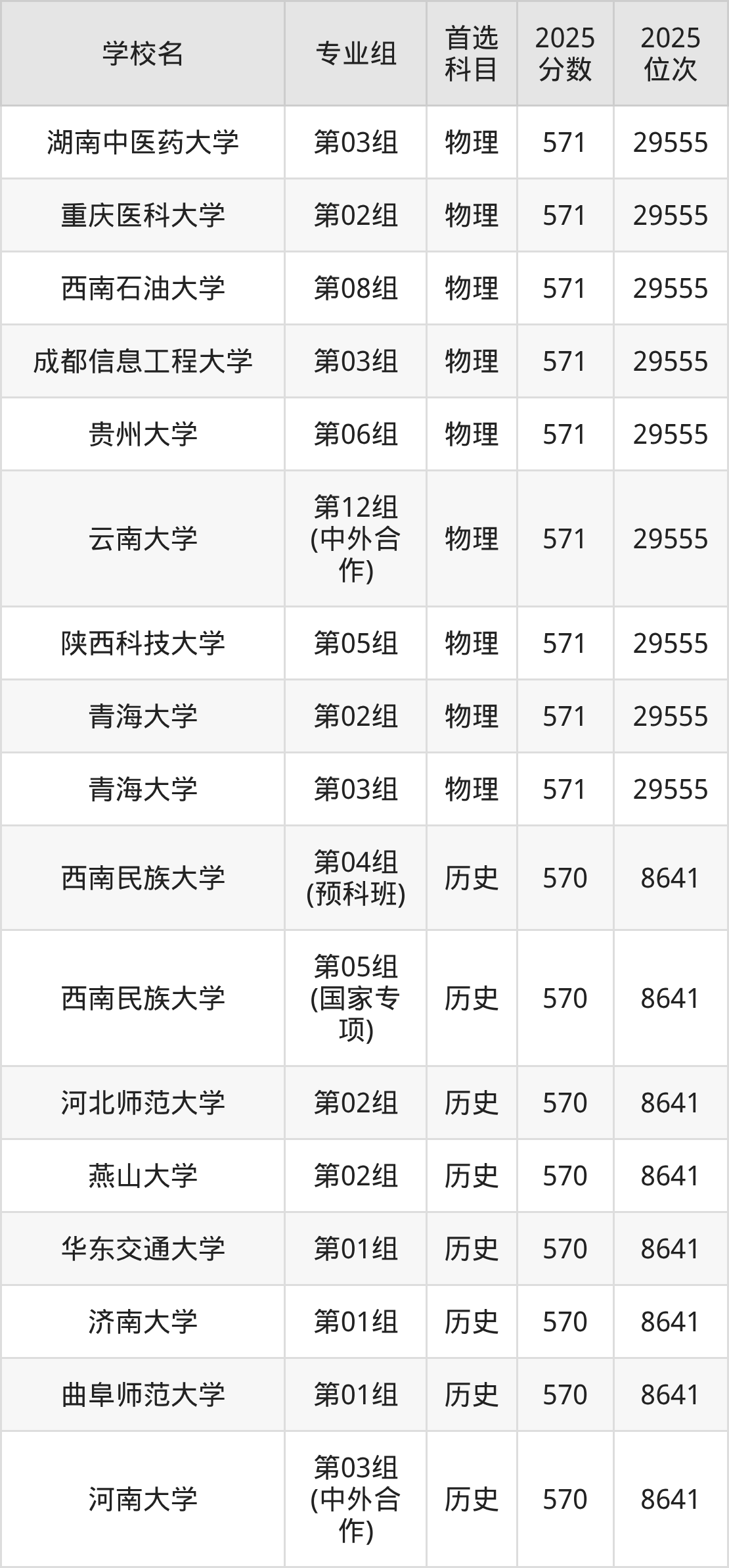 从2025年划定的批次线来看,569分在以下地区可以上本科大学,2025年本科线不超过569分的地区有30个,具体如下: