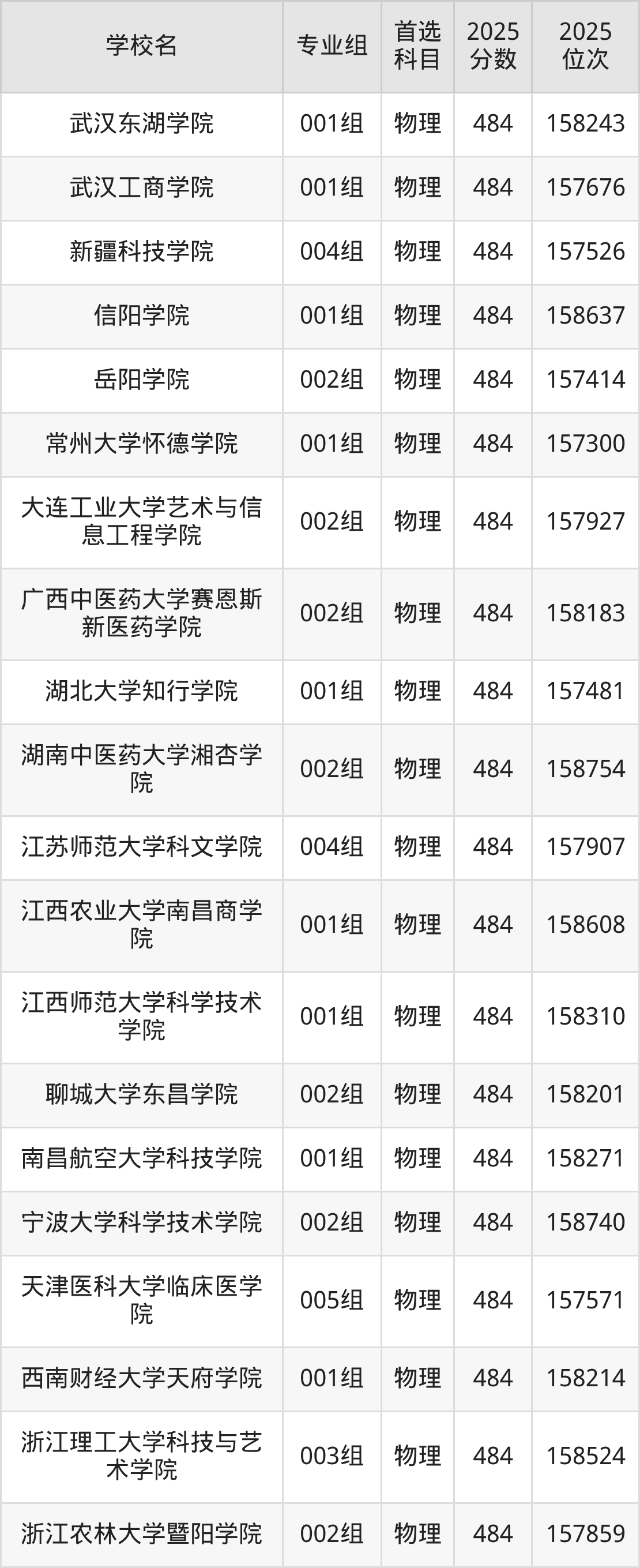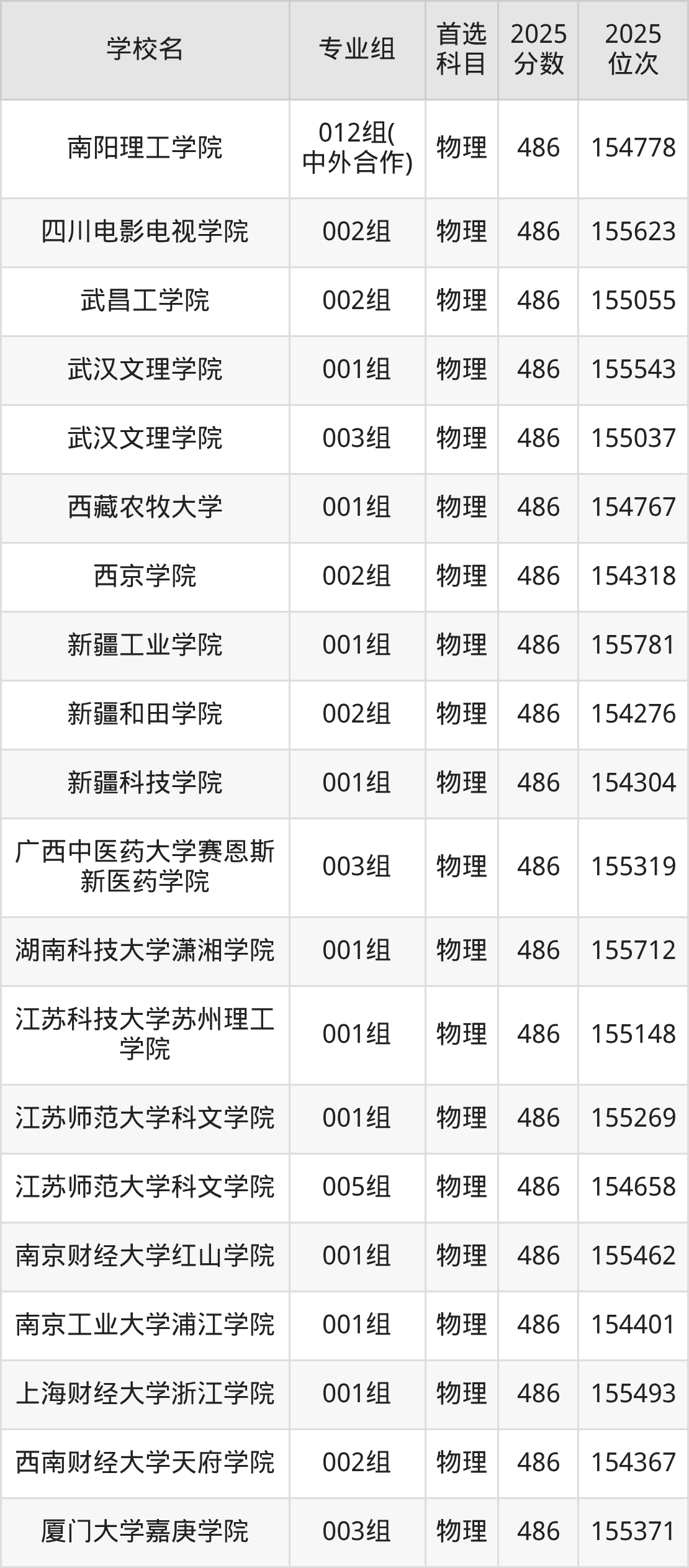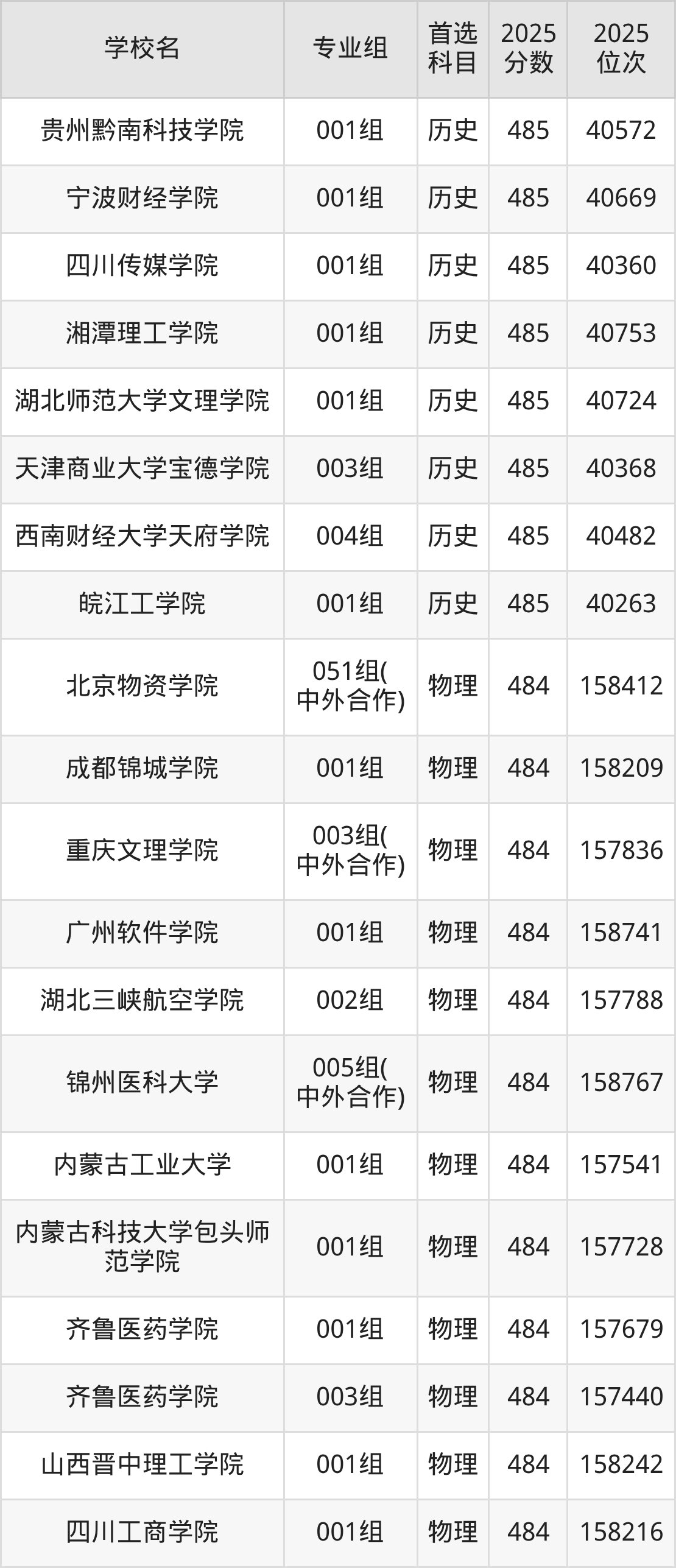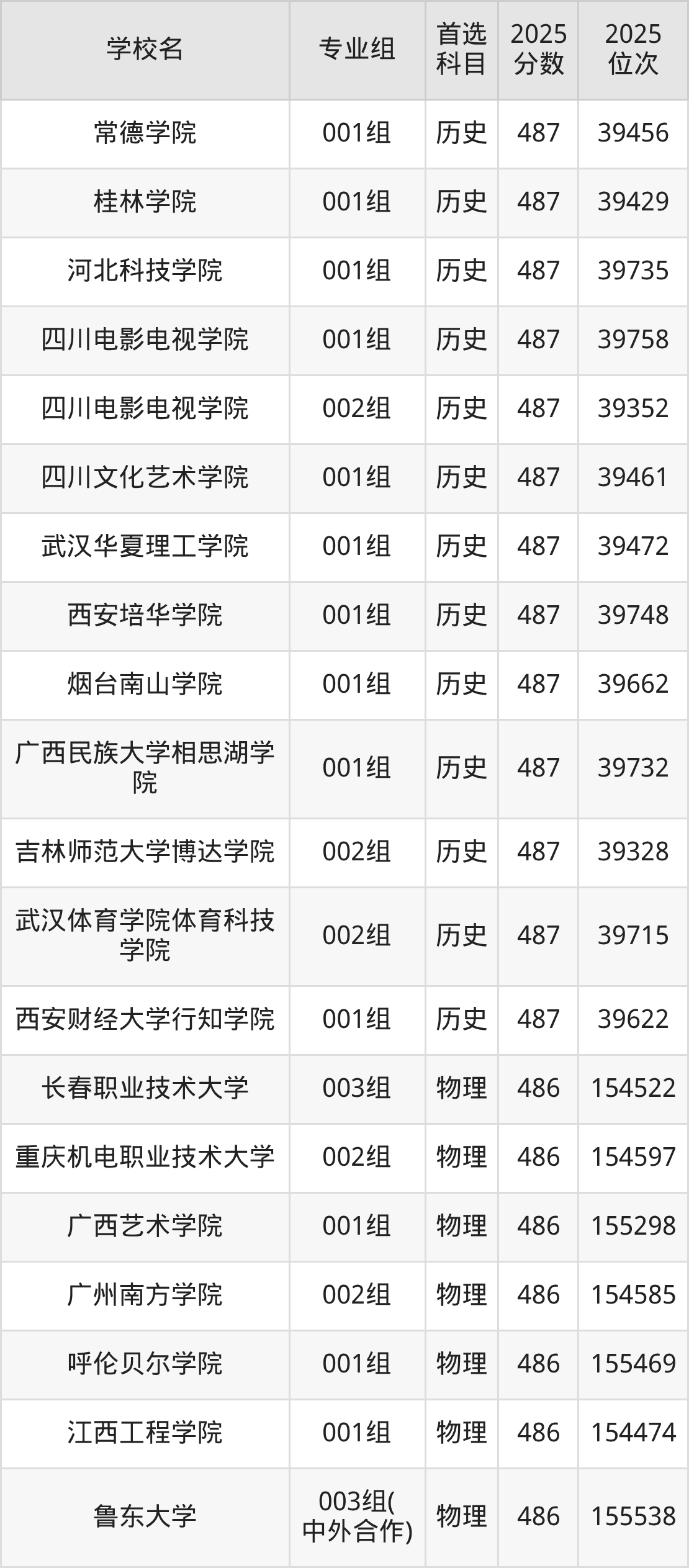 二、486分左右的本科大学排名